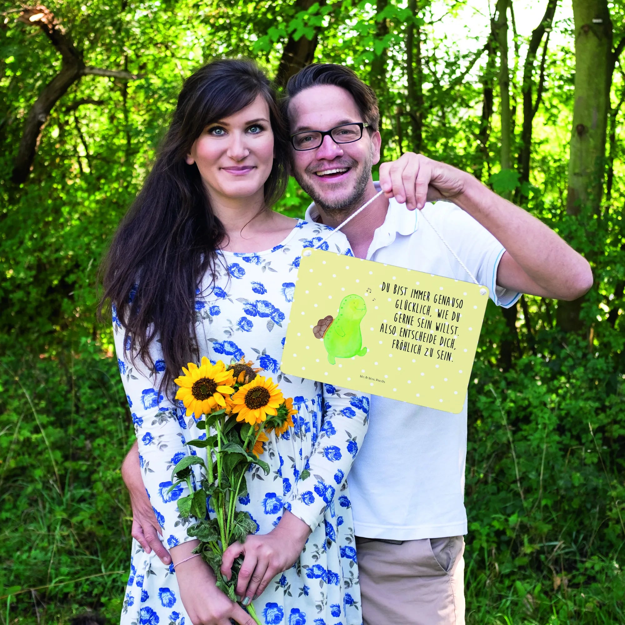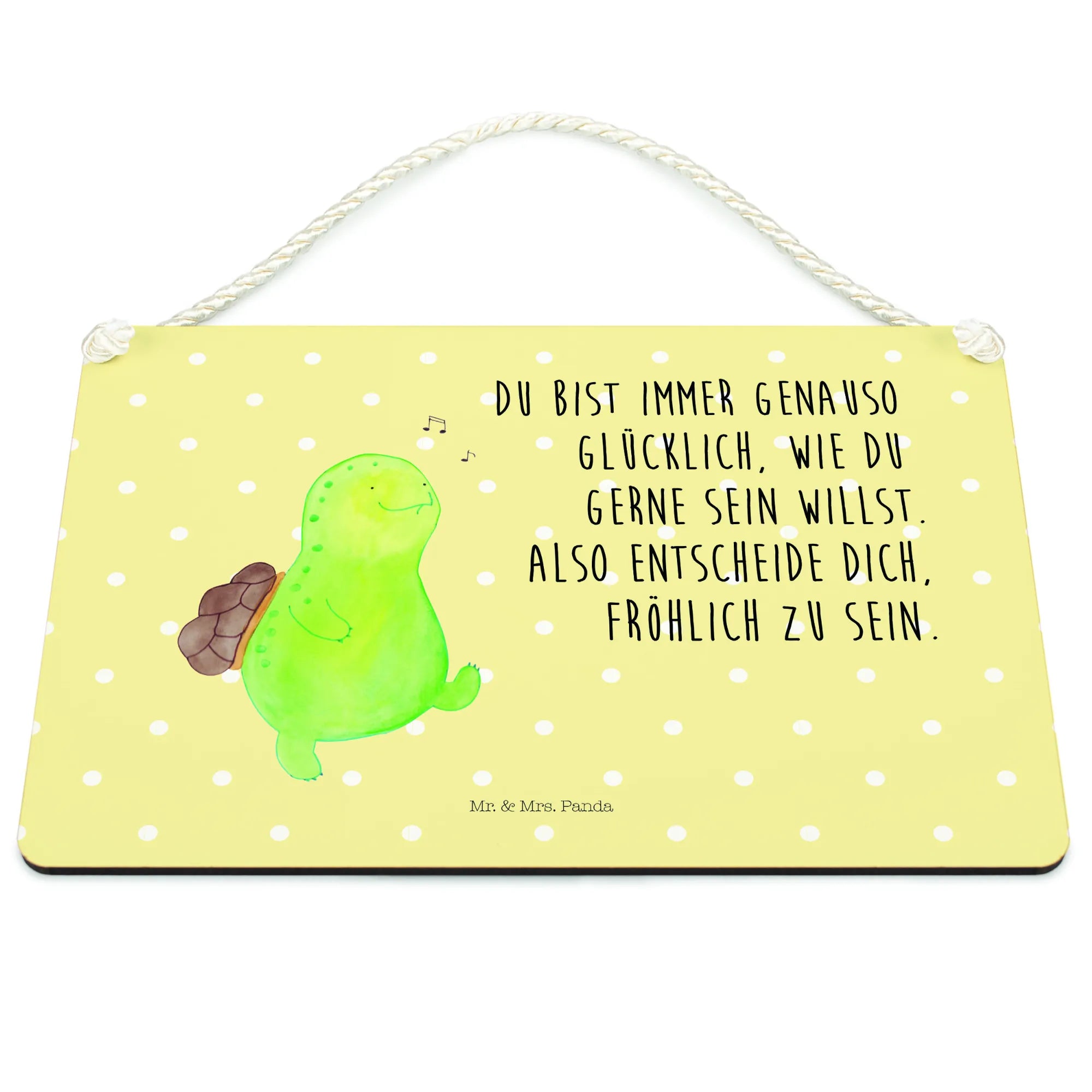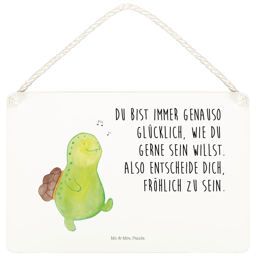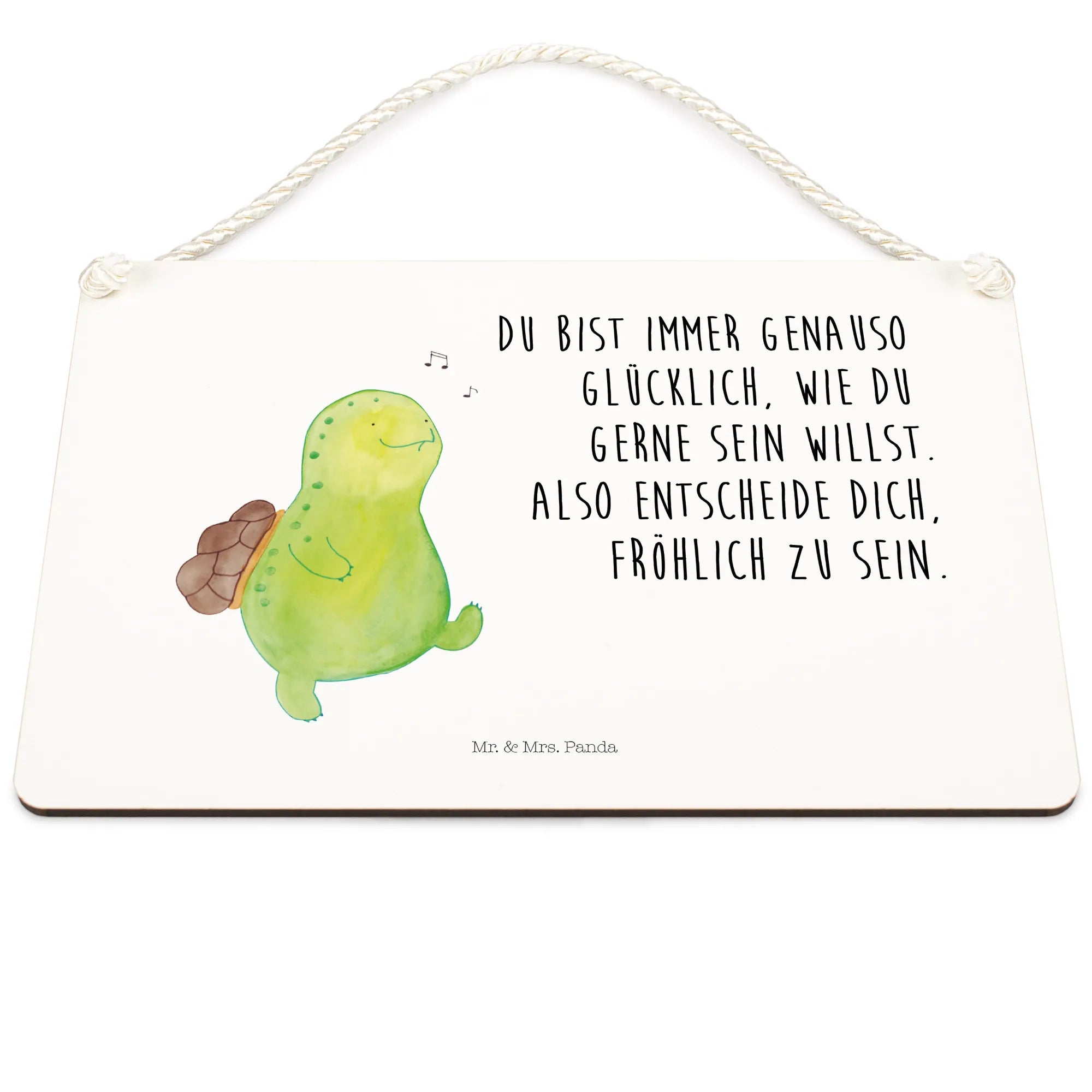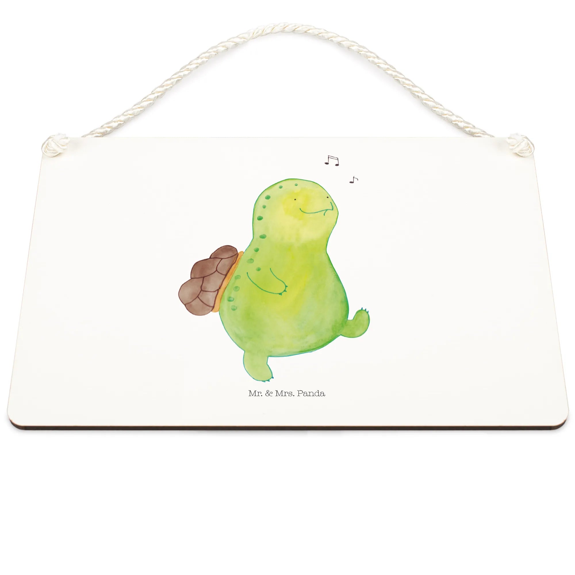 Das Deko Schild mit der fröhlichen Schildkröte von Mr. & Mrs. Panda ist der perfekte Begleiter für alle, die Lebensfreude und Optimismus in ihr Zuhause bringen möchten. Ob an der Tür oder an der Wand, dieses edle Schild aus beschichteter Holzfaser verschönert jede Ecke und versprüht gute Laune.