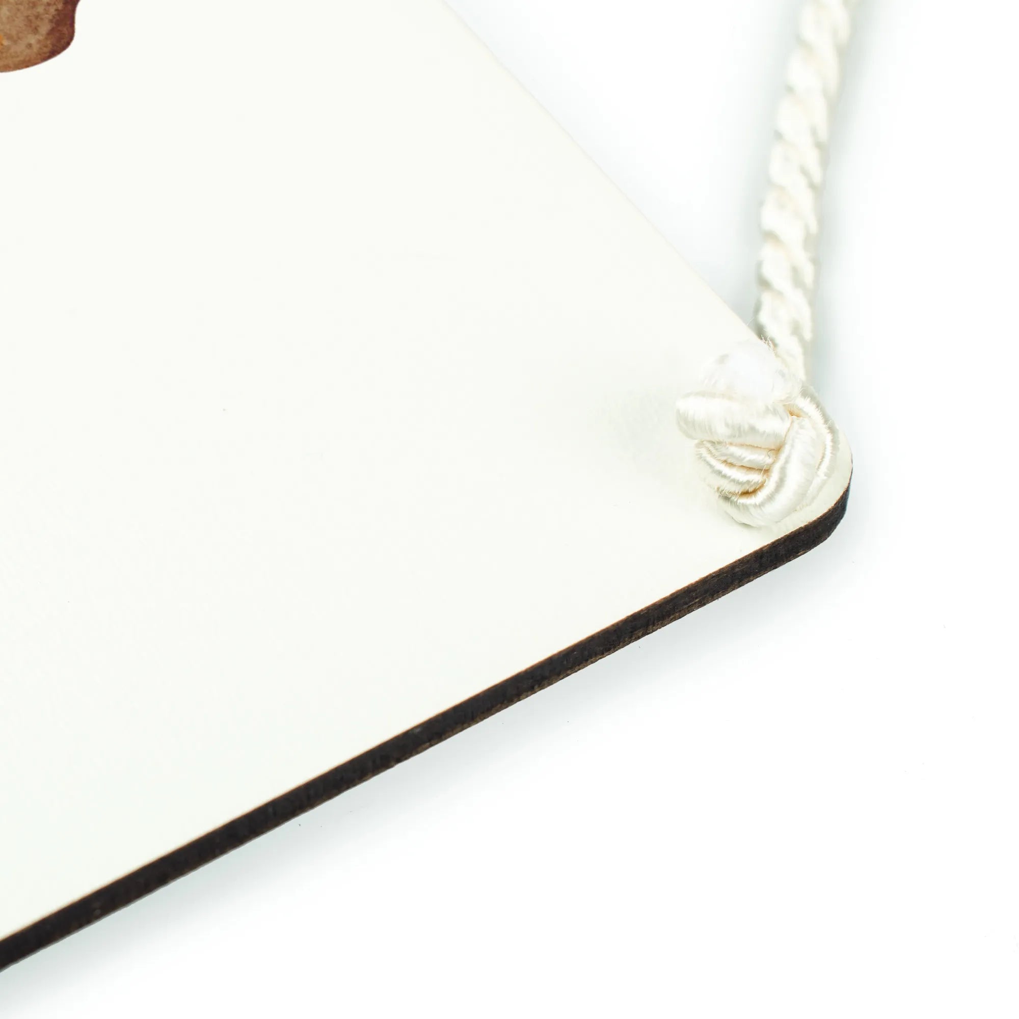 Für die Aufhängung haben wir das Schild mit einer wunderschönen, gedrehten Kordel ausgestattet – so kannst Du es schnell und unkompliziert überall anbringen.