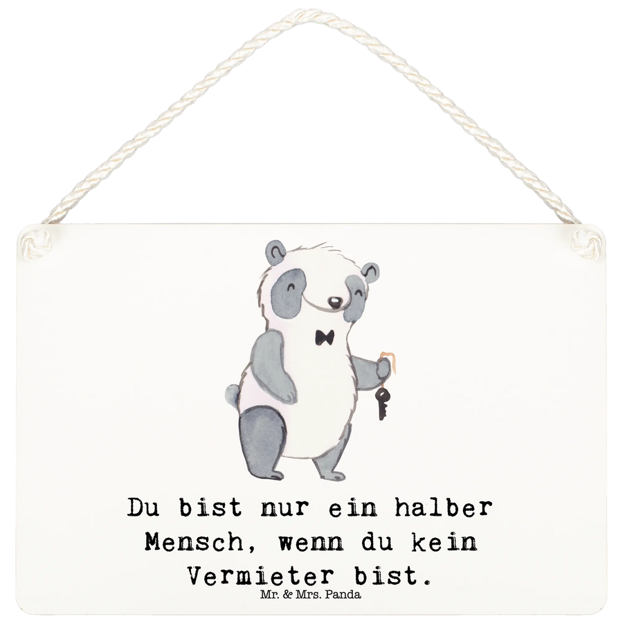 Das Deko Schild "Vermieter mit Herz" von Mr. & Mrs. Panda ist das perfekte Geschenk für alle Vermieter und Immobilienliebhaber. Mit dem süßen Motiv eines Pandas, der stolz einen Schlüssel in der Hand hält, und dem humorvollen Spruch "Du bist nur ein halber Mensch, wenn du kein Vermieter bist", zaubert dieses Schild jedem ein Lächeln ins Gesicht. Egal, ob zum Berufsabschied, zum Jubiläum oder einfach als nette Geste für deine Arbeitskollegen – dieses Schild ist immer eine liebevolle Überraschung.