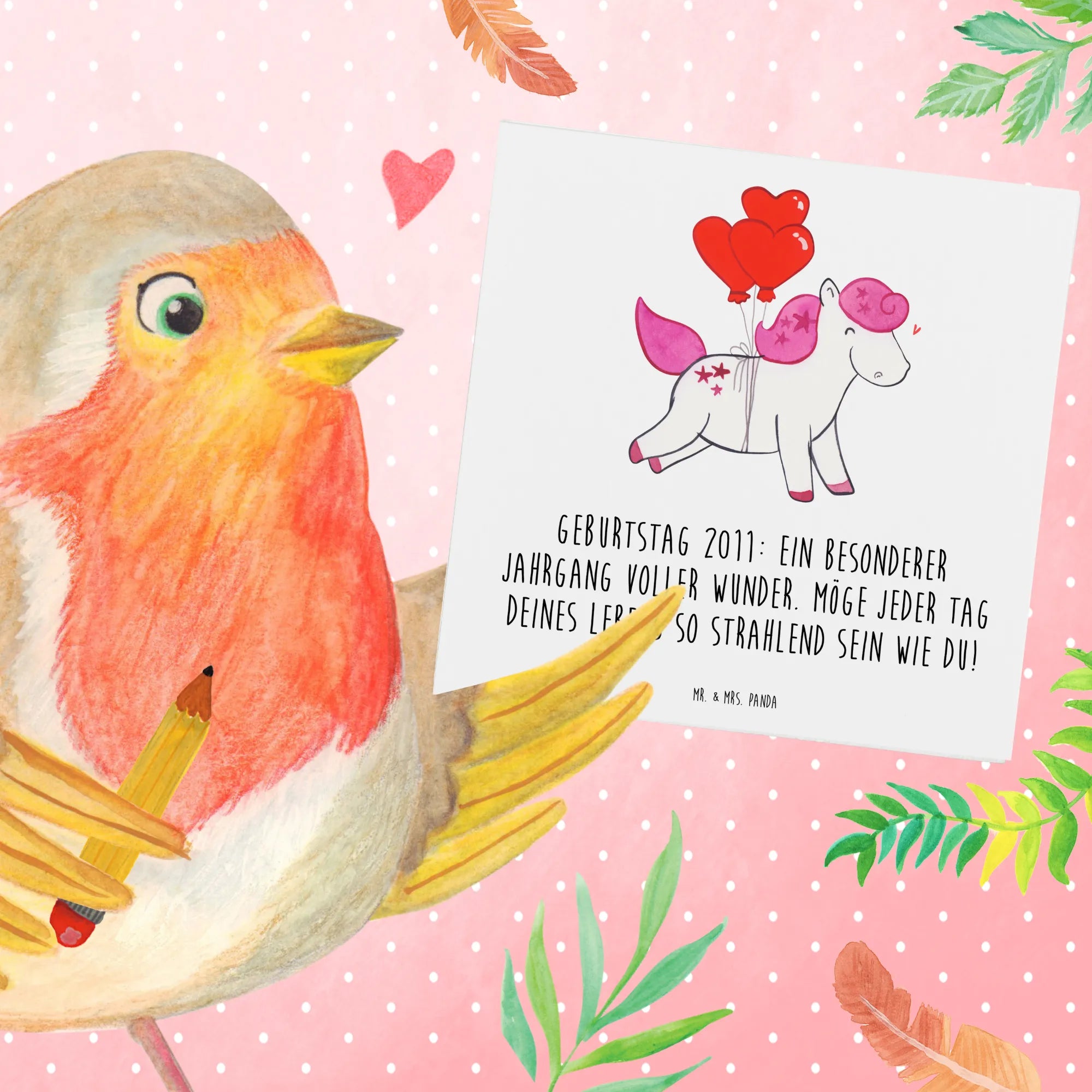 Die Deluxe Karte „2011 Geburtstag“ von Mr. & Mrs. Panda ist das ideale Geschenk für jeden, der 2011 geboren wurde oder in diesem Jahr gefeiert wird. Diese wunderschöne und besonders hochwertige quadratische Karte wird aus edlem 300 Gramm Papier gefertigt und besticht durch ihre hochglänzend veredelte Vorderseite.