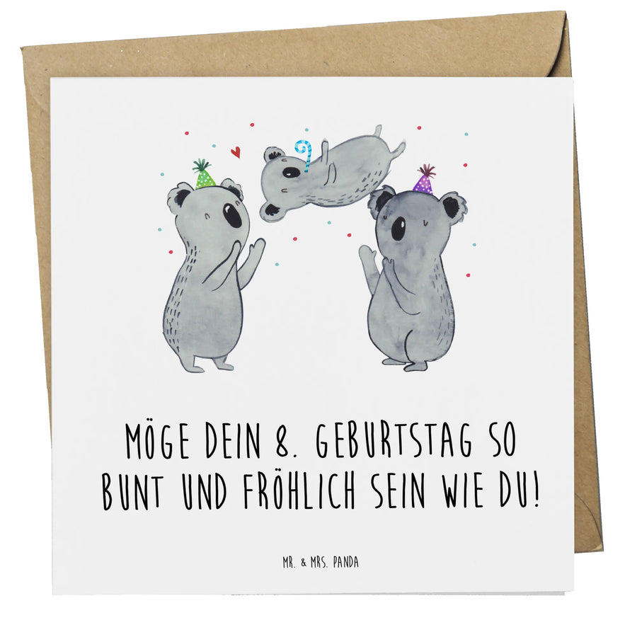 Entdecke die perfekte Karte für den 8. Geburtstag mit der Deluxe Karte von Mr. & Mrs. Panda! Diese wunderschöne und besonders hochwertige quadratische Karte ist das ideale Geschenk, um Deinem kleinen Schatz an diesem besonderen Tag eine Freude zu bereiten. Ob für Freunde, Verwandte oder das eigene Kind – die Karte wird sicherlich ein Lächeln ins Gesicht zaubern. Der Slogan "Möge dein 8. Geburtstag so bunt und fröhlich sein wie du!" spricht für sich und bringt die Lebensfreude perfekt zum Ausdruck.