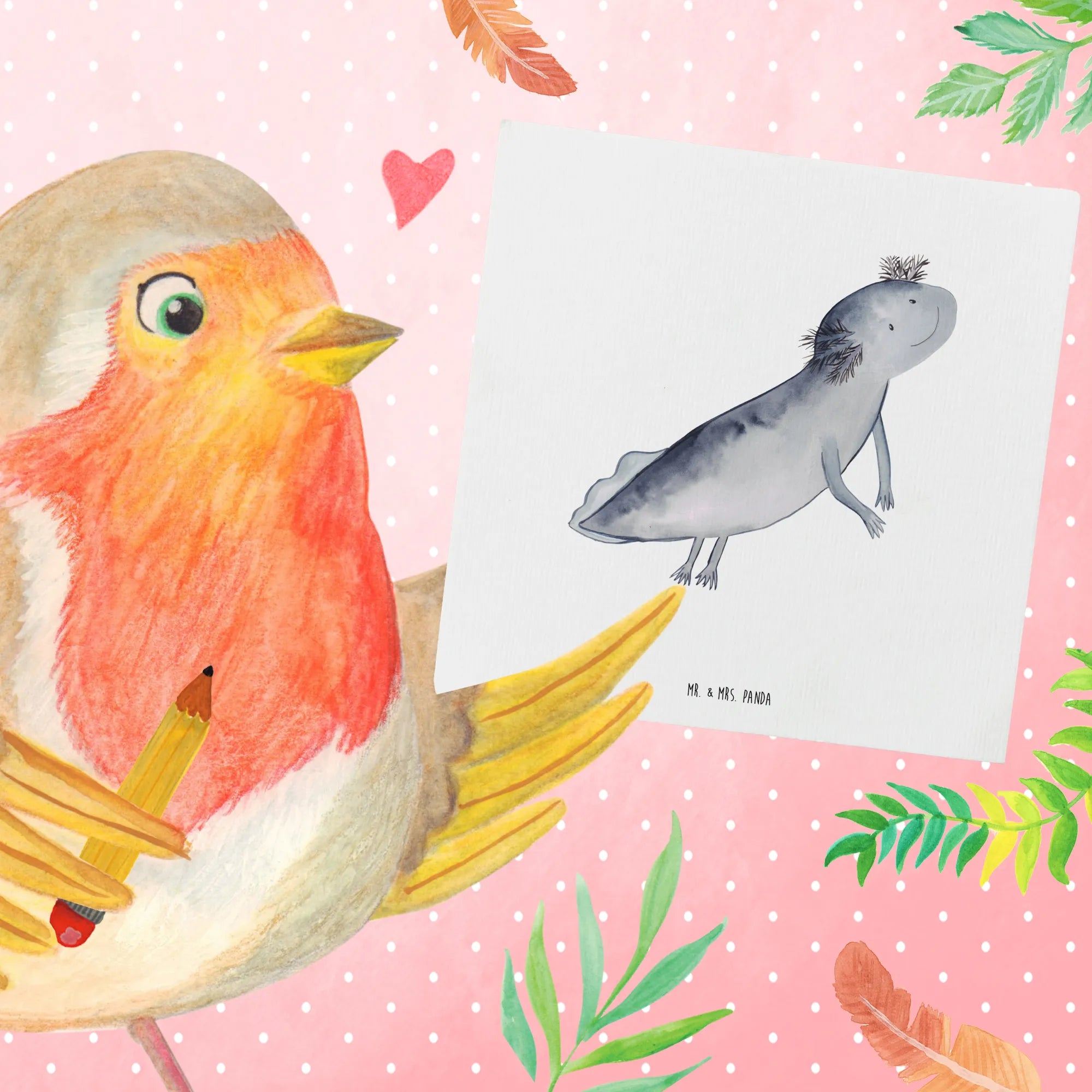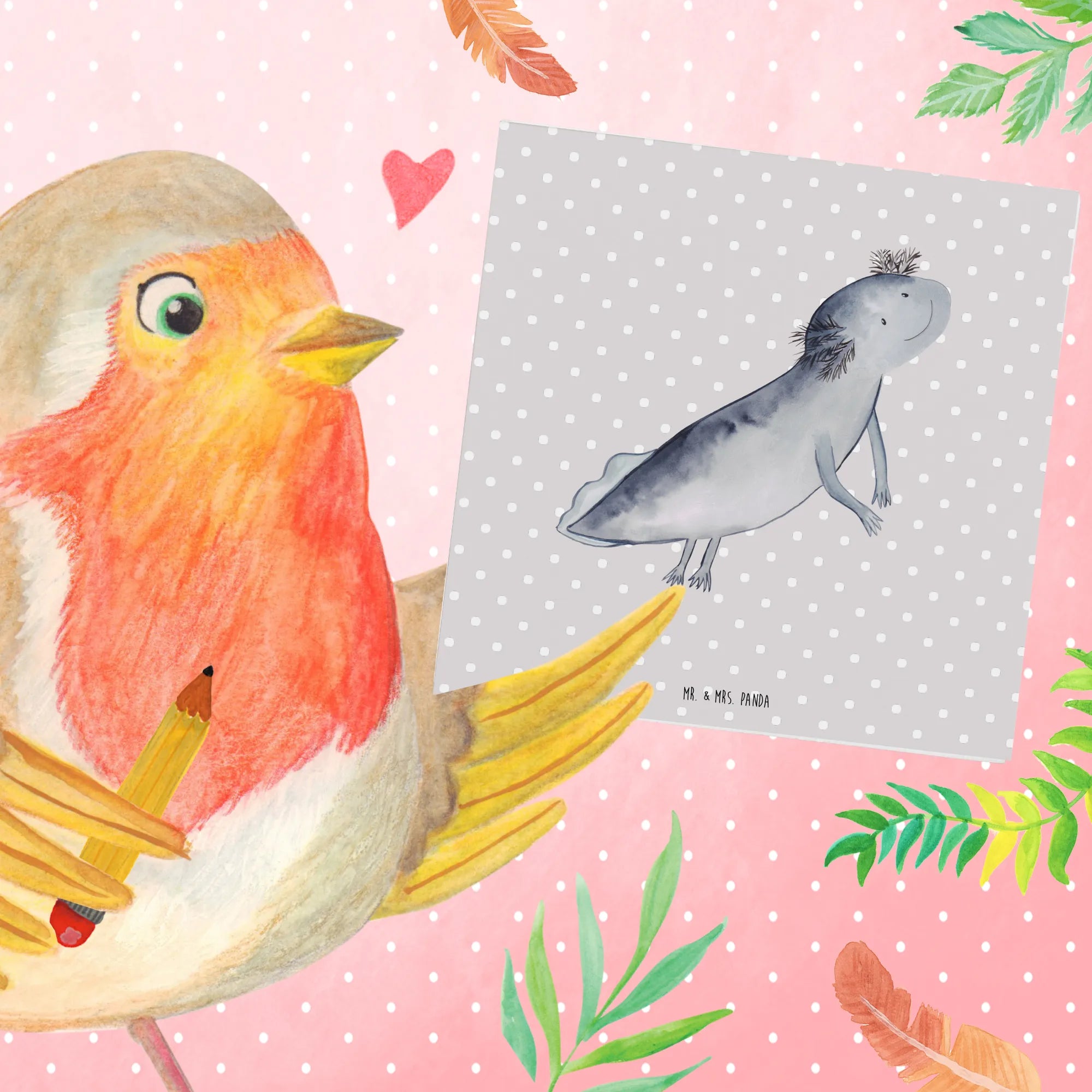 Grußkarte Axolotl Schwimmen - mit Spruch - Grau Pastell