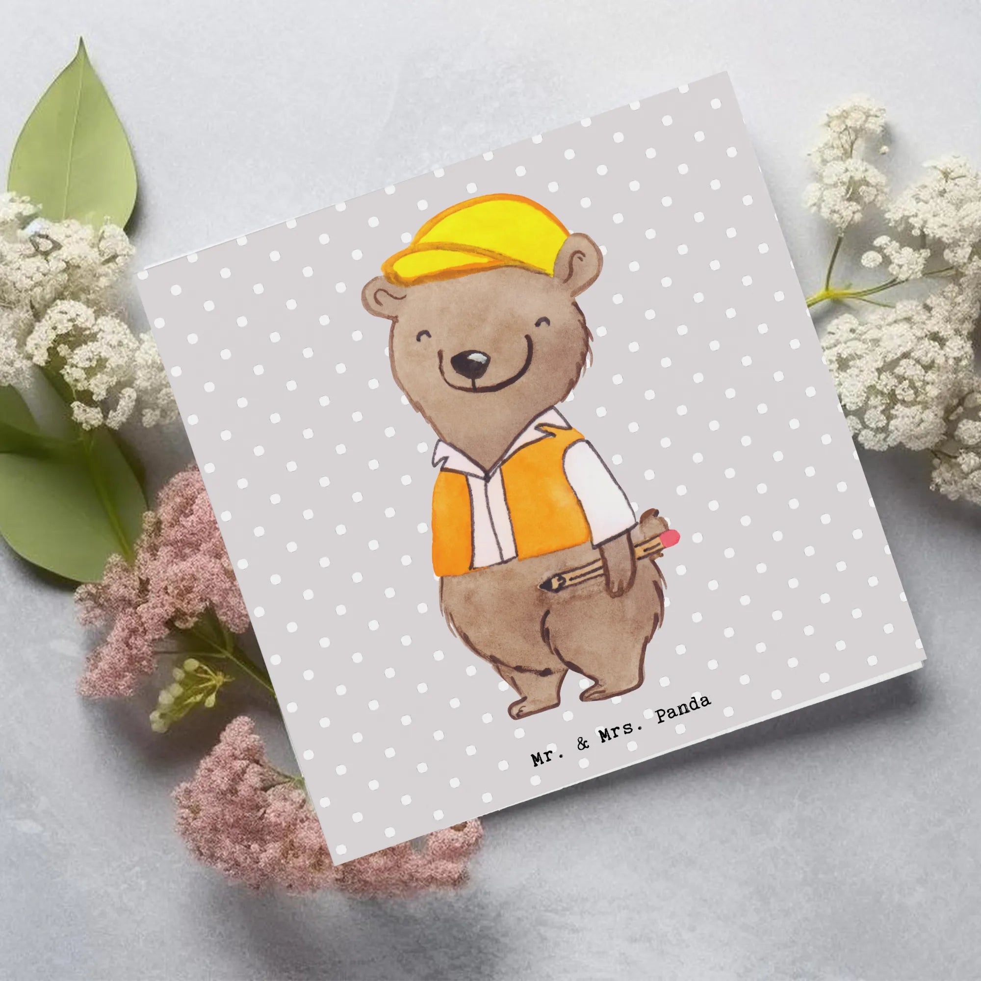 Klappkarte Bauingenieur Herz - mit Spruch - Grau Pastell