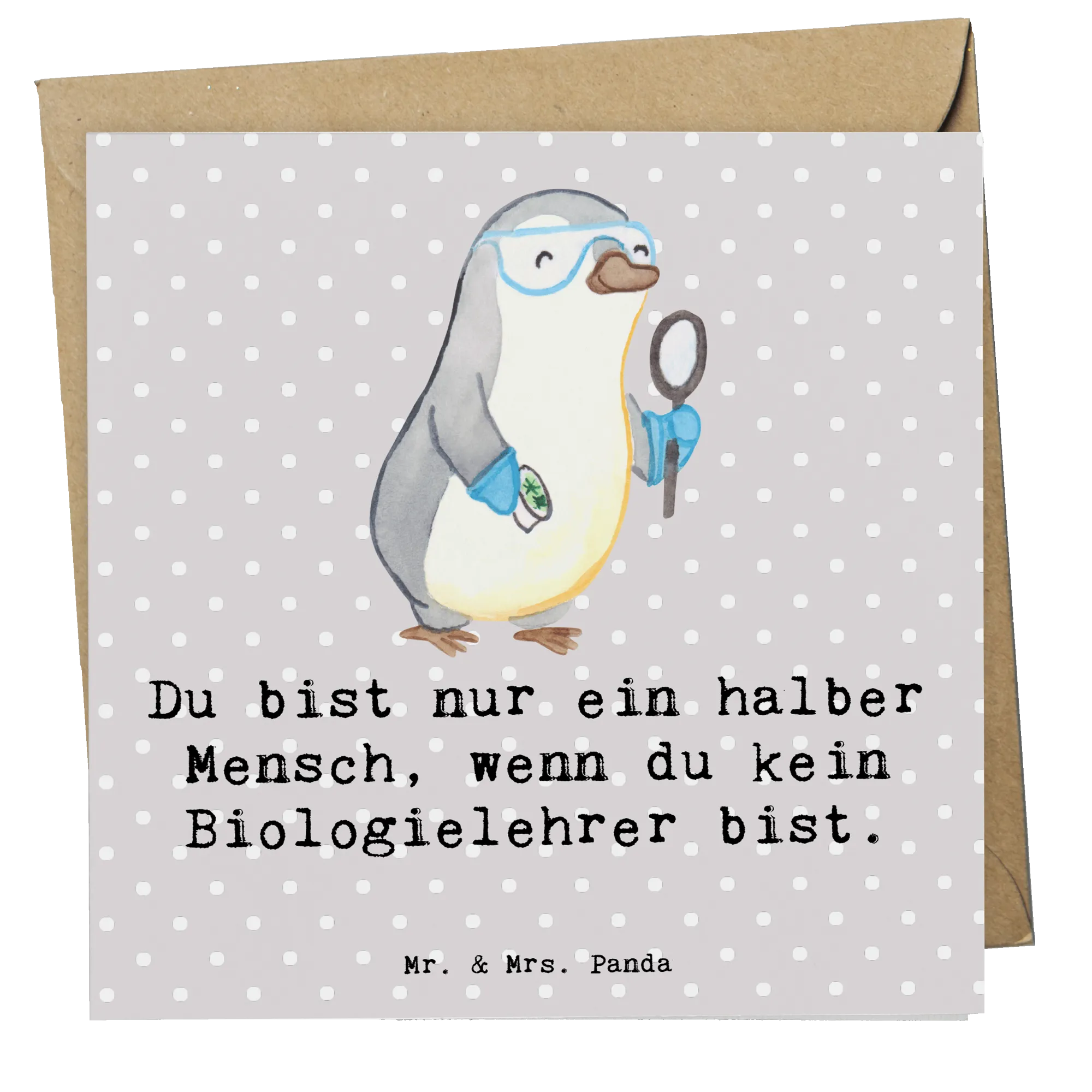 Mit einem charmanten Motiv eines süßen Pinguins, der in einem Labor steht, bringt diese Karte nicht nur Freude, sondern vermittelt auch ganz klar: Du bist nur ein halber Mensch, wenn du kein Biologielehrer bist! Das Hochglanz-Finish auf der Vorderseite und der mattierte Innenteil bieten die perfekte Kombination aus Eleganz und Funktionalität – ideal für individuelle Grüße oder Glückwünsche zu besonderen Anlässen wie Geburtstagen, Hochzeiten oder Verabschiedungen.