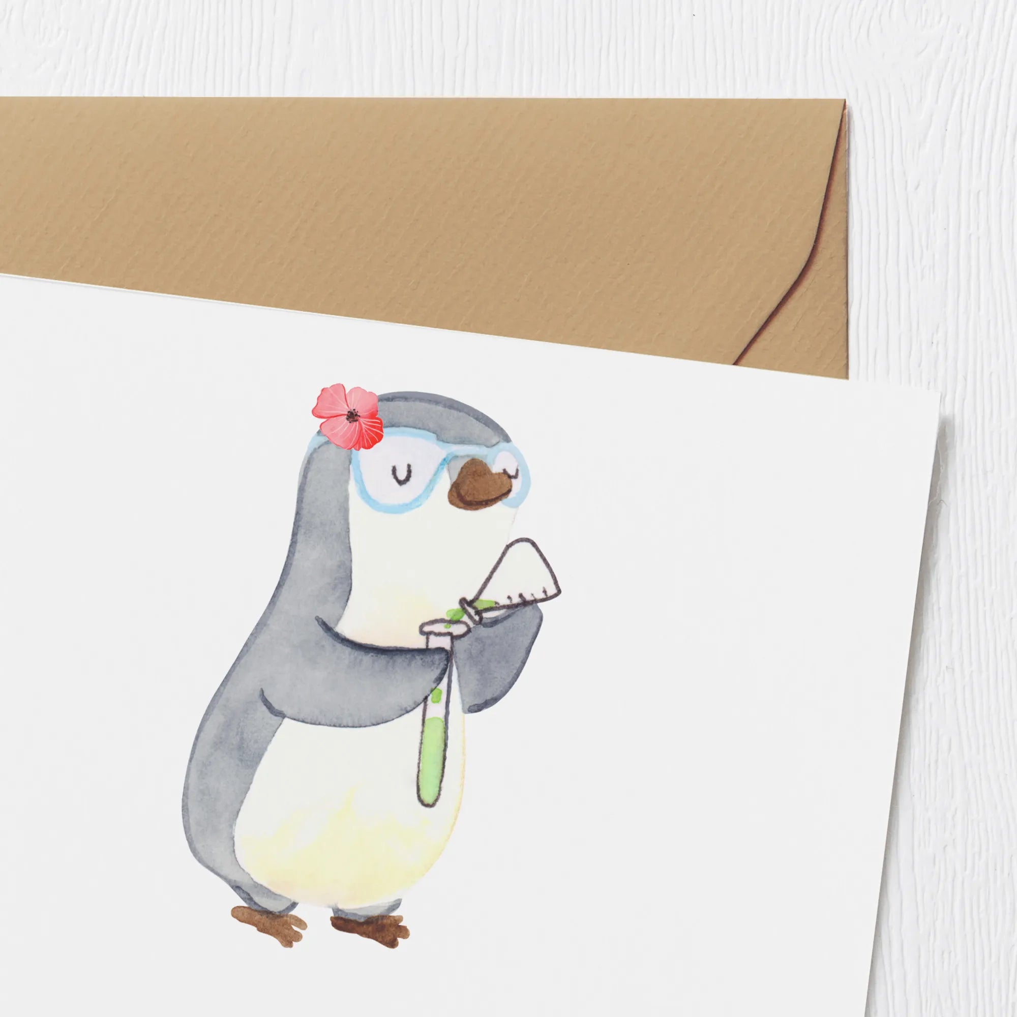 Die Deluxe Karte "Chemielaborantin aus Leidenschaft" von Mr. & Mrs. Panda ist die perfekte Überraschung für alle, die in der Welt der Chemie zu Hause sind. Wenn Du einem Kollegen, einer Freundin oder einer lieben Chemikerin eine Freude machen möchtest, ist diese Karte genau das richtige Geschenk! Mit ihrem charmanten Design, das einen süßen Pinguin zeigt, der ein Reagenzglas hält, spricht sie die Herzen von Naturwissenschaftlerinnen und Wissenschaftlern gleichermaßen an.
