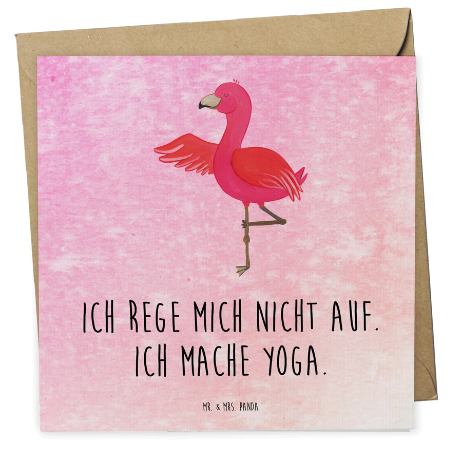 Grußkarte Flamingo Yoga - mit Spruch - Aquarell Pink