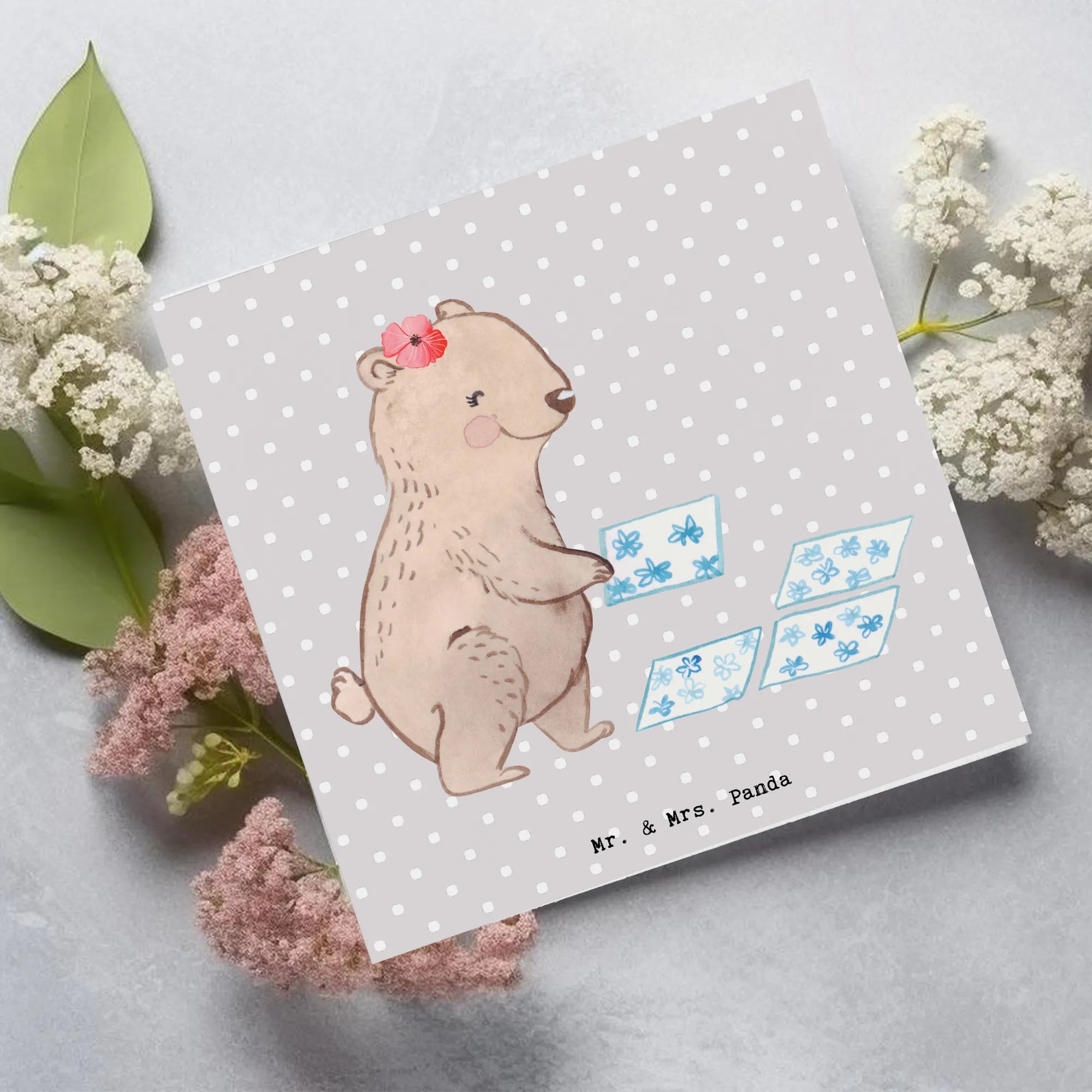 Die Deluxe Karte "Fliesenlegerin mit Herz" aus der Kollektion Berufe von Mr. & Mrs. Panda ist das ideale Geschenk für all jene, die die Leidenschaft für das Fliesenlegen ausleben. Ob zum Berufsabschied, zur Gesellenprüfung oder einfach nur, um Dankeschön zu sagen – diese Karte bringt Freude.