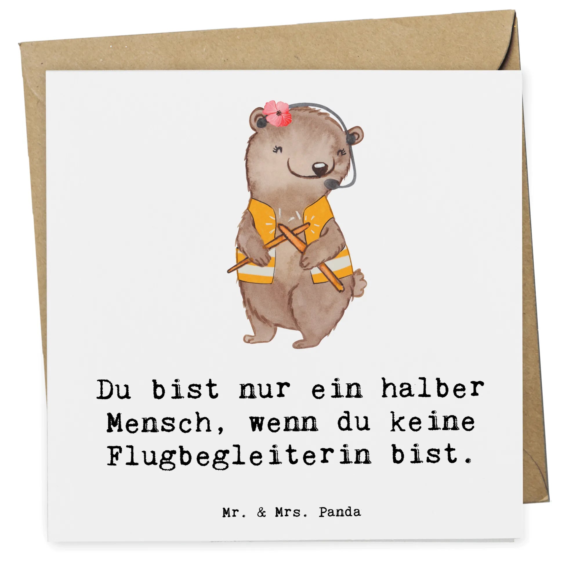 Diese Karte entstammt der kreativen 'Berufe'-Kollektion von Mr. & Mrs. Panda und spiegelt die Freude und Leidenschaft wider, die unsere kleinen Charaktere für ihre Berufe empfinden. Es ist eine liebevolle Art, Danke zu sagen, sei es zum Berufsabschluss, zum Berufsjubiläum oder einfach nur so. Immer wenn du jemanden einen bleibenden Eindruck hinterlassen möchtest, ist diese Grußkarte die perfekte Wahl. Du bist nur ein halber Mensch, wenn du keine Flugbegleiterin bist – mit dieser Karte kannst du Deine Wertschätzung auf eine spielerische Weise ausdrücken.