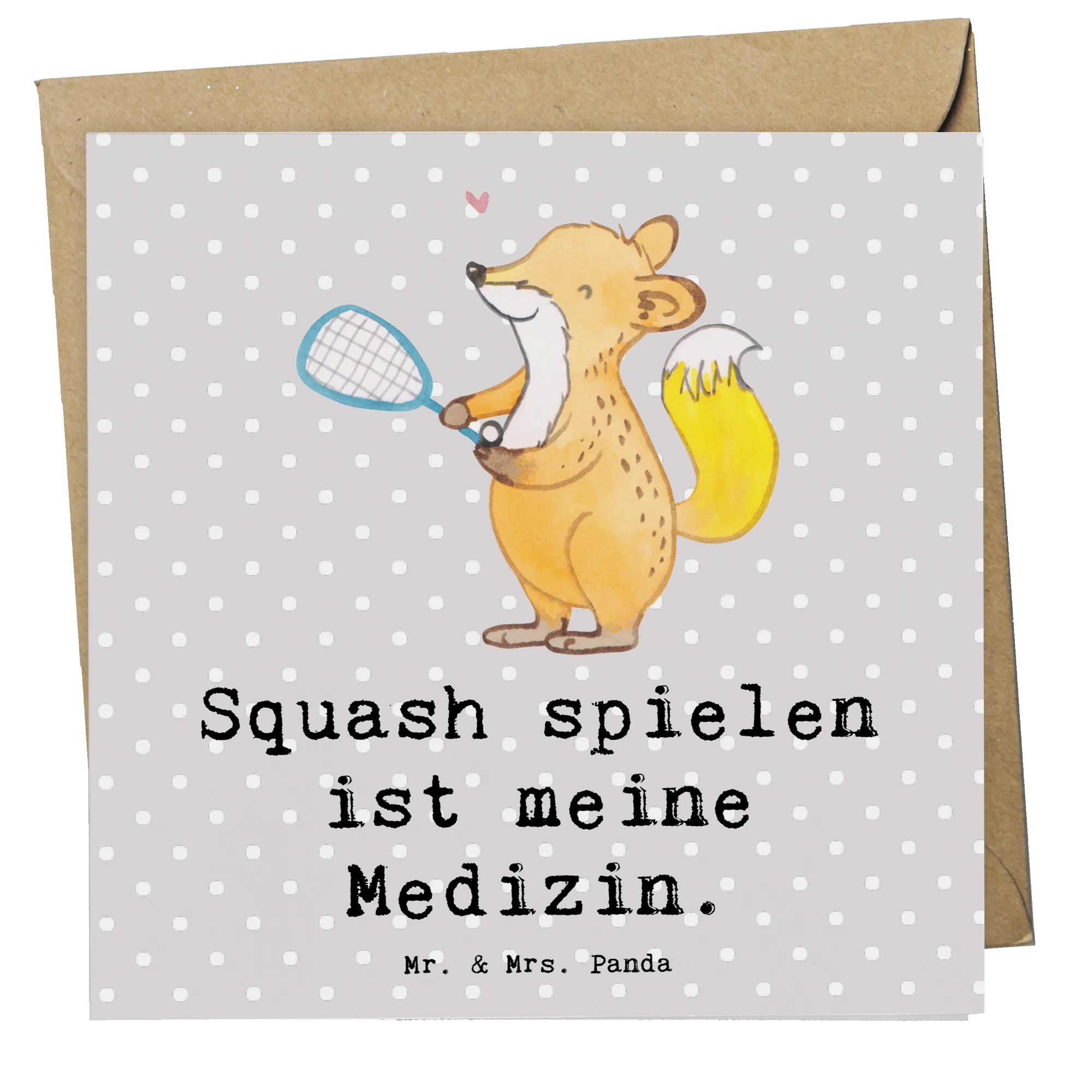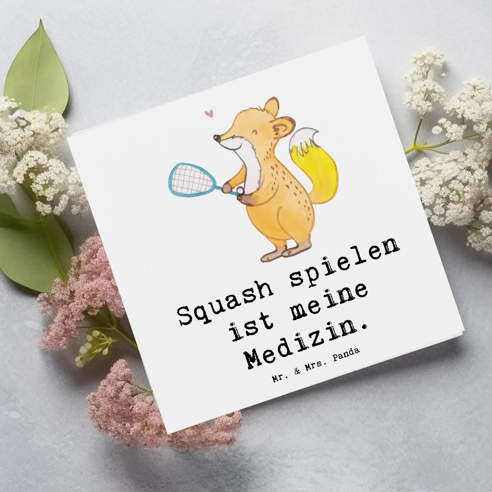 Ob zum Geburtstag, zur Hochzeit oder einfach nur als Dankeschön – diese hochwertige Klappkarte wird garantiert gut ankommen! Der Slogan 'Squash spielen ist meine Medizin' spricht besonders Sportler an, die ihre Leidenschaft für den Ballsport mit anderen teilen möchten.