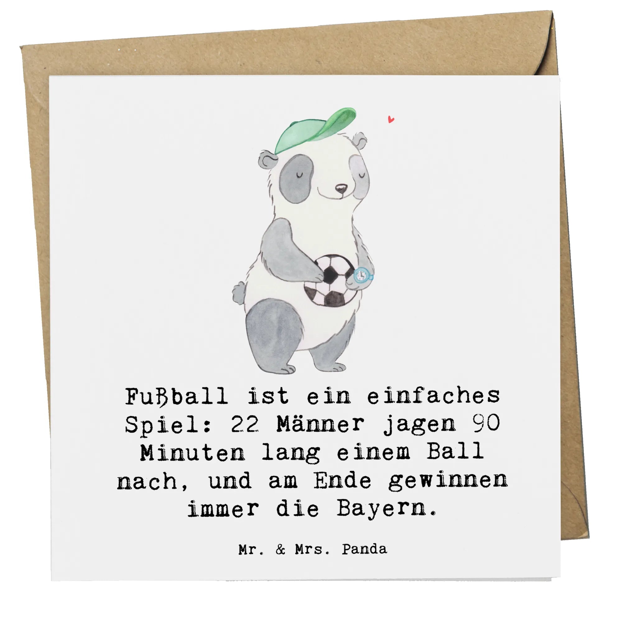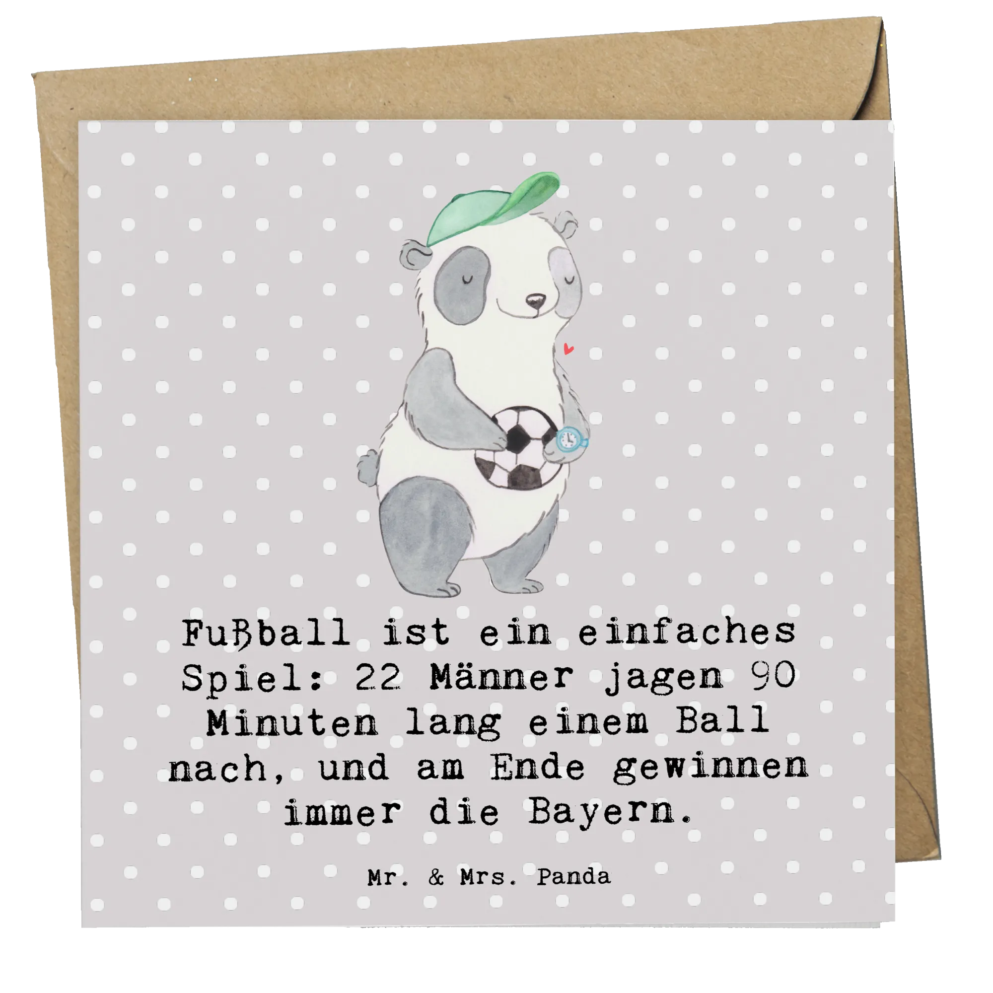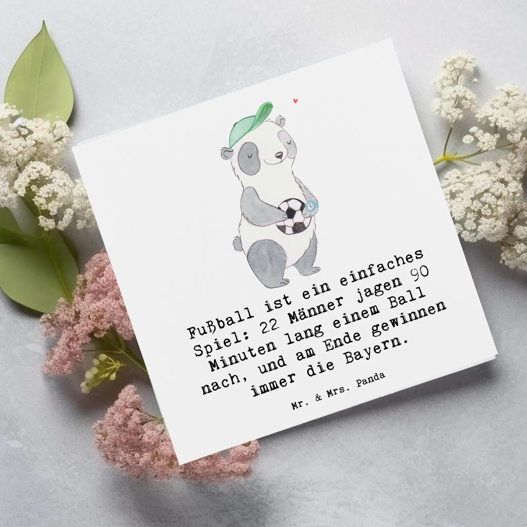 Die Deluxe Karte Fußball von Mr. & Mrs. Panda ist das ideale Geschenk für alle Fußballfans! Mit einem liebevoll gestalteten Motiv und dem humorvollen Slogan "Fußball ist ein einfaches Spiel: 22 Männer jagen 90 Minuten lang einem Ball nach, und am Ende gewinnen immer die Bayern", zieht diese Karte garantiert die Aufmerksamkeit auf sich.