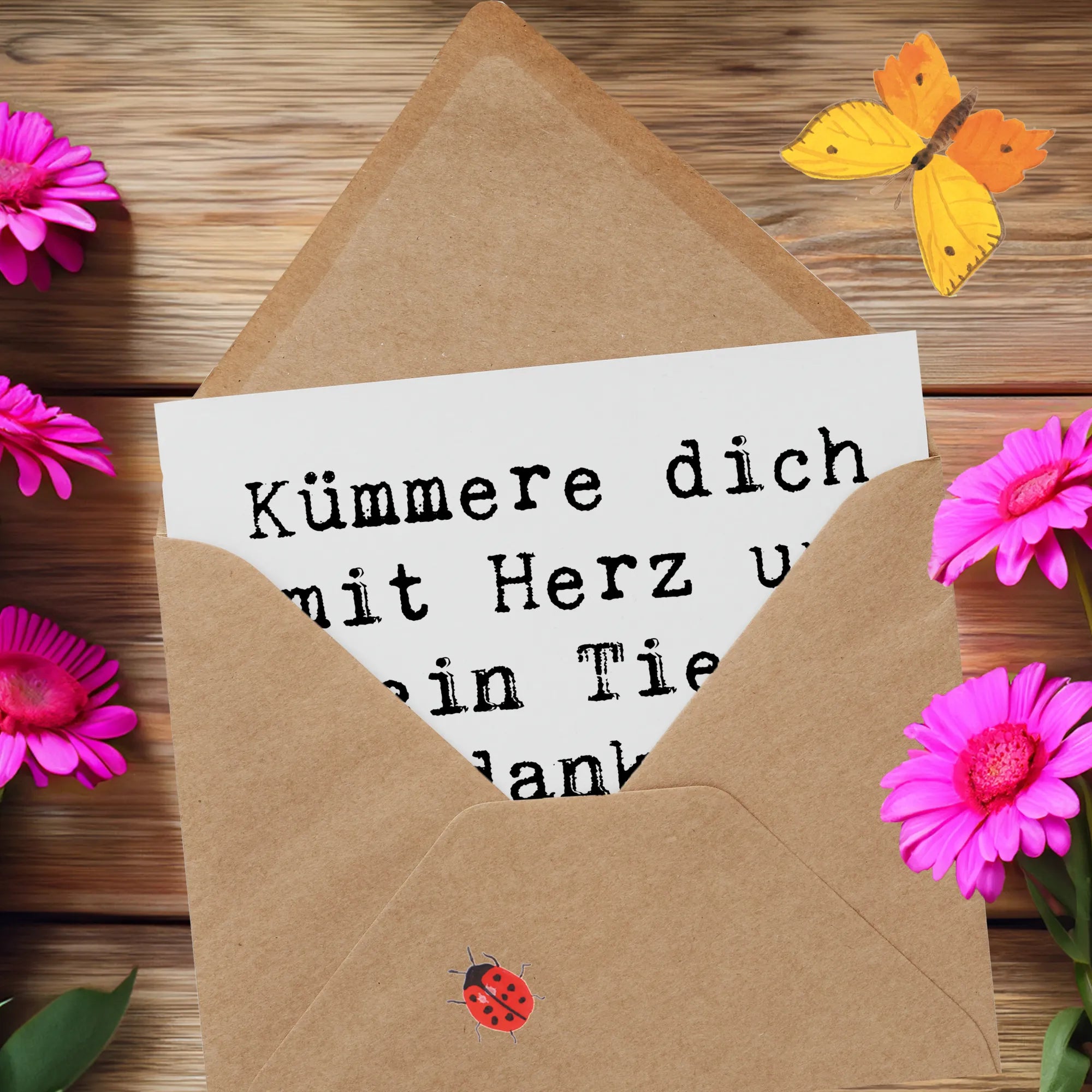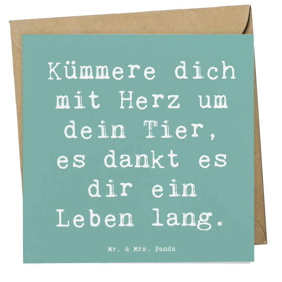 Diese Karte ist perfekt, um deinen Freunden und Familie eine Botschaft der Liebe und Fürsorge für ihre geliebten Haustiere zu übermitteln. Der Spruch auf der Vorderseite, 'Kümmere dich mit Herz um dein Tier, es dankt es dir ein Leben lang', spricht die Herzen aller Tierfreunde an und bietet Trost sowie Ermutigung.