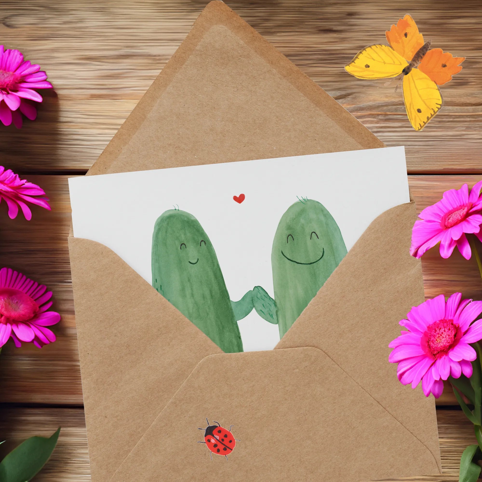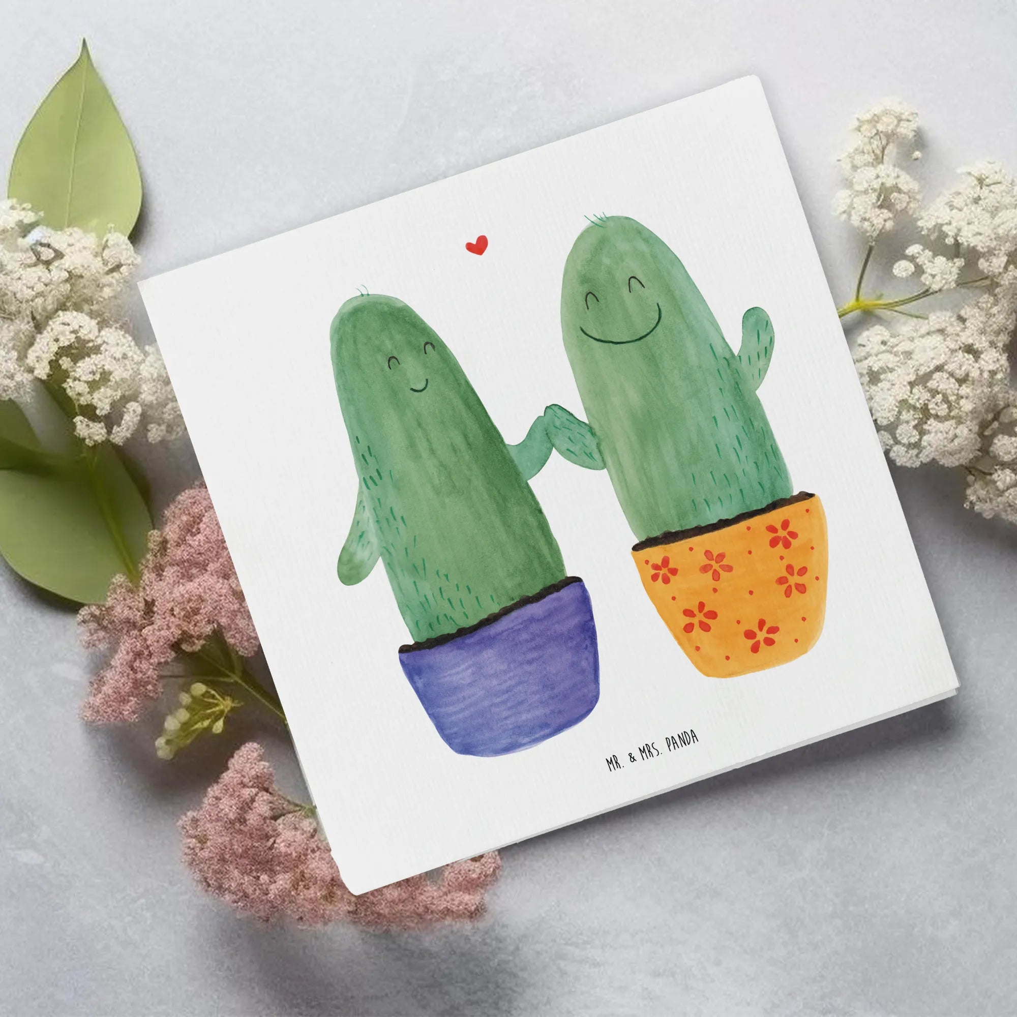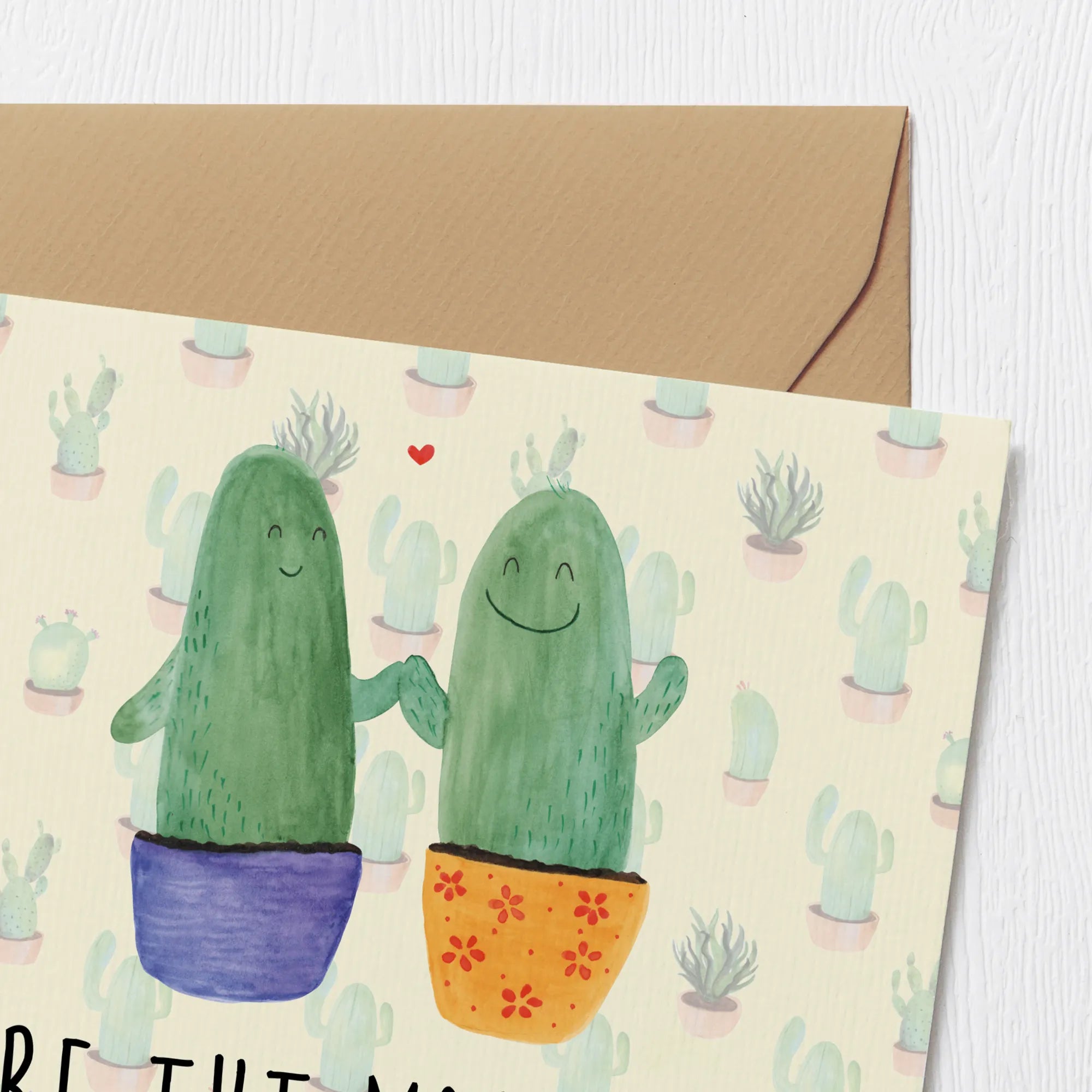 Mit einem Motiv, das zwei fröhliche Kakteen zeigt, die sich glücklich anblicken, verbreitet die Karte schon beim Anschauen gute Laune und ein Gefühl von Verbundenheit.