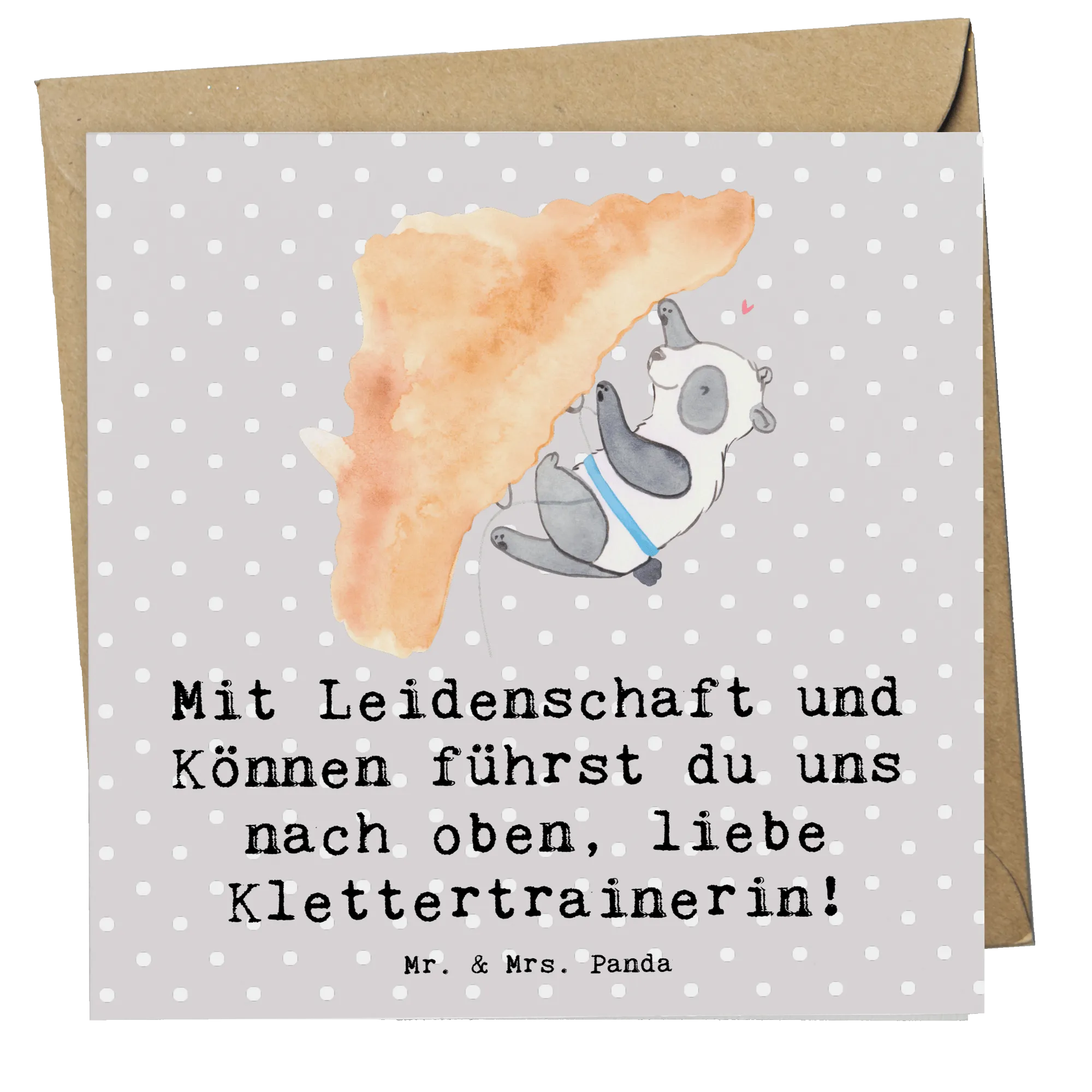 Bist du auf der Suche nach dem perfekten Geschenk für deine Klettertrainerin? Dann ist die Deluxe Karte "Klettern Trainerin" aus der exklusiven Kollektion "Sportarten Trainerin" von Mr. & Mrs. Panda genau das Richtige für dich!