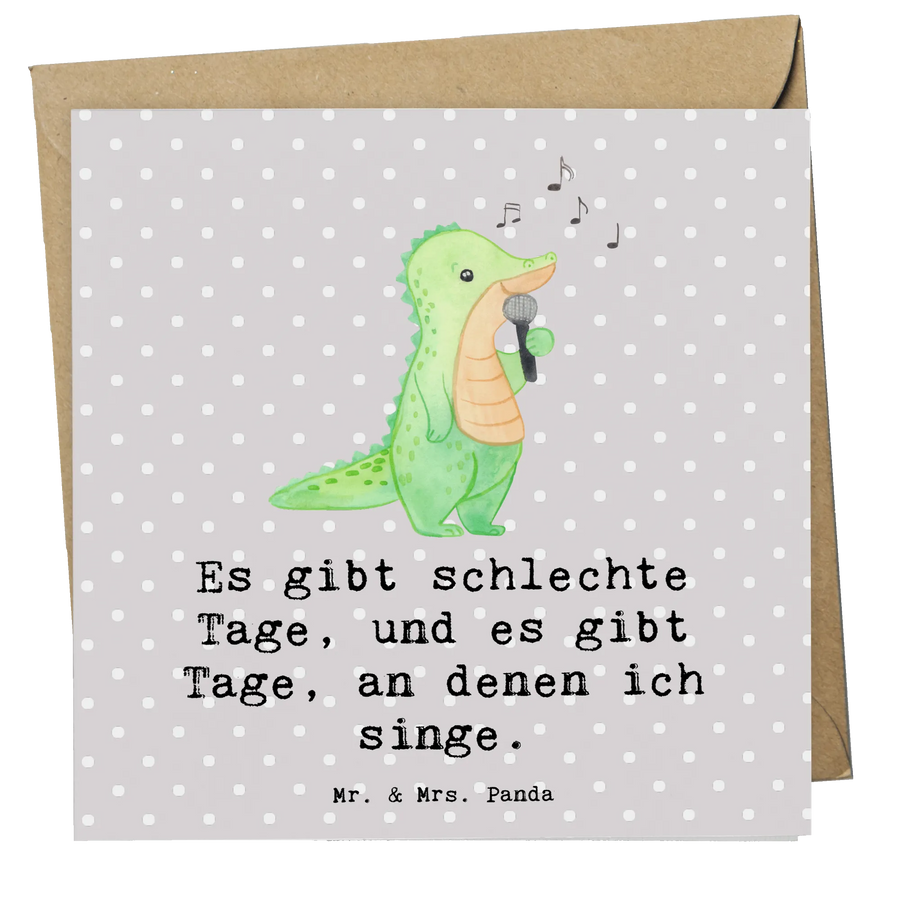 Deluxe Karte Krokodil Singen - mit Spruch - Grau Pastell