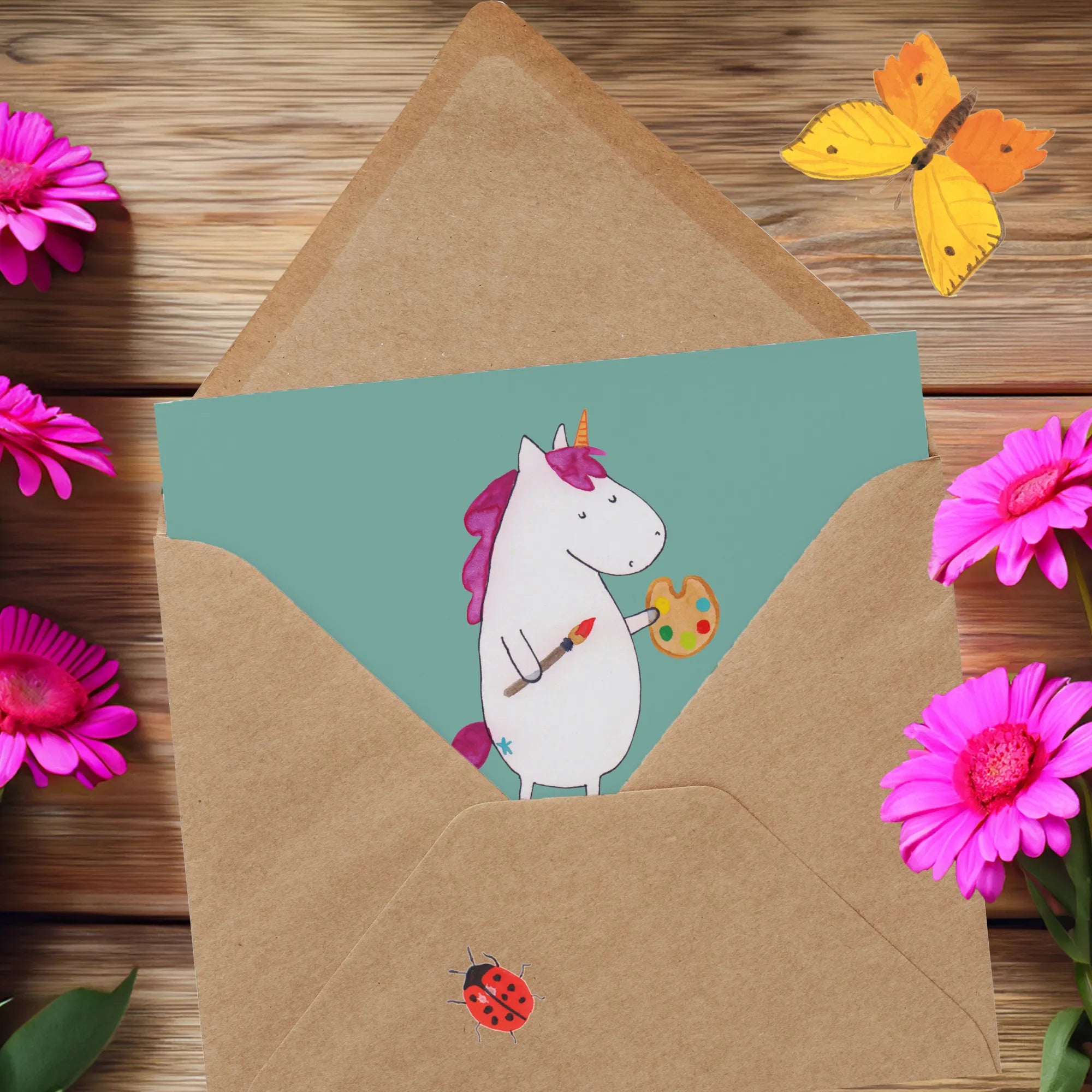 Mit der Deluxe Karte Künstlerin aus der Kollektion Berufe bringst du nicht nur Freude, sondern auch ein Stück Kunst in das Leben deiner Freunde und Familie. Verschenke kreative Momente und bringe die Schönheit der Kunst in den Alltag. Diese Karte ist ein ideales Geschenk für jeden Anlass und wird sicherlich von jedem geschätzt, der die kreative Ader in sich trägt. Schenke Freude, schenke Kunst - mit Mr. & Mrs. Panda!