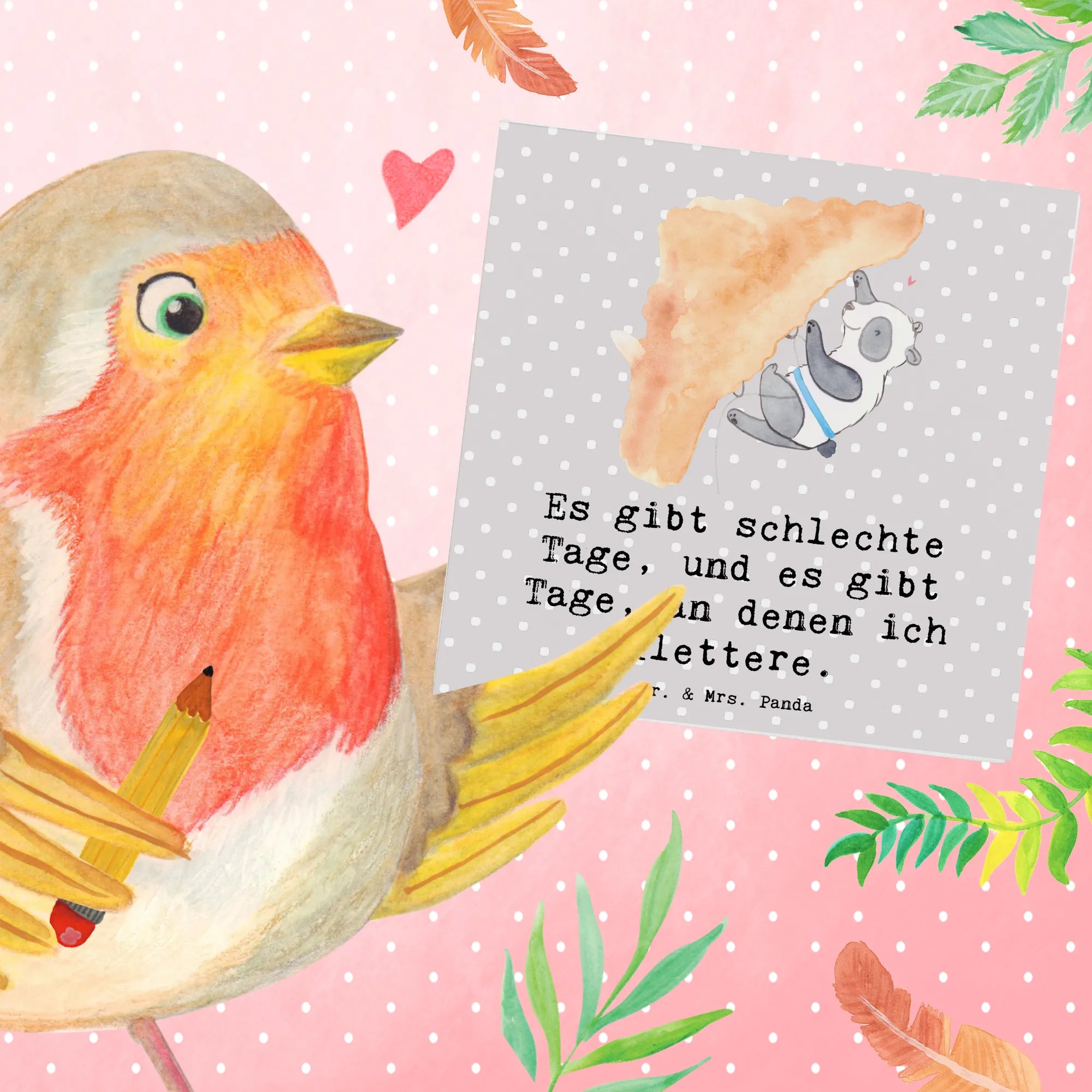 Die Kollektionsreihe "Hobby & Sport" von Mr. & Mrs. Panda umfasst über 200 handgemalte Motive und eignet sich perfekt für Sportler, die ihr Hobby lieben. Ob im Klettergarten, der Kletterhalle oder beim Bouldern – diese Karte ist nicht nur ein neuer Gruß, sondern ein kleines Stück Motivation für jeden Klettersportler.