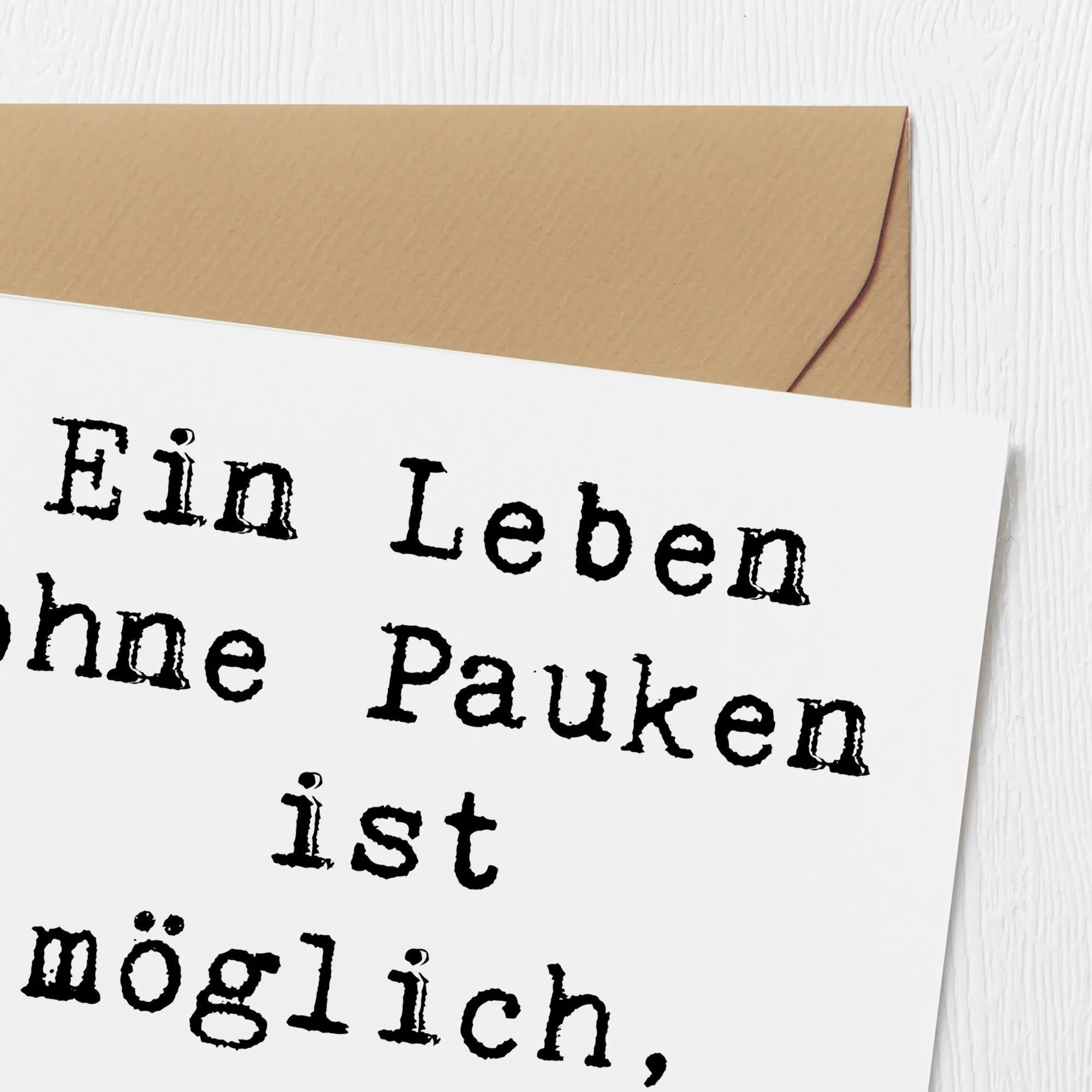 Die Pauken, auch bekannt als Timpani, sind nicht nur optisch ein Highlight, sondern auch klanglich eine Hauptattraktion in der klassischen Musik. Mit dem Spruch 'Ein Leben ohne Pauken ist möglich, aber sinnlos.' auf der Vorderseite, wird die Karte zum besonderen Hingucker in jedem Briefkasten.