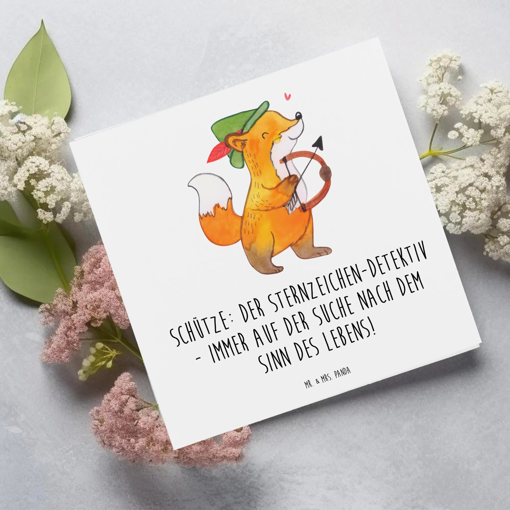 Die Motive sind handgezeichnet und bringen die Eigenschaften des Schützen auf kreative Weise zum Ausdruck. Verleihe deinen Glückwünschen einen besonderen Touch mit dieser Karte aus der Sternzeichen-Kollektion von Mr. & Mrs. Panda, die die einzigartigen Merkmale und die Faszination der Tierkreiszeichen in liebevollen Designs feiert.