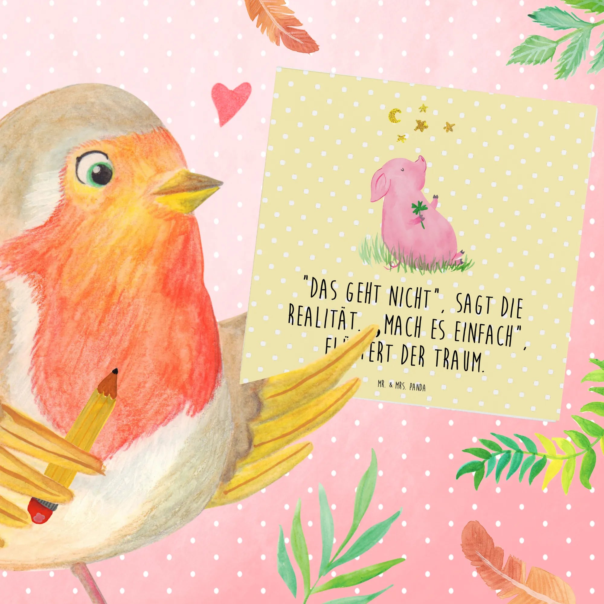 Du willst jemandem Glück schenken? Unsere Deluxe Karte Glücksschwein aus der Small World Kollektion von Mr. & Mrs. Panda ist genau dafür gemacht. Ein niedliches Schweinchen hält ein Kleeblatt – das Symbol für Glück und Zufriedenheit – und begleitet Deine Botschaft mit dem inspirierenden Spruch: „Das geht nicht“, sagt die Realität. „Mach es einfach“, flüstert der Traum. 🎈