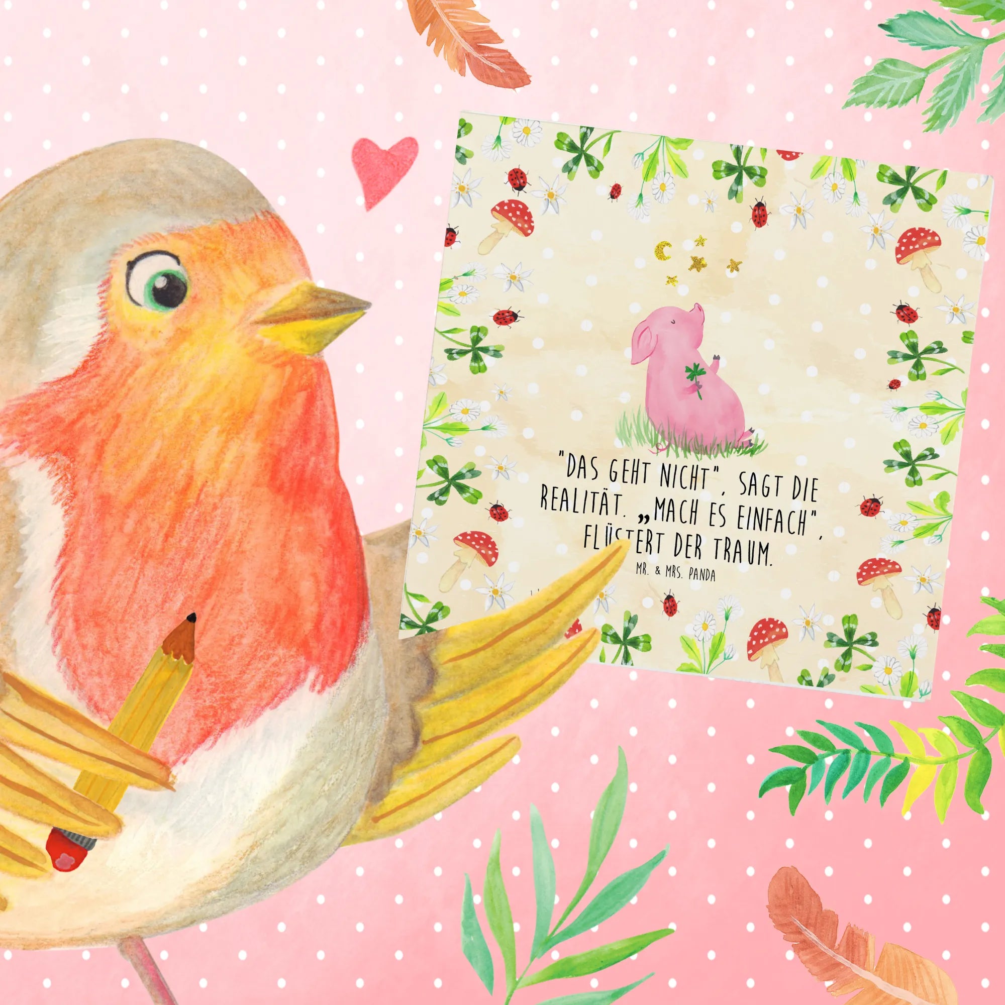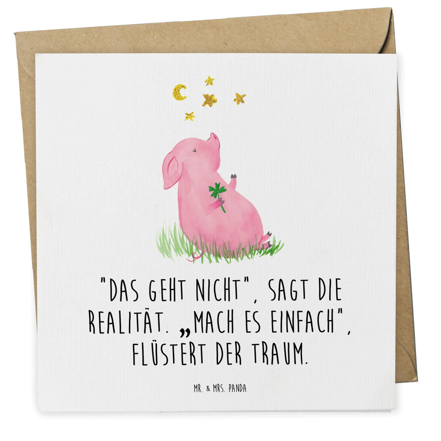 Mit dem Slogan „Das geht nicht, sagt die Realität. Mach es einfach, flüstert der Traum“, inspiriert die Karte dazu, das Glück in dein Leben und das Leben deiner Lieben zu lassen. Wenn du nach einer Karte suchst, die Motivation und positive Energie versprüht, dann ist das Glücksschwein genau das, was du brauchst. Egal ob zum Gratulieren, zum Feiern oder einfach nur so – das Glücksschwein macht jeden Anlass besonders und zaubert ein Lächeln auf die Gesichter deiner Freunde und Familie. Lass das Glück in dein Leben kommen und greif zur Deluxe Karte von Mr. & Mrs. Panda, die Freude und Glücksgefühle in sich trägt!