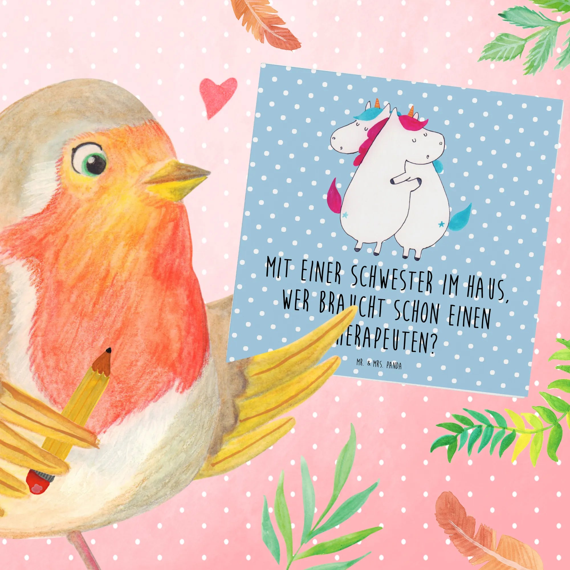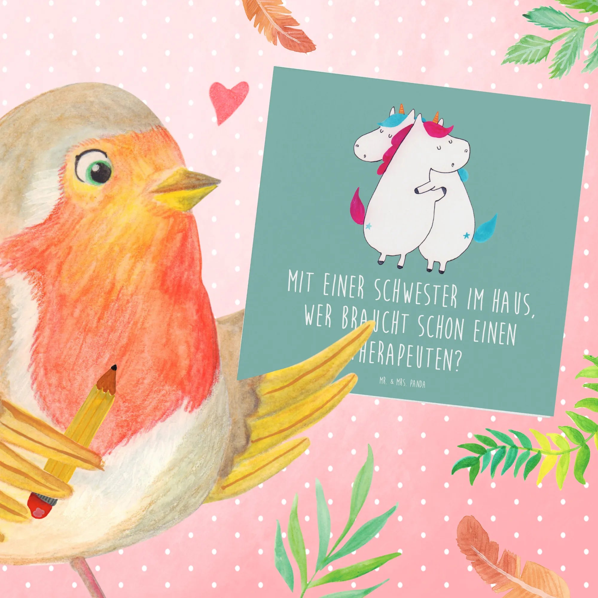 Bereite deiner Schwester mit dieser Karte eine echte Freude. Ob als Dankeschön für ihre Unterstützung, als kleine Überraschung zwischendurch oder als liebevolle Botschaft, die einfach mal gesagt werden muss – diese Karte ist ein Must-Have. Die Kollektion „Familie & Verwandte“ von Mr. & Mrs. Panda bietet eine große Auswahl an Karten, die die bunte Vielfalt der Familie widerspiegeln und jeden Anlass feiern. Verwöhne deine Schwester mit einem Geschenk, das sie nie vergessen wird!