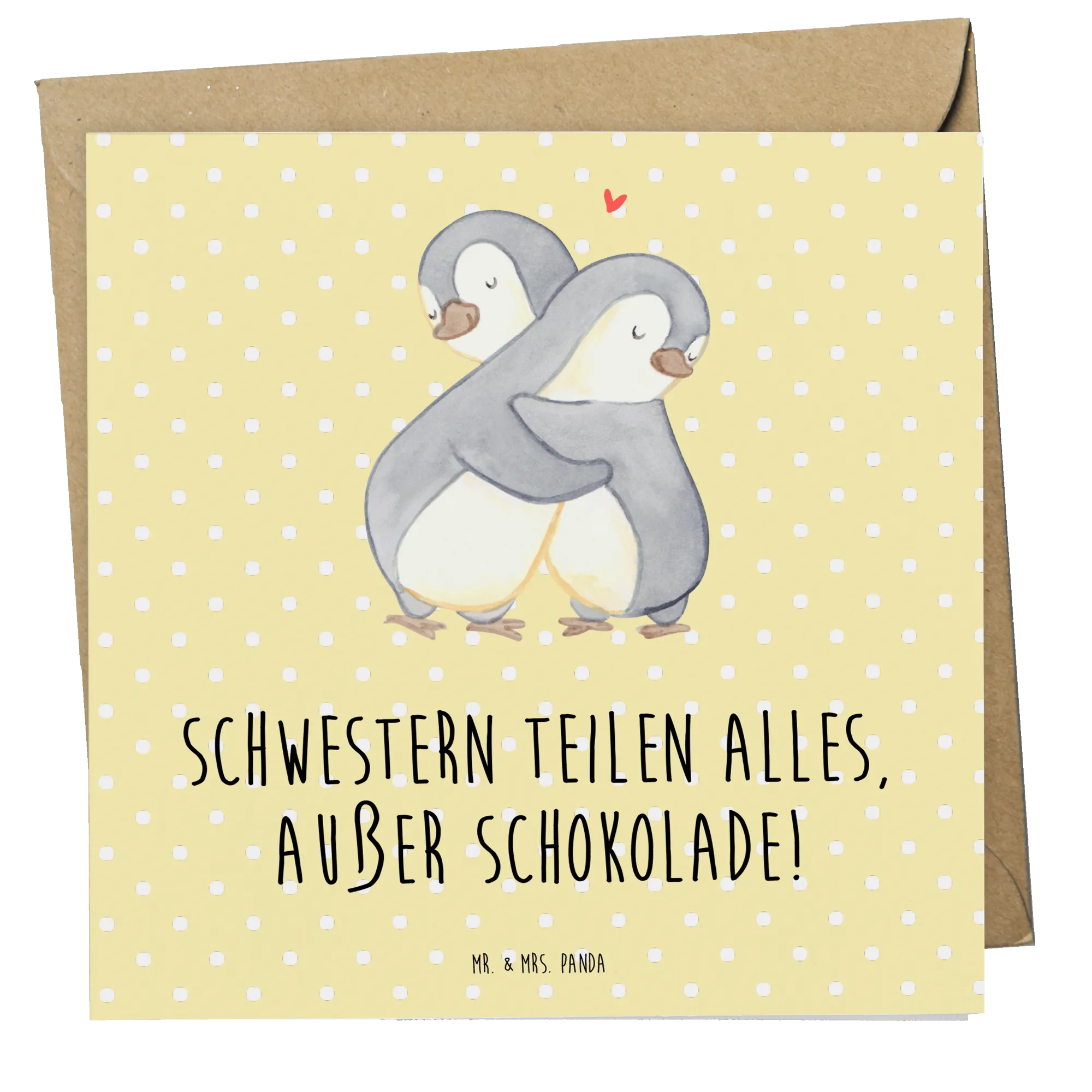 Die Deluxe Karte "Schwester" von Mr. & Mrs. Panda ist der perfekte Weg, um die besondere Beziehung zu Deiner Schwester zu feiern! Diese hochwertige Grußkarte ist aus edlem 300 Gramm Karton gefertigt und hat eine wunderschöne matte Optik. Mit einem einzigartigen Spruch "Schwestern teilen alles, außer Schokolade!" bringt sie ein Lächeln auf die Lippen jeder Schwester.