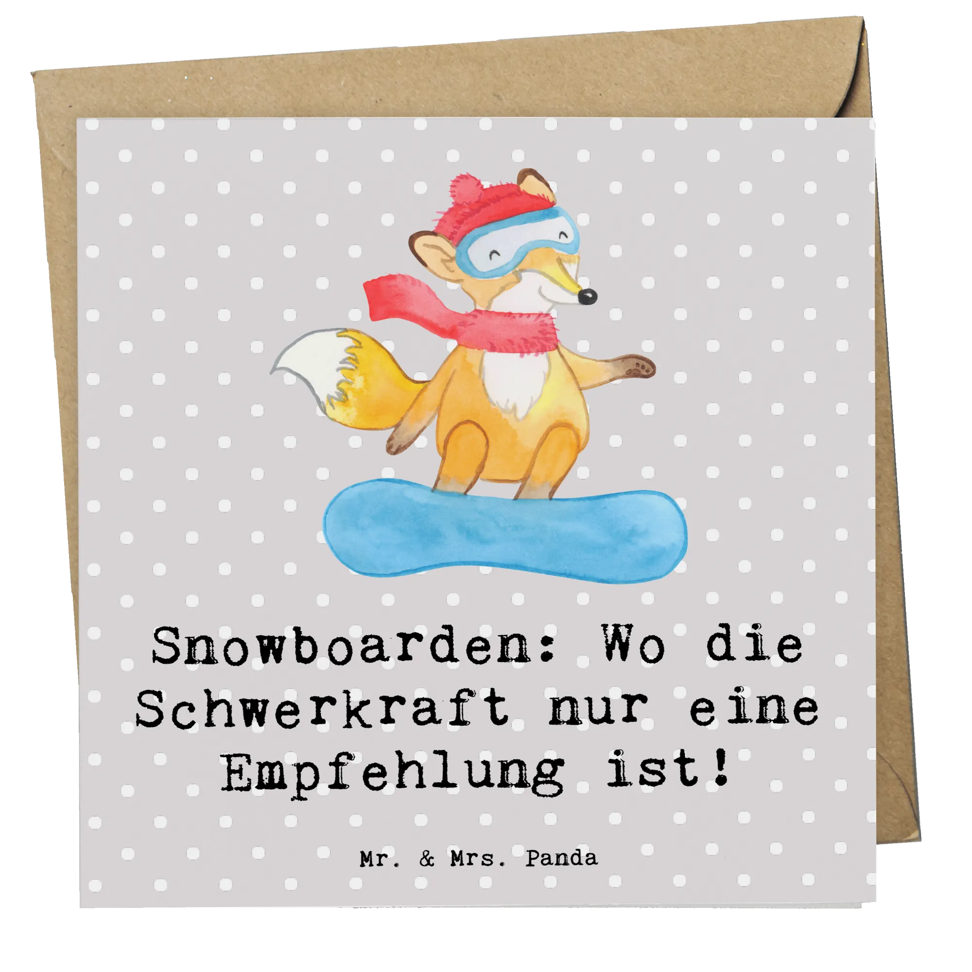 Die Karte ist aus edlem Karton gefertigt und hat die Maße 140 mm x 140 mm. Die Vorderseite ziert ein wundervolles Motiv mit dem Slogan: 'Snowboarden: Wo die Schwerkraft nur eine Empfehlung ist!'. Diese ermutigenden Worte und das aufregende Design machen die Karte zu einem echten Hingucker.