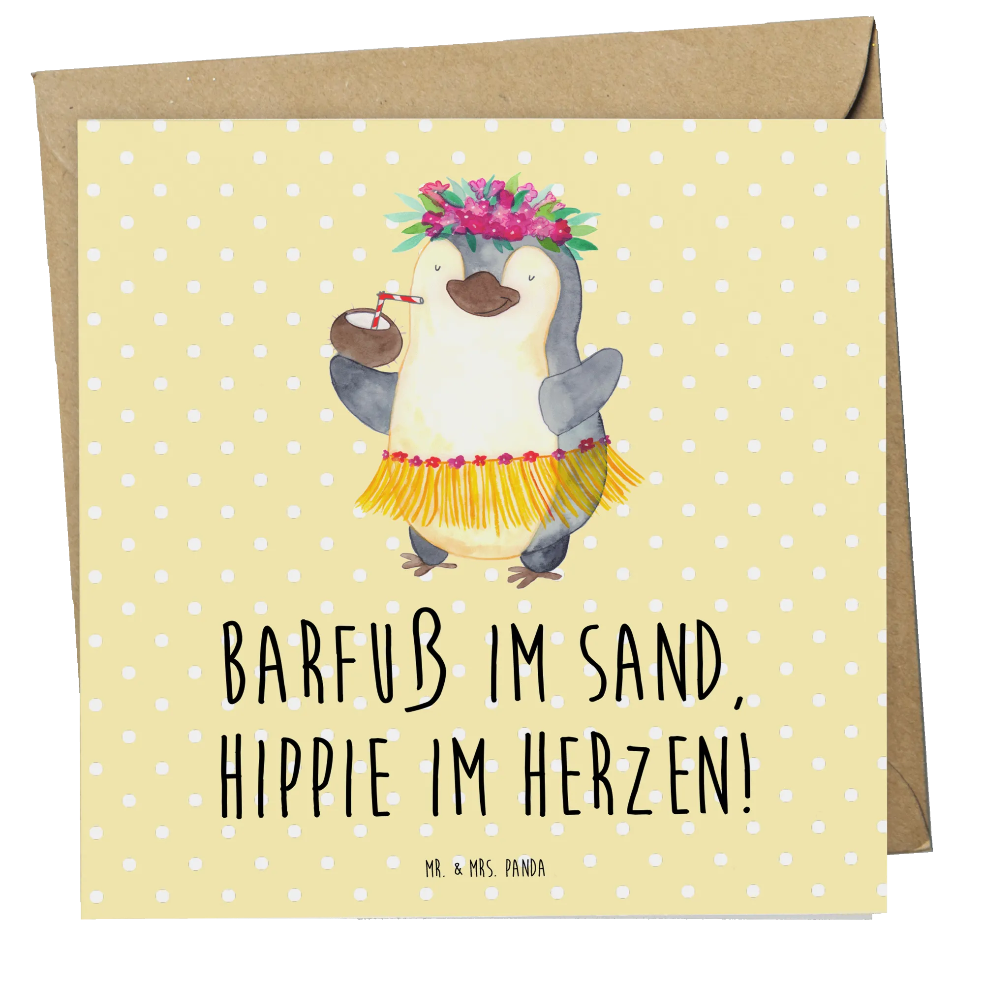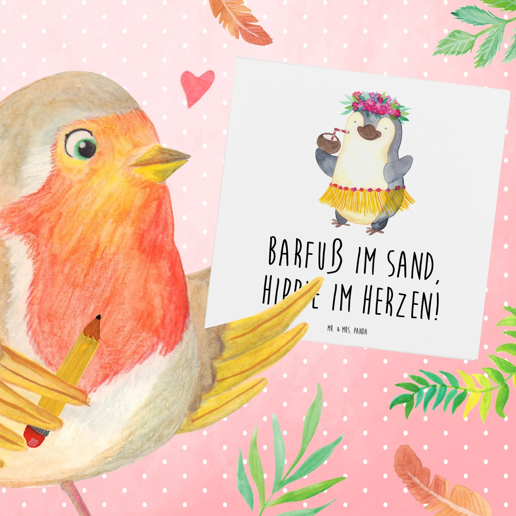Die Deluxe Karte Sommer von Mr. & Mrs. Panda ist das perfekte Geschenk für alle, die die sonnigen Tage des Jahres lieben. Mit dem wunderschönen Motiv und dem inspirierenden Slogan 'Barfuß im Sand, Hippie im Herzen!' fängt diese hochwertige Klappkarte das unbeschwerte Sommergefühl ideal ein.