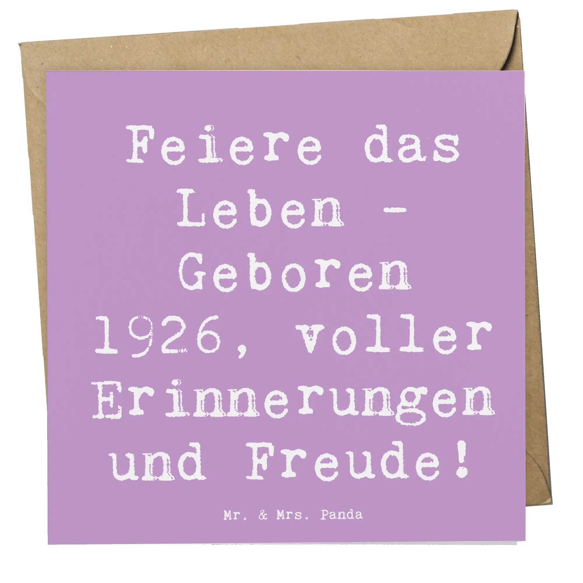 Mit dieser Karte aus der Geburtstagskollektion von Mr. & Mrs. Panda erwirbst du nicht nur ein Produkt, sondern ein Stück Lebensfreude! Ob zum 60., 70. oder 80. Geburtstag – die Karte ist ideal für jeden, der in 1926 das Licht der Welt erblickte. Sie ist das perfekte Accessoire, um diese einzigartigen Momente gebührend zu feiern und Erinnerungen zu schaffen, die ein Leben lang bleiben.
