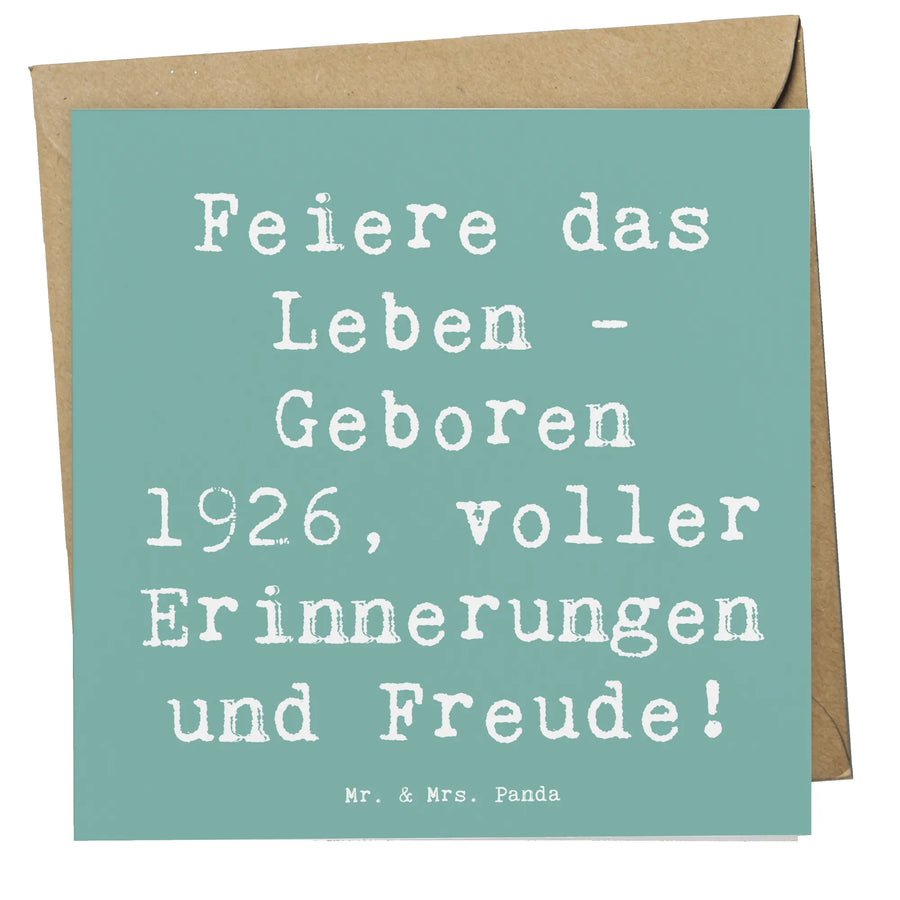 Die Deluxe Karte 1926 Geburtstag aus der Kollektion Geburtstag Geburtsjahr von Mr. & Mrs. Panda ist das perfekte Geschenk für alle, die einen besonderen Jubilar beschenken möchten. Egal, ob es sich um einen runden Geburtstag handelt oder einfach um eine Feier, diese Karte ist ein echter Hingucker und bringt Freude. Die Karte ist mit dem liebevollen Spruch „Feiere das Leben - Geboren 1926, voller Erinnerungen und Freude!“ versehen, der nicht nur die Geschichte des Geburtstagskindes feiert, sondern auch ein Gefühl von Nostalgie und Liebe vermittelt.