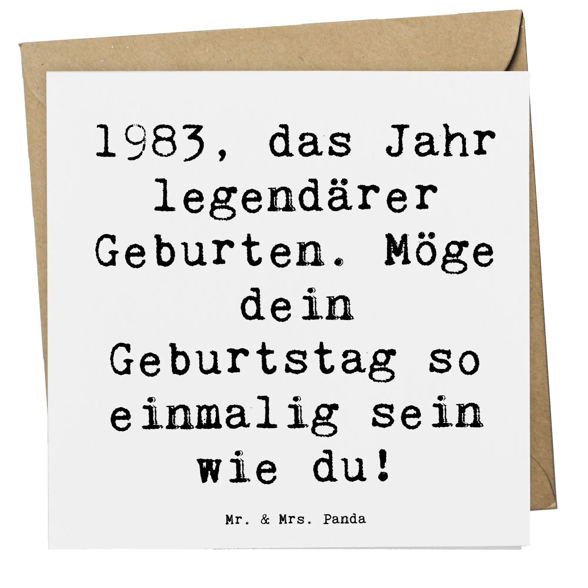 Das Motiv „1983, das Jahr legendärer Geburten. Möge dein Geburtstag so einmalig sein wie du!“, gekonnt von Mr. & Mrs. Panda gestaltet, sind ein tolles Highlight und bringen ein Lächeln ins Gesicht. Diese Karte ist perfekt für jeden feierlichen Anlass – sei es zum Geburtstag, Hochzeit, Jubiläum oder einfach nur, um jemandem eine Freude zu machen.