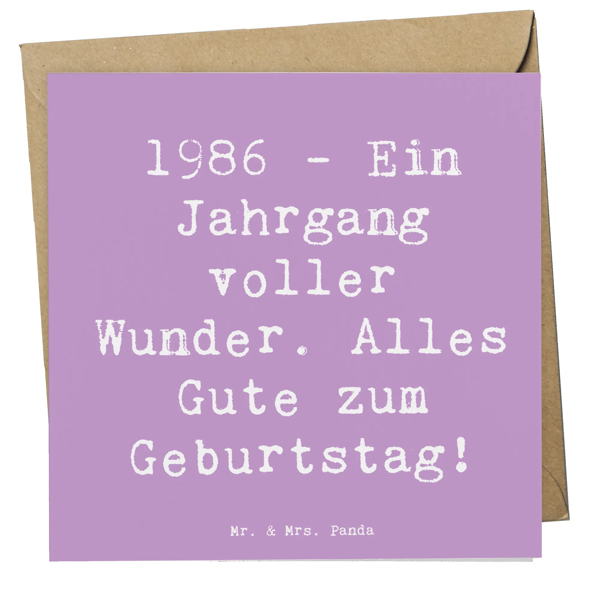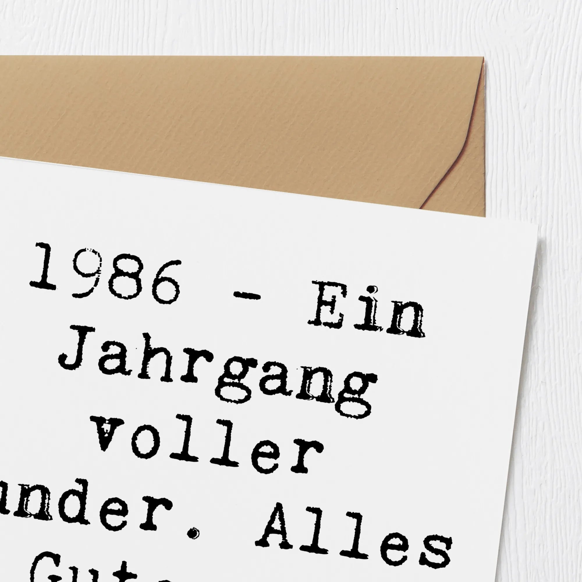 Die Deluxe Karte '1986 Geburtstag' aus der wunderbaren Geburtstagskollektion von Mr. & Mrs. Panda ist der perfekte Begleiter für jeden, der einen ganz besonderen Geburtstag feiern möchte! Diese hochwertig gestaltete Klappkarte begeistert sowohl mit ihrem ansprechenden Design als auch mit ihrem wichtigen Text: '1986 - Ein Jahrgang voller Wunder. Alles Gute zum Geburtstag!'.