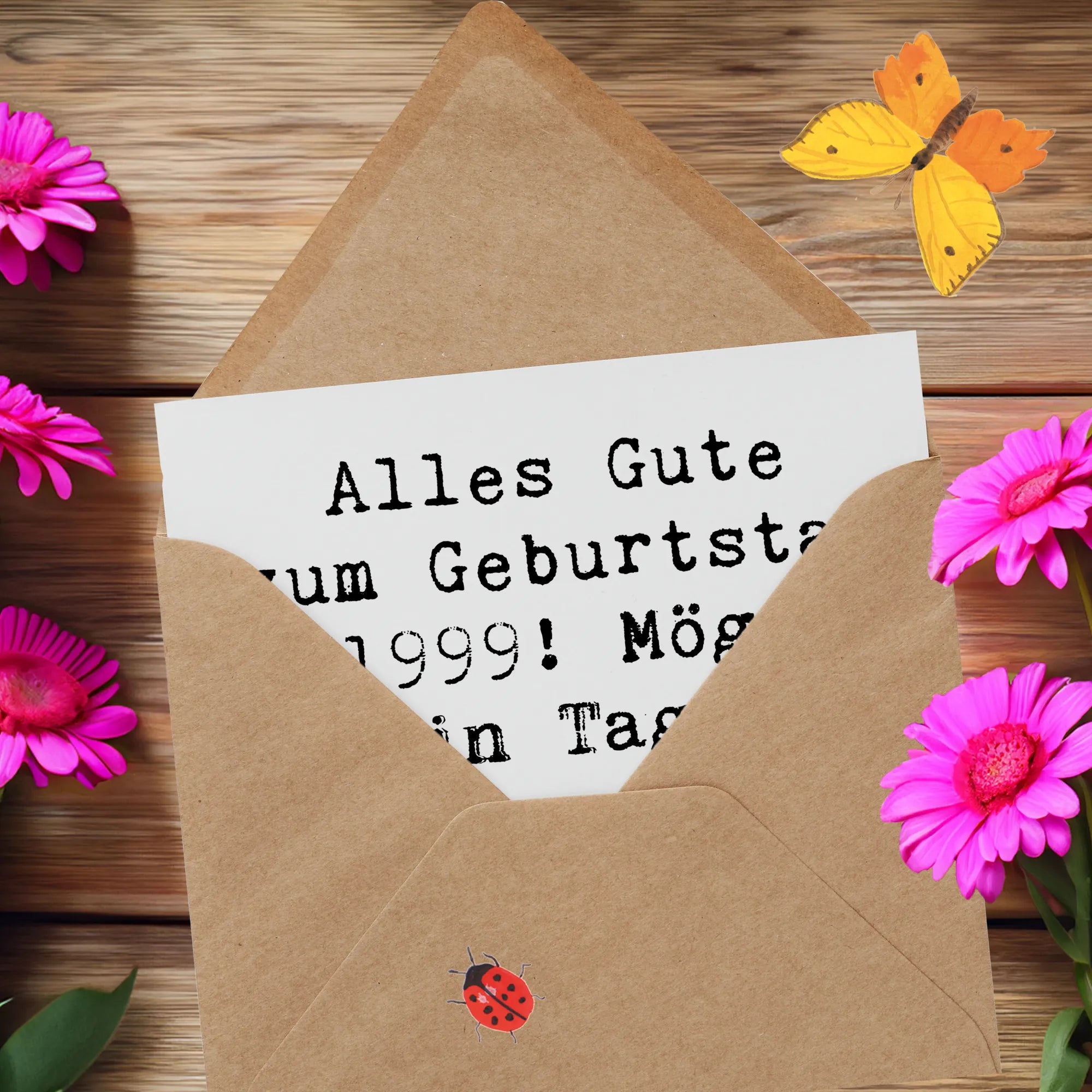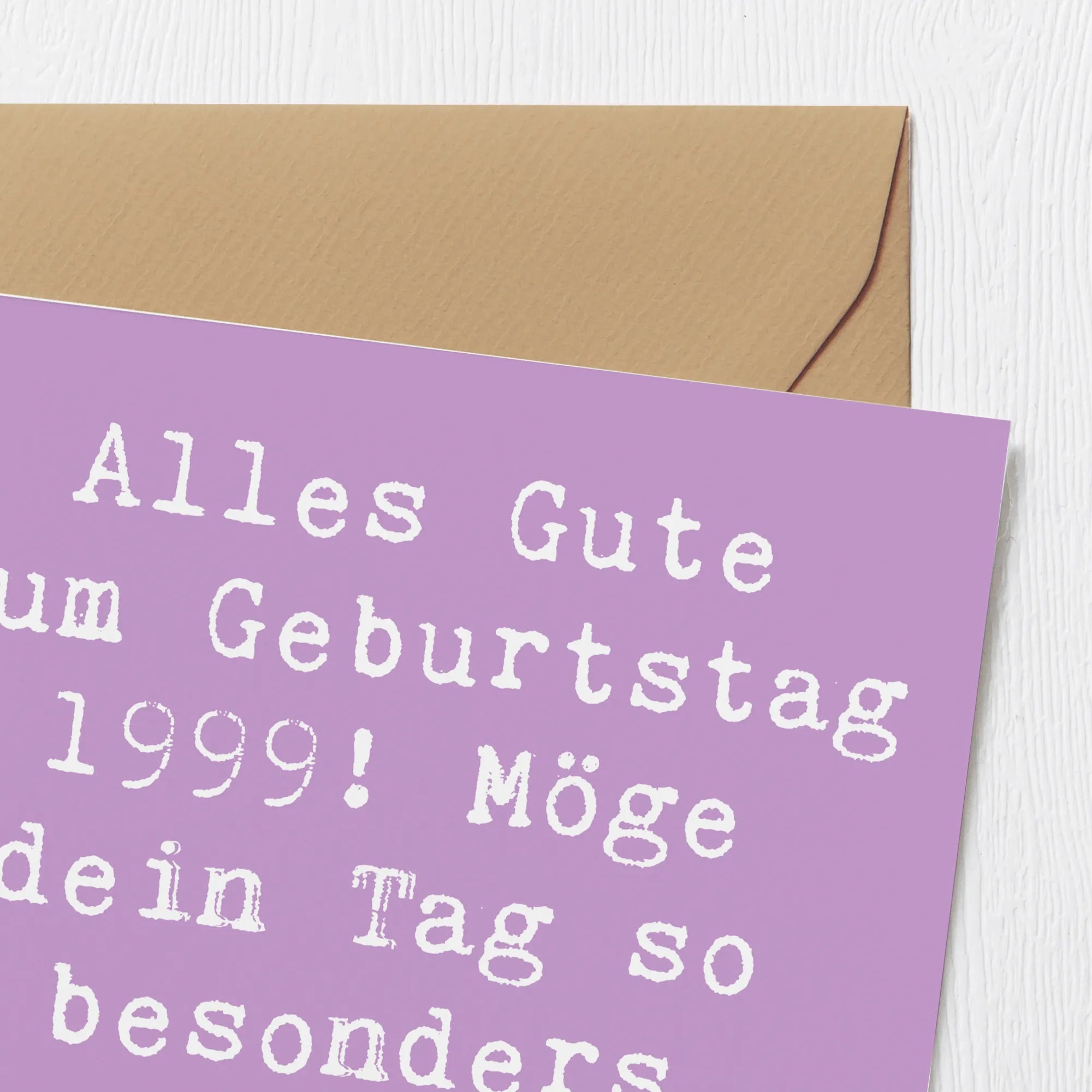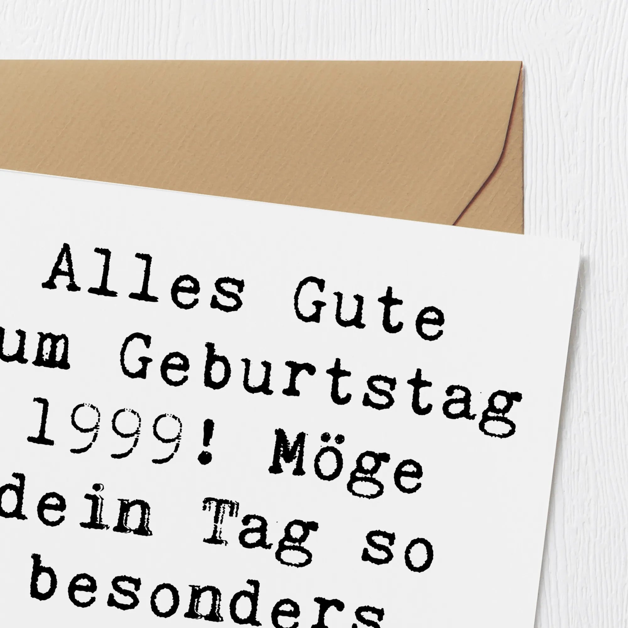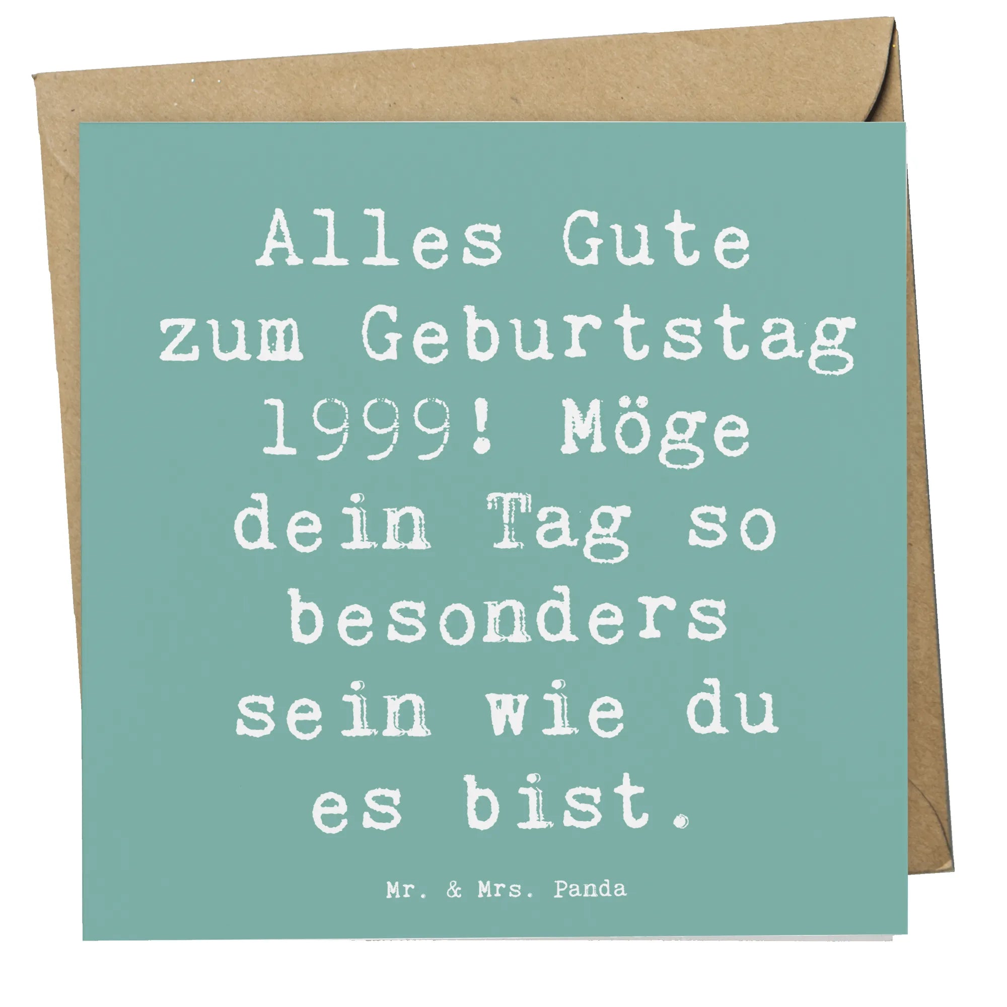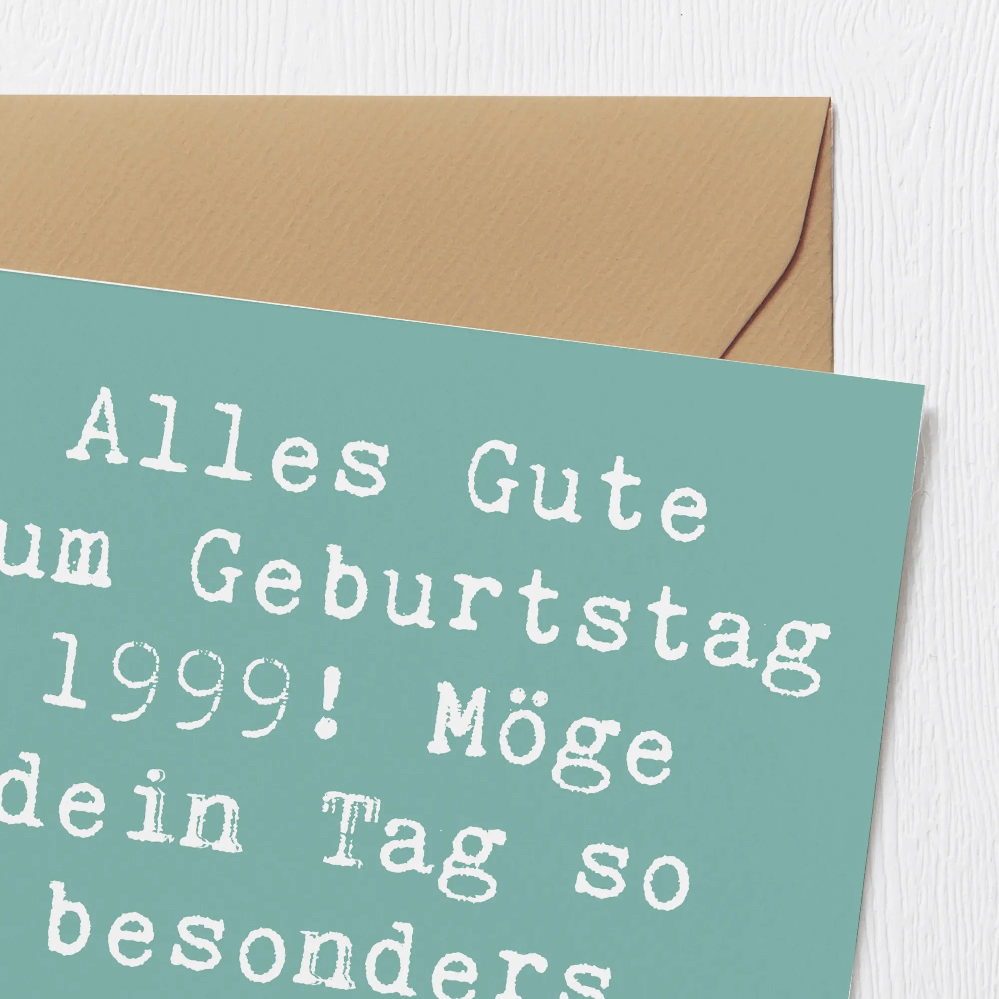 Entdecke die wunderschöne Deluxe Karte "Alles Gute zum Geburtstag 1999! Möge dein Tag so besonders sein wie du es bist." aus der einzigartigen Geburtstag Geburtsjahr-Kollektion von Mr. & Mrs. Panda. Diese hochwertige Grußkarte, gefertigt aus edlem 300 Gramm Karton, ist nicht nur ein schöner Blickfang, sondern auch eine liebevolle Möglichkeit, um jemandem zum Geburtstag zu gratulieren.