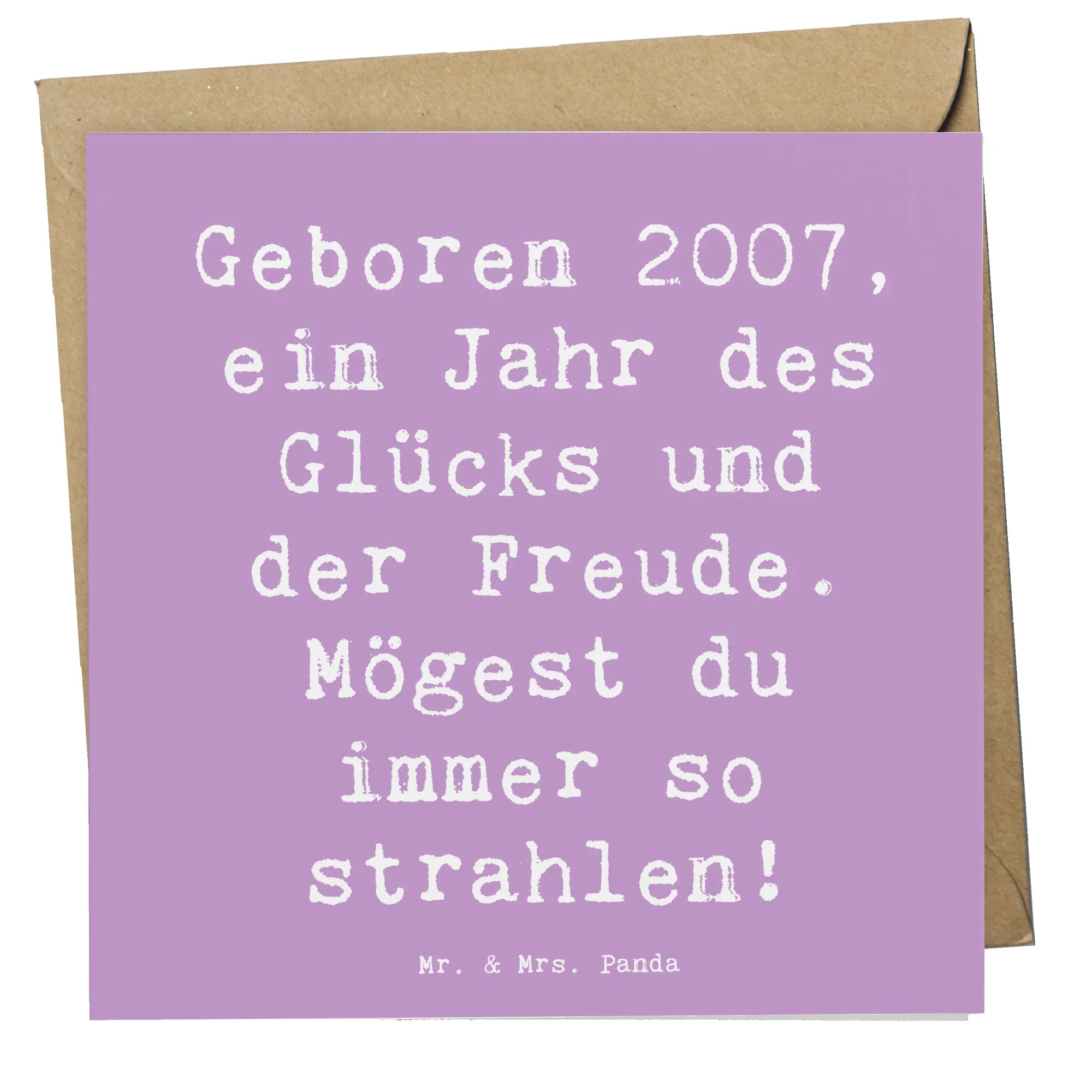 Lass die Freude des Geburtsjahres 2007 in dein Geschenk einfließen und mache jeden besonderen Tag noch strahlender! Unsere Geburtstags-Kollektion von Mr. & Mrs. Panda ist liebevoll gestaltet, um Geschichten zu erzählen und Erinnerungen zu kreieren. Mache deinen geliebten Menschen eine Freude und überrasche sie mit einer Karte, die von Herzen kommt - sie ist mehr als nur ein Stück Papier, sie ist ein warmes Stück Erinnerung und Freude.