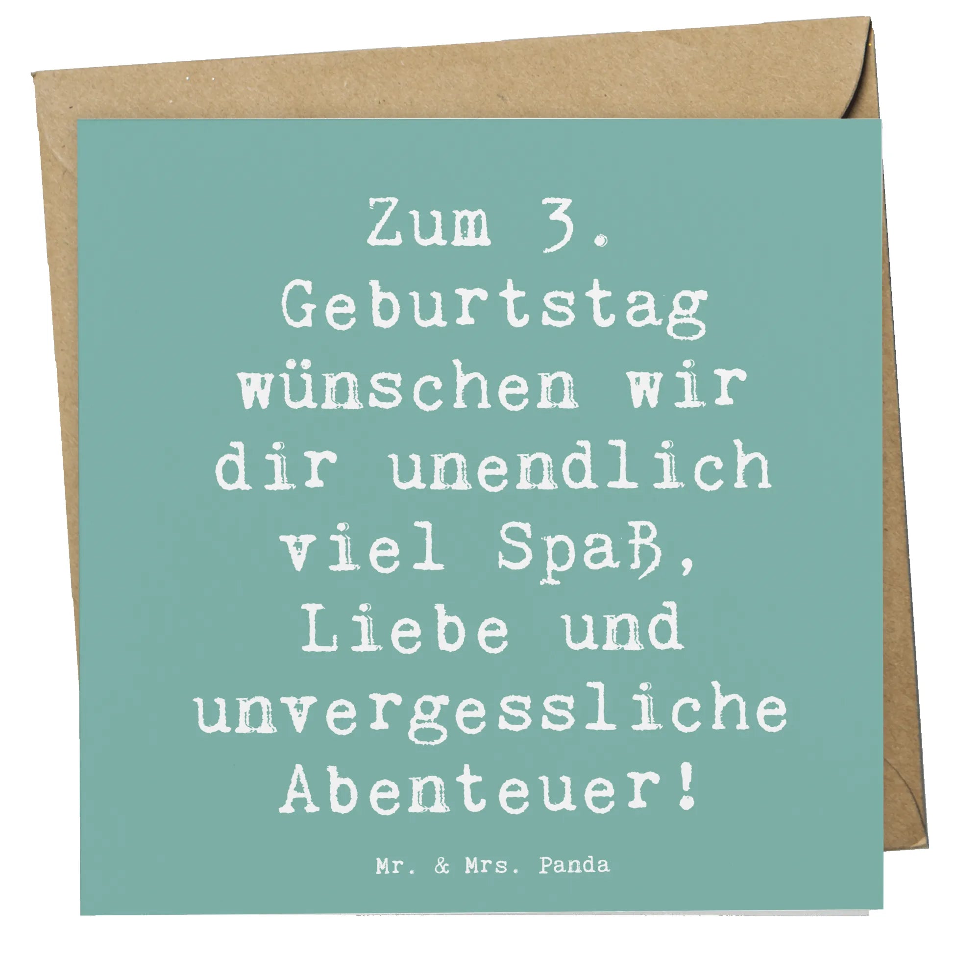 Du suchst nach einem Geschenk, das in Erinnerung bleibt? Dann ist diese Grußkarte genau das Richtige! Verschenke Freude, Liebe und unvergessliche Abenteuer mit der praktischen Karte zum 3. Geburtstag aus der Geburtstagskollektion von Mr. & Mrs. Panda.