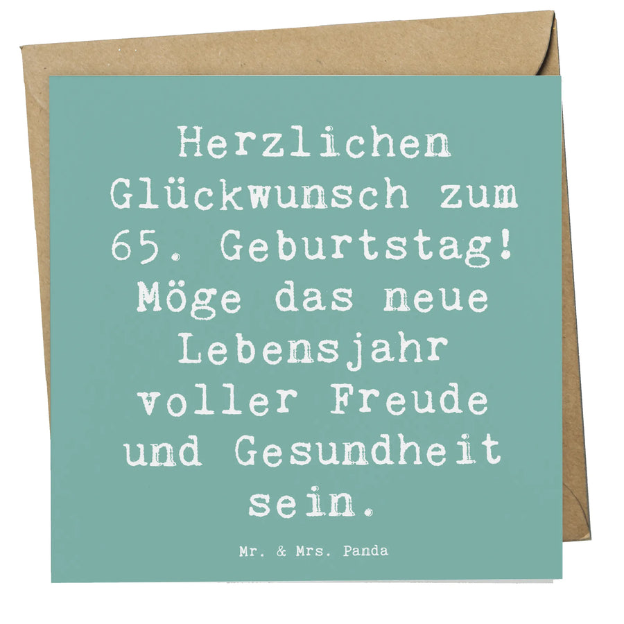 Ob für ein Familienmitglied, einen Freund oder einen Kollegen - diese Karte ist ideal für jeden, der seinen 65. Geburtstag feiert. In der Sammlung Geburtstag Alter findest du die perfekte Ergänzung zu jedem Geburtstagsgeschenk und machst diesen Tag unvergesslich. Die liebevollen, handgezeichneten Aquarellmotive von Mrs. Panda bringen Freude und Lebensfreude ins Spiel.