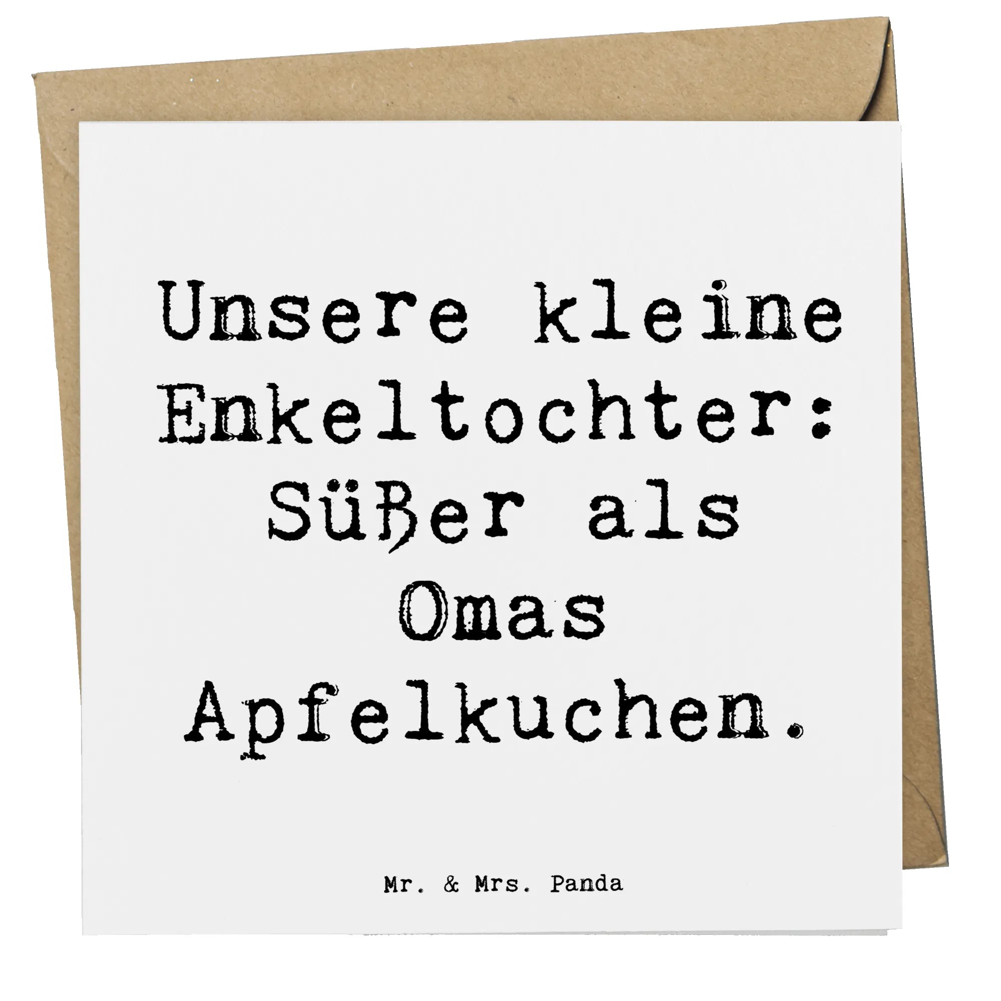 Die Deluxe Karte für die Enkeltochter von Mr. & Mrs. Panda ist die perfekte Geschenkidee für Großeltern, die ihre Enkelkinder lieben und schätzen. Mit dem zauberhaften Spruch "Unsere kleine Enkeltochter: Süßer als Omas Apfelkuchen." ist diese hochwertige Grußkarte ein kleiner Liebesbotschafter für besondere Anlässe. Egal ob als Geburtstagskarte, Hochzeitskarte oder einfach nur, um Danke zu sagen – mit dieser Karte zeigst Du Deiner Enkeltochter, wie viel sie Dir bedeutet.