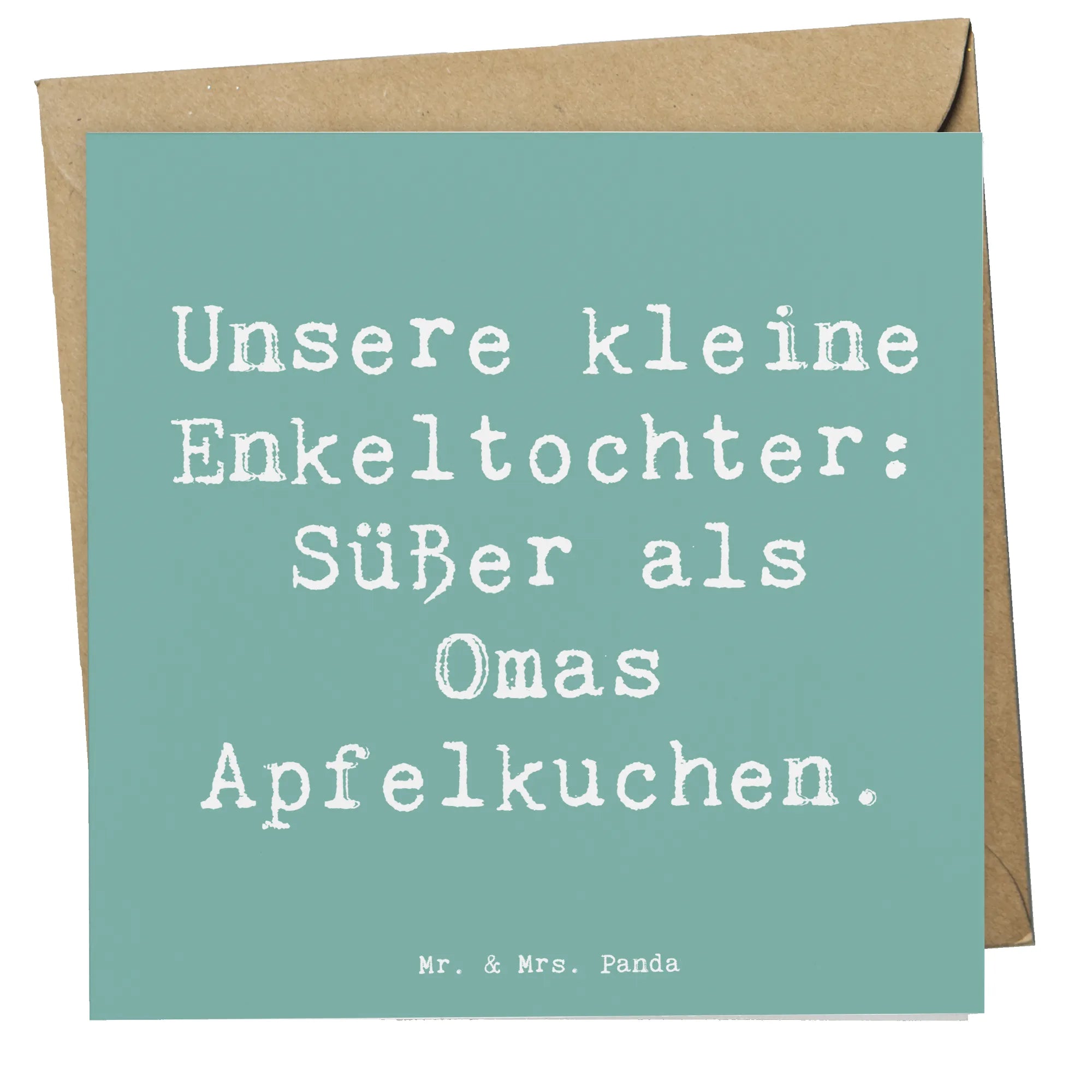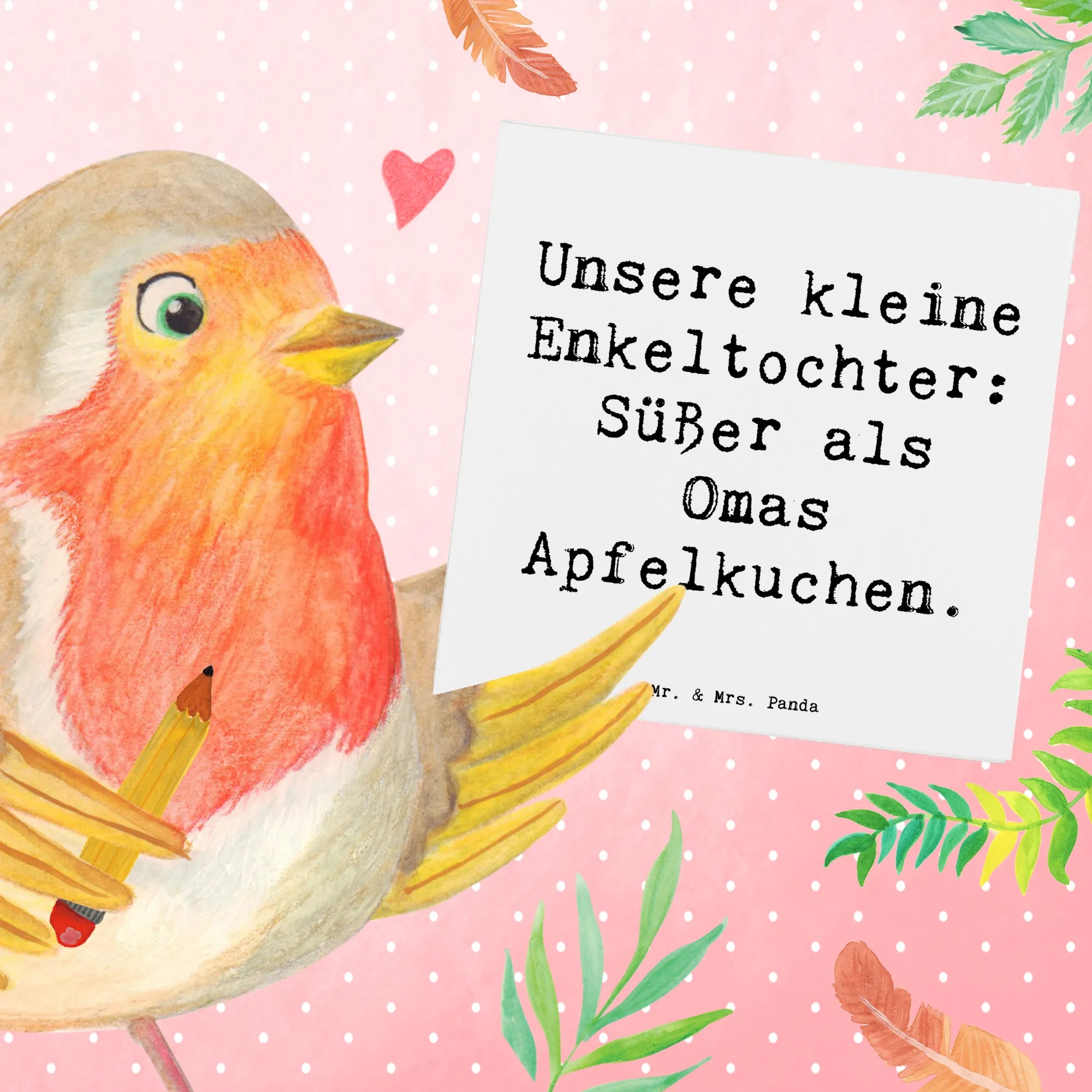 Die Deluxe Karte "Unsere kleine Enkeltochter: Süßer als Omas Apfelkuchen" von Mr. & Mrs. Panda ist das perfekte Geschenk für Großeltern, die ihre geliebte Enkeltochter feiern möchten. Diese hochwertige, quadratische Grußkarte hat eine edle Optik und versprüht dank ihrer liebevollen Gestaltung sofort gute Laune.