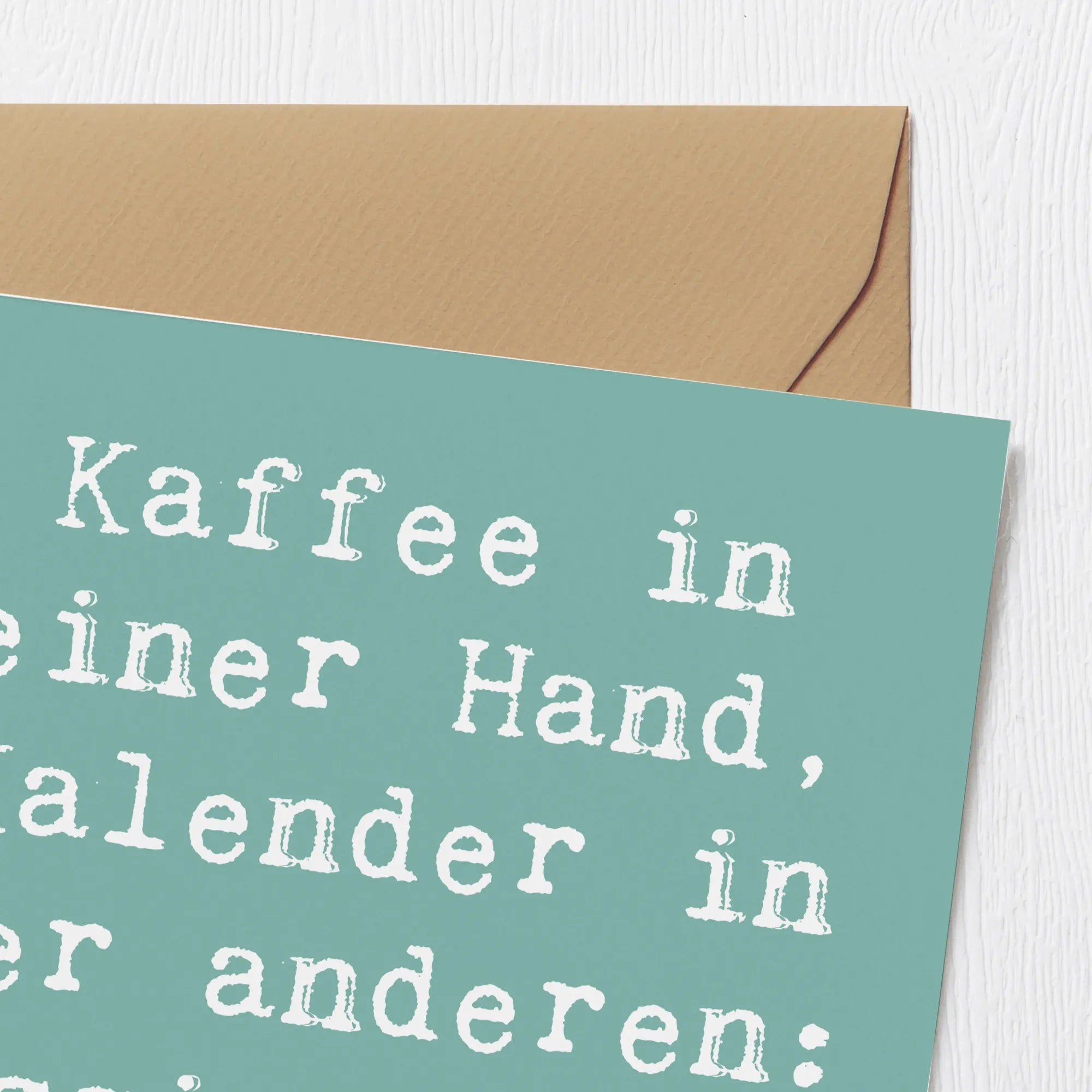 Deluxe Karte Spruch Kaffee in einer Hand, Kalender in der anderen: Assistentin im Einsatz! Hochwertige Klappkarte, Hochzeitskarte, Glückwunschkarte, Karte, Grußkarte, Hochwertige Grußkarte, Geburtstagskarte, Einladungskarte, Klappkarte, Beruf, Ausbildung, Jubiläum, Abschied, Rente, Kollege, Kollegin, Geschenk, Schenken, Arbeitskollege, Mitarbeiter, Firma, Danke, Dankeschön