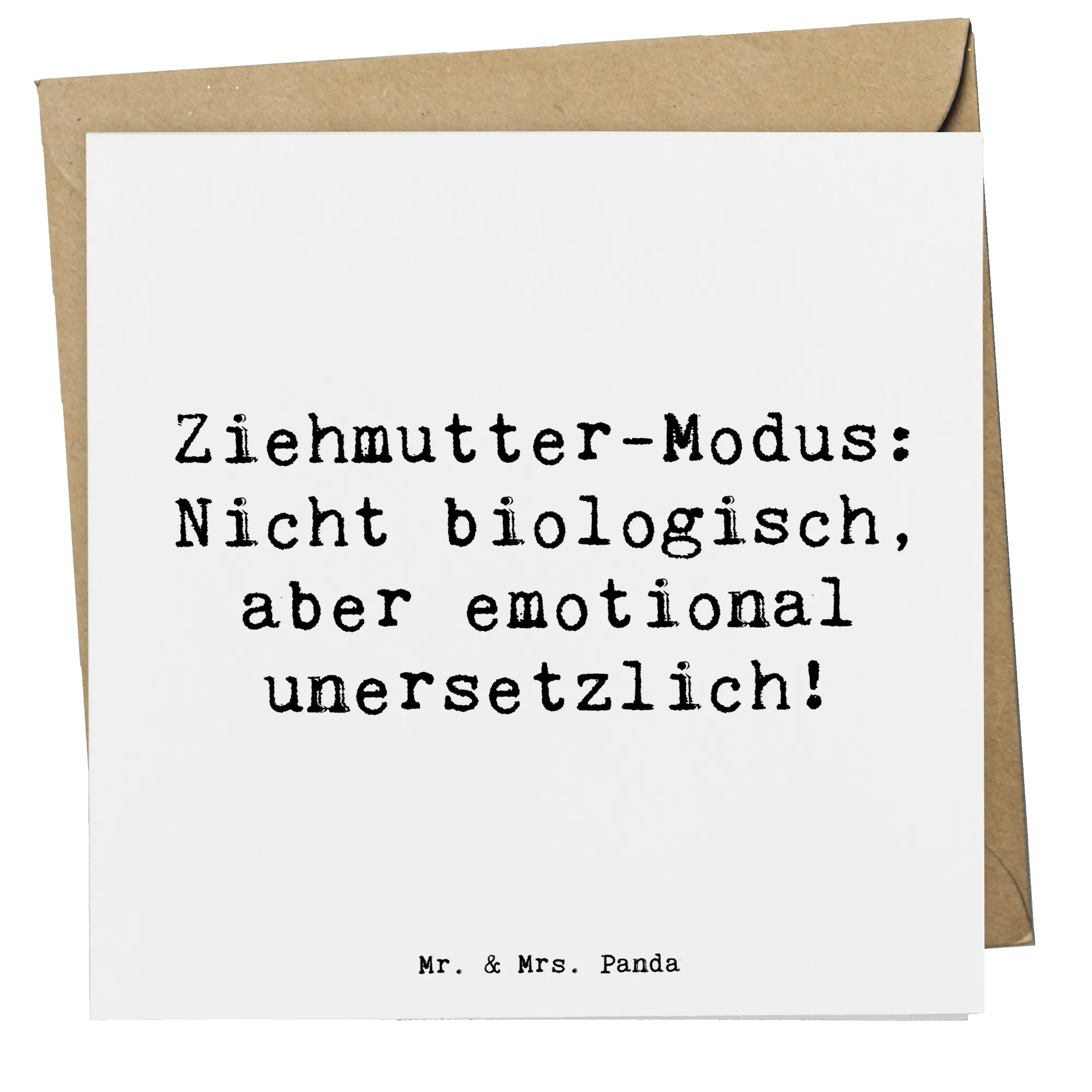 Ideal für feierliche Anlässe, kann diese Karte nicht nur als Geburtstagskarte oder Hochzeitskarte genutzt werden, sondern auch, um einer Ziehmutter einfach mal "Danke" zu sagen. Mit einem sofort wirkenden Slogan, der das Herz jeder Ziehmutter höher schlagen lässt: "Ziehmutter-Modus: Nicht biologisch, aber emotional unersetzlich!" ist die Karte alles andere als gewöhnlich.