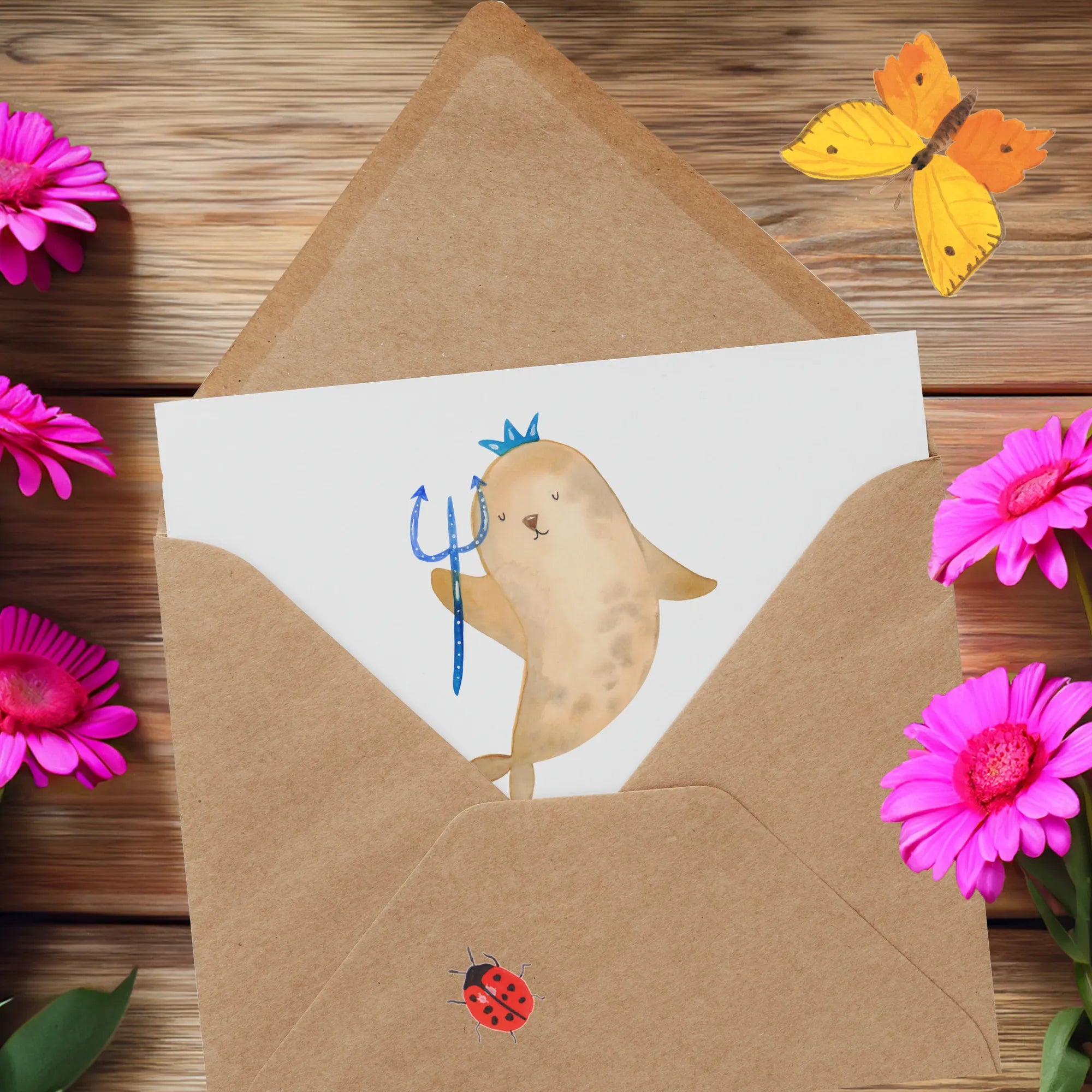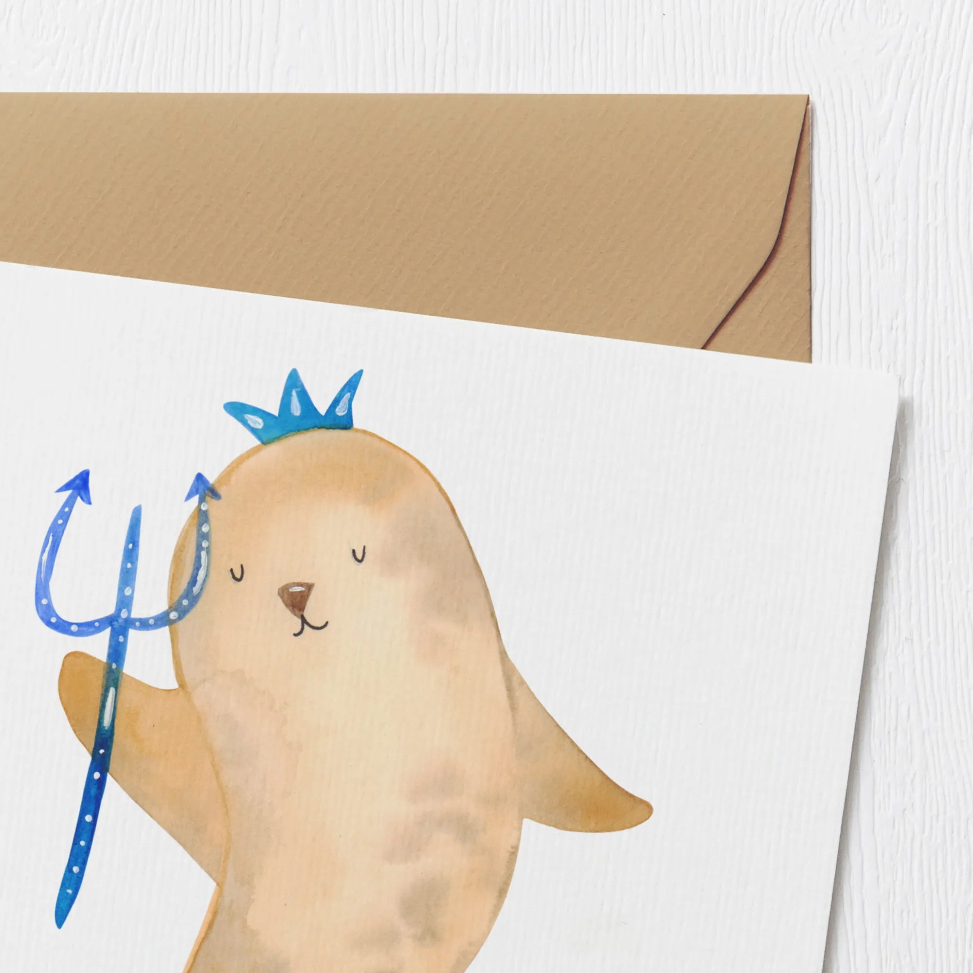 Gefertigt aus edlem Karton, zeigt die Karte eine wunderschön handgezeichnete Robbe mit einer Krone und einem Zepter - eine wahre Königin des Wassers. Sie symbolisiert die lebensfrohe und ungewöhnliche Art von Wassermännern. Auf der matt glänzenden Innenseite kannst Du Deine persönlichen Worte hinterlassen und damit Deine Wertschätzung zeigen.