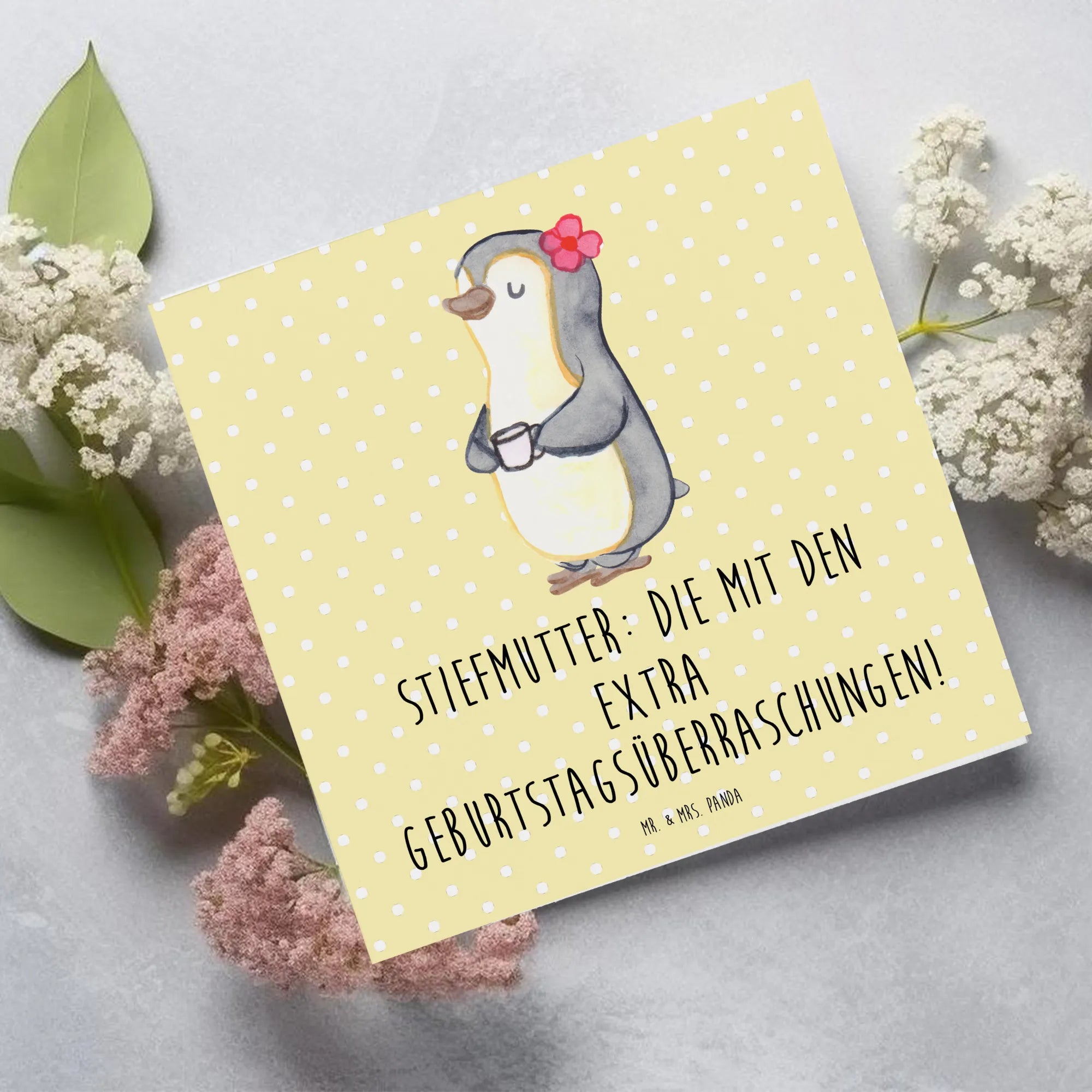 Die Deluxe Karte mit dem liebevollen Motiv 'Stiefmutter: Die mit den extra Geburtstagsüberraschungen!' von Mr. & Mrs. Panda ist das perfekte Geschenk für alle, die eine Stiefmutter haben oder selbst eine sind. Diese besondere Karte gehört zur Kollektion Familie & Verwandte und ist nicht nur eine herzliche Geste, sondern auch eine wunderbare Möglichkeit, die einzigartigen Verbindungen innerhalb einer Patchwork-Familie zu würdigen.
