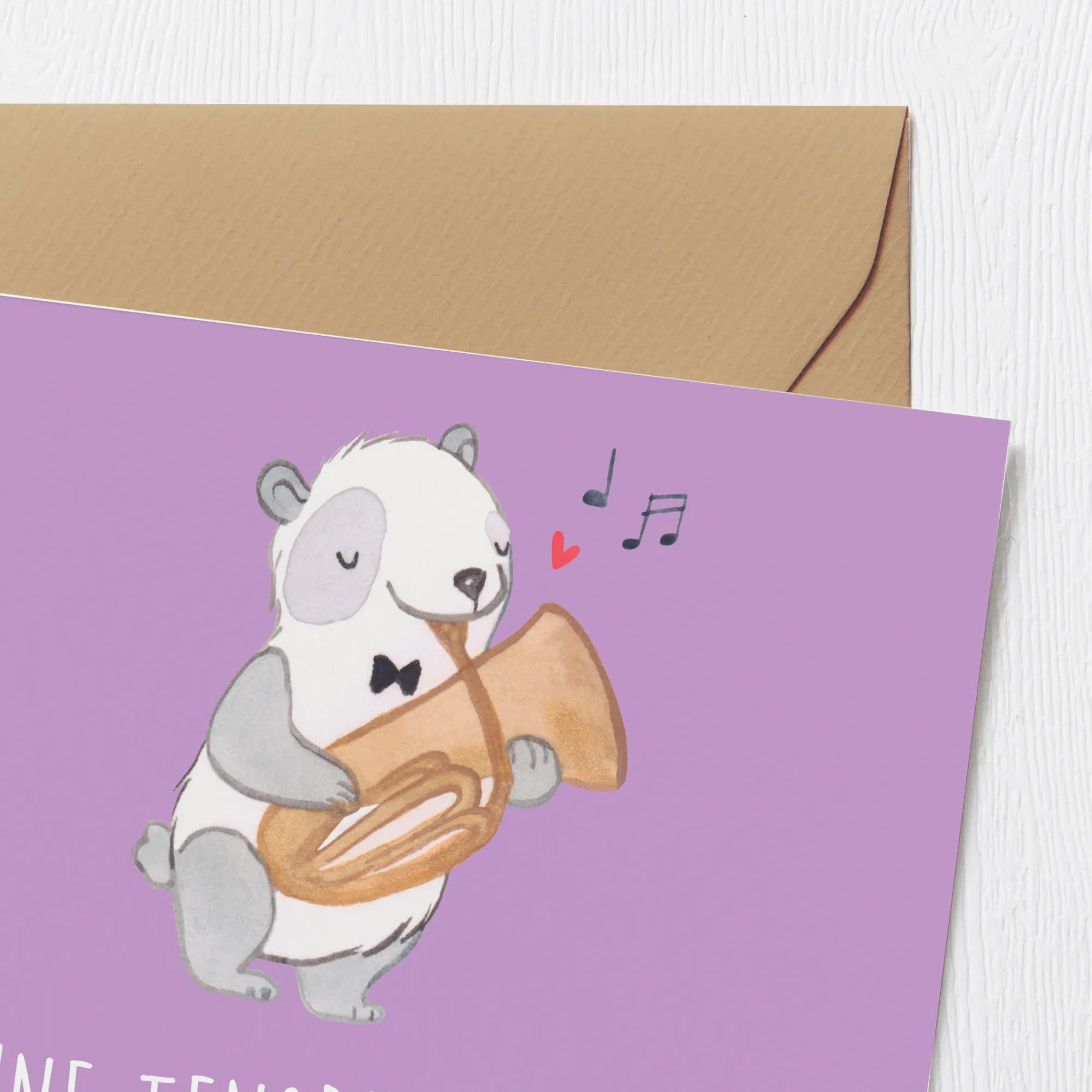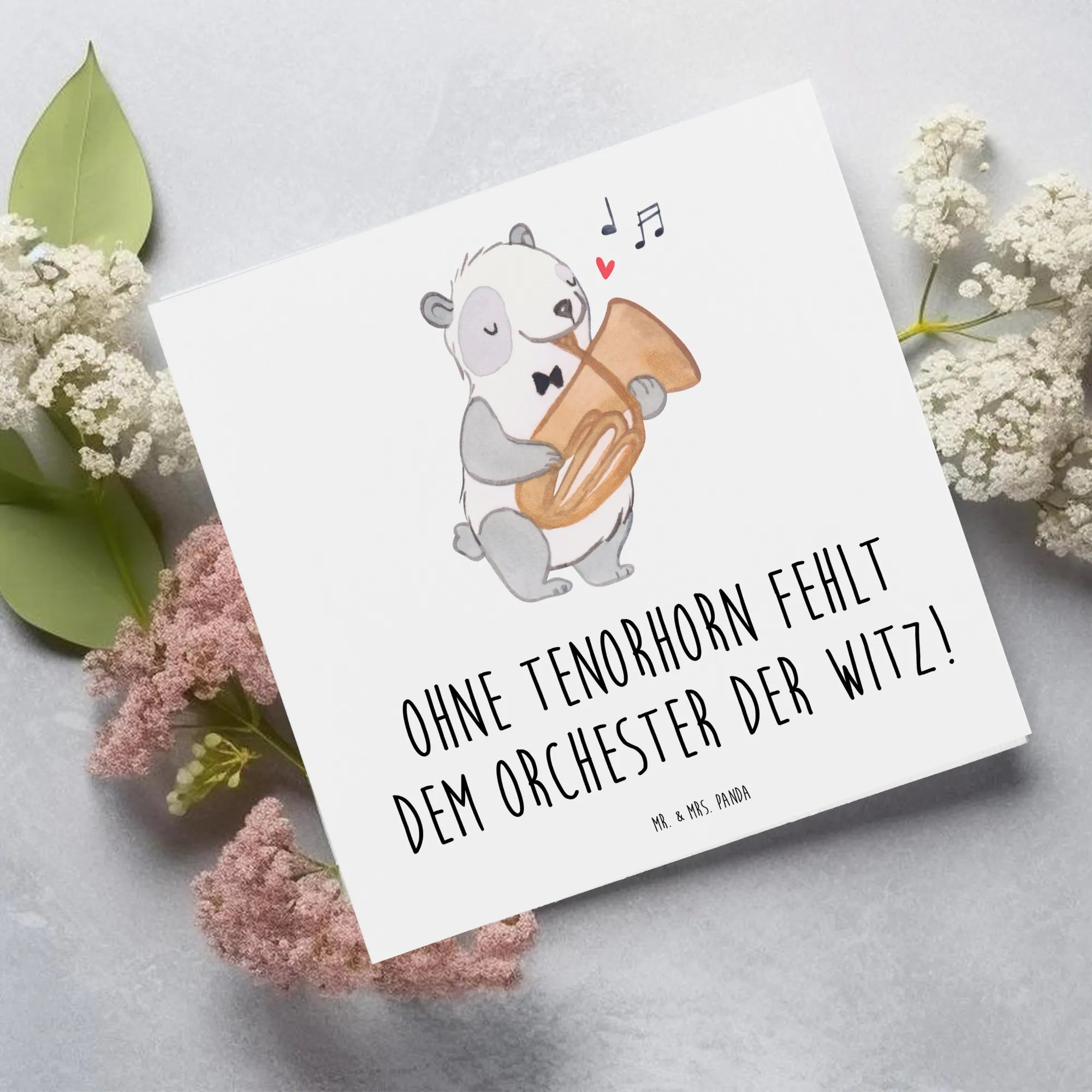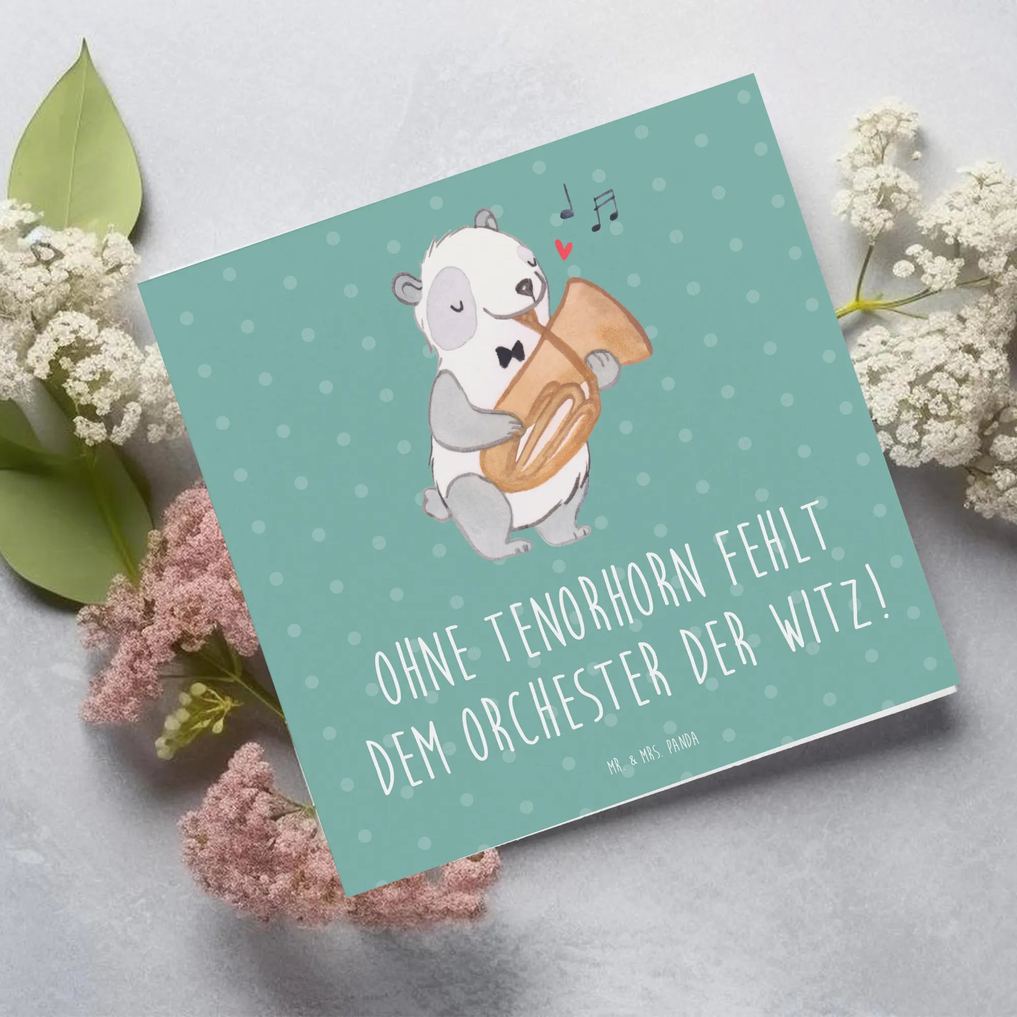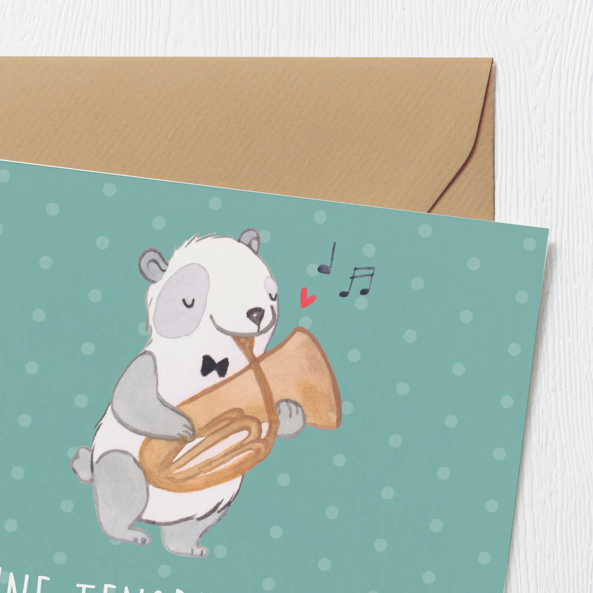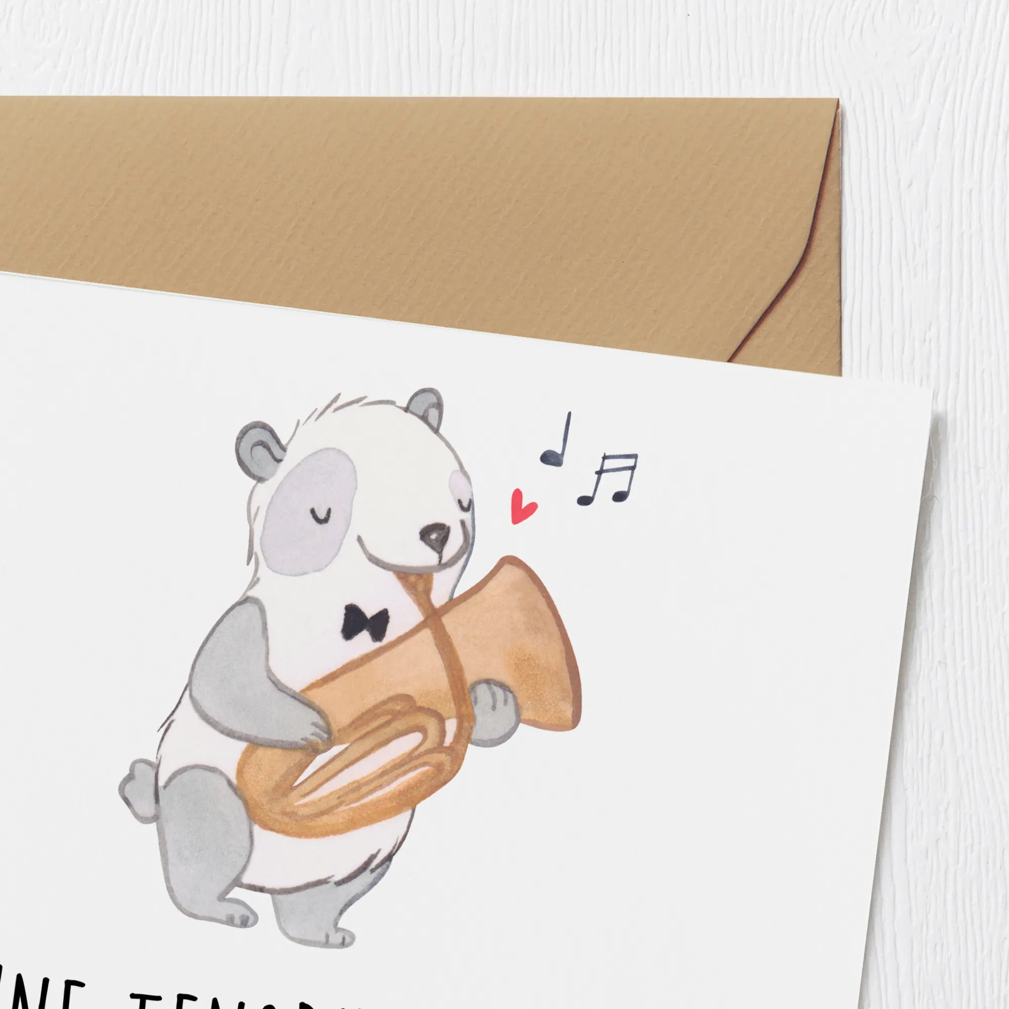 Die Deluxe Karte mit dem Motiv Tenorhorn von Mr. & Mrs. Panda ist das perfekte Geschenk für alle Musikliebhaber und Musiker. Mit ihrem liebevollen Design und dem humorvollen Spruch "Ohne Tenorhorn fehlt dem Orchester der Witz!" bringt sie Freude in jede Botschaft.