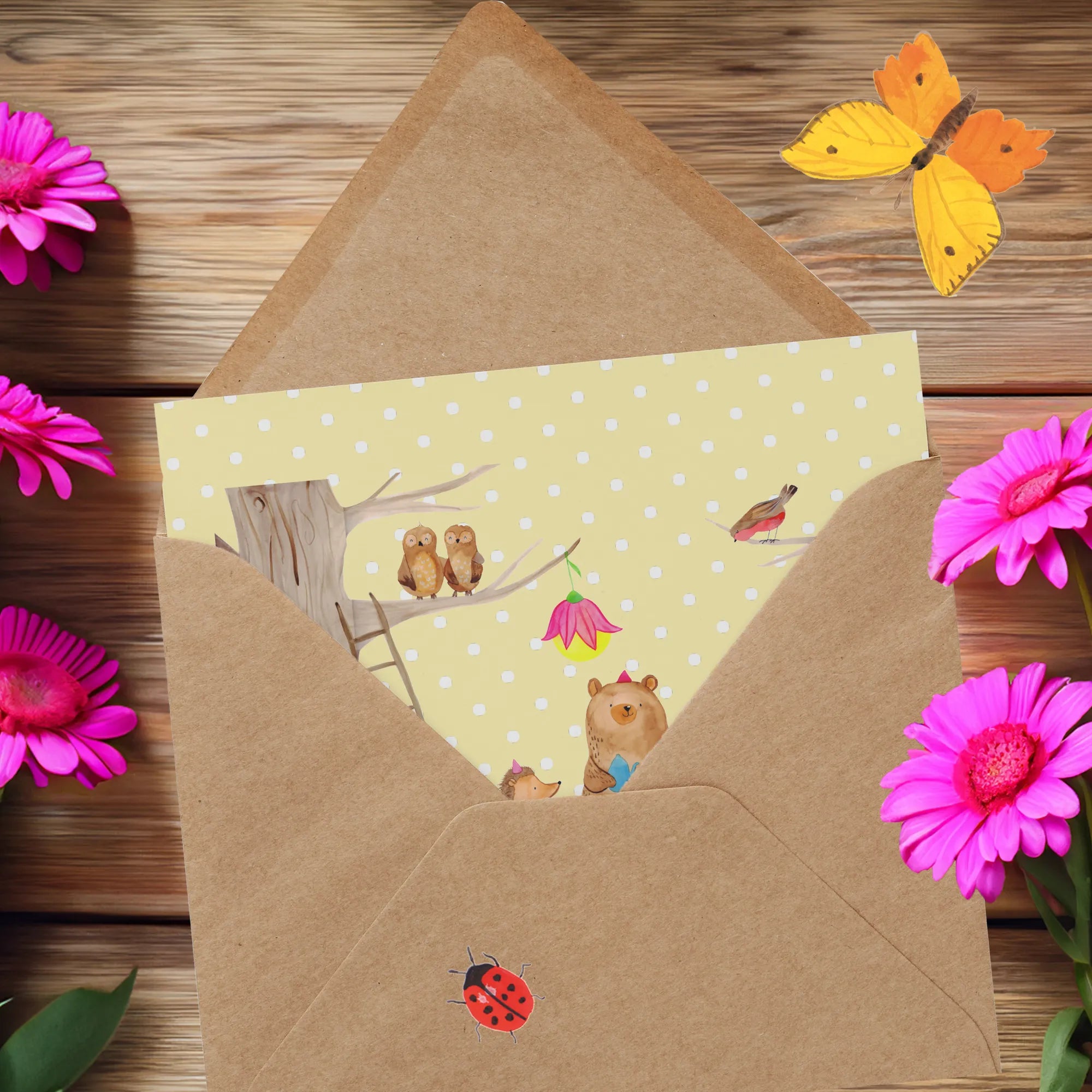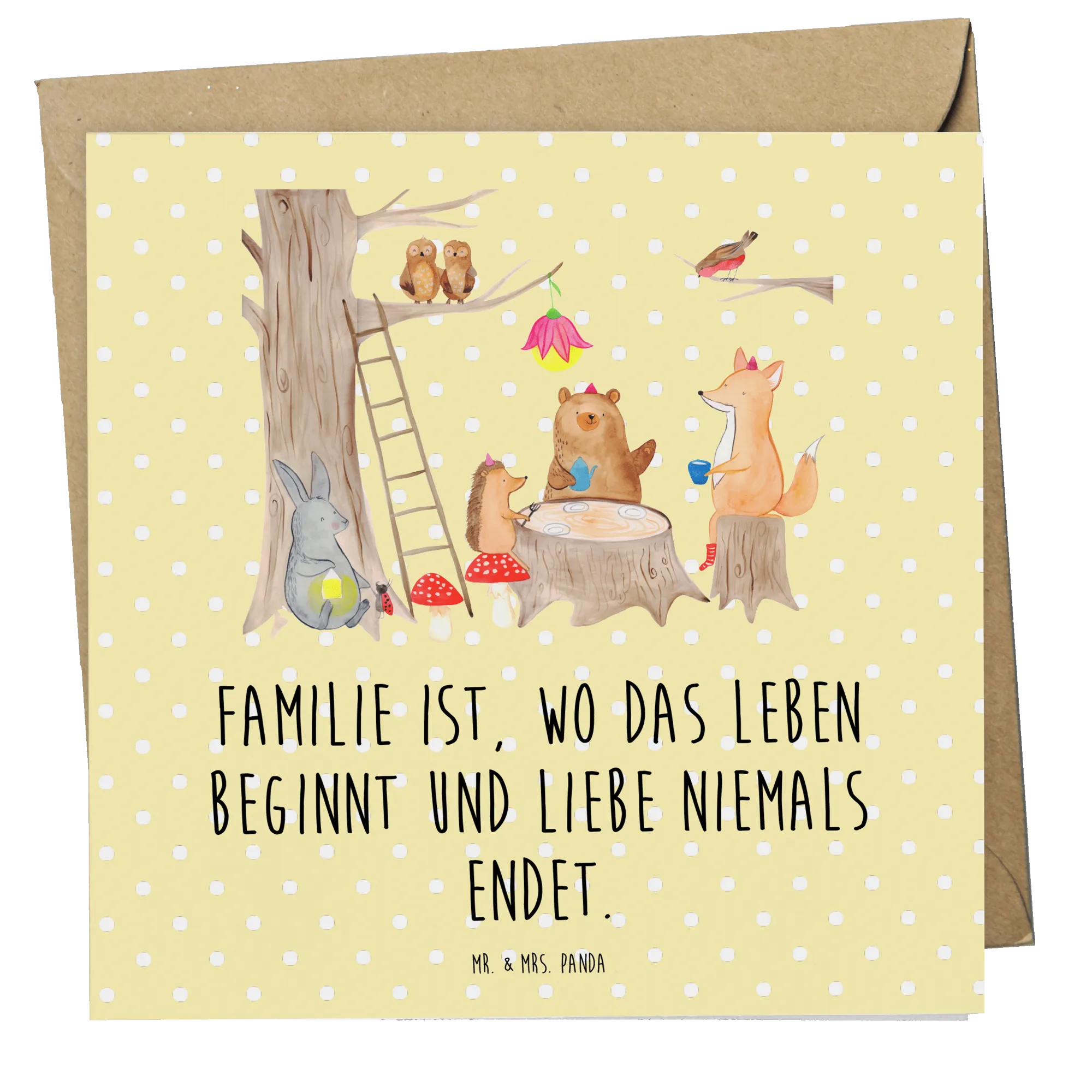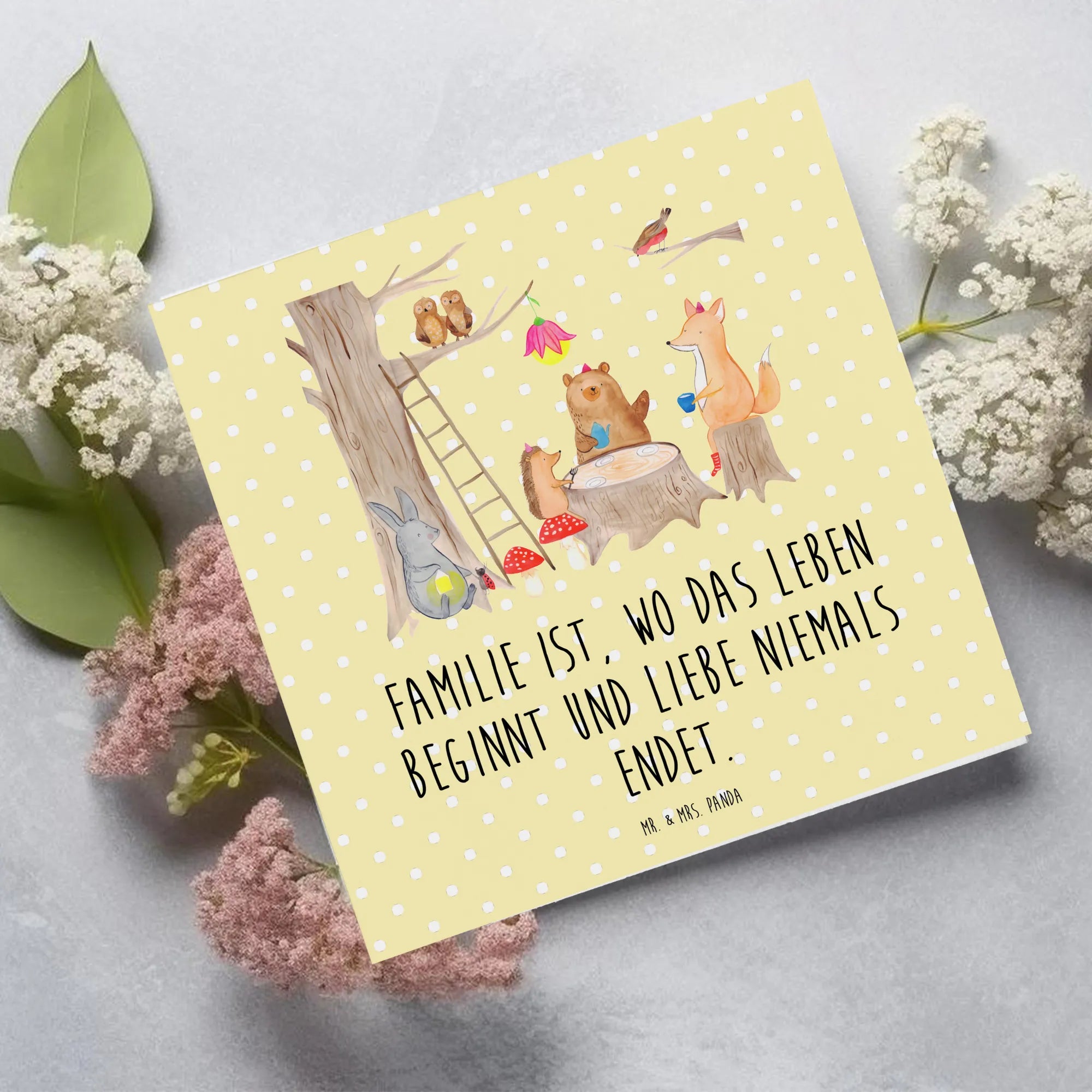 Verschenke ein Lächeln und lass die Waldtiere von Mr. & Mrs. Panda für dich sprechen. Diese Karte ist perfekt für Menschen, die das Besondere suchen und ihre Liebsten mit einem handgezeichneten Kunstwerk überraschen möchten. 🧺🌲