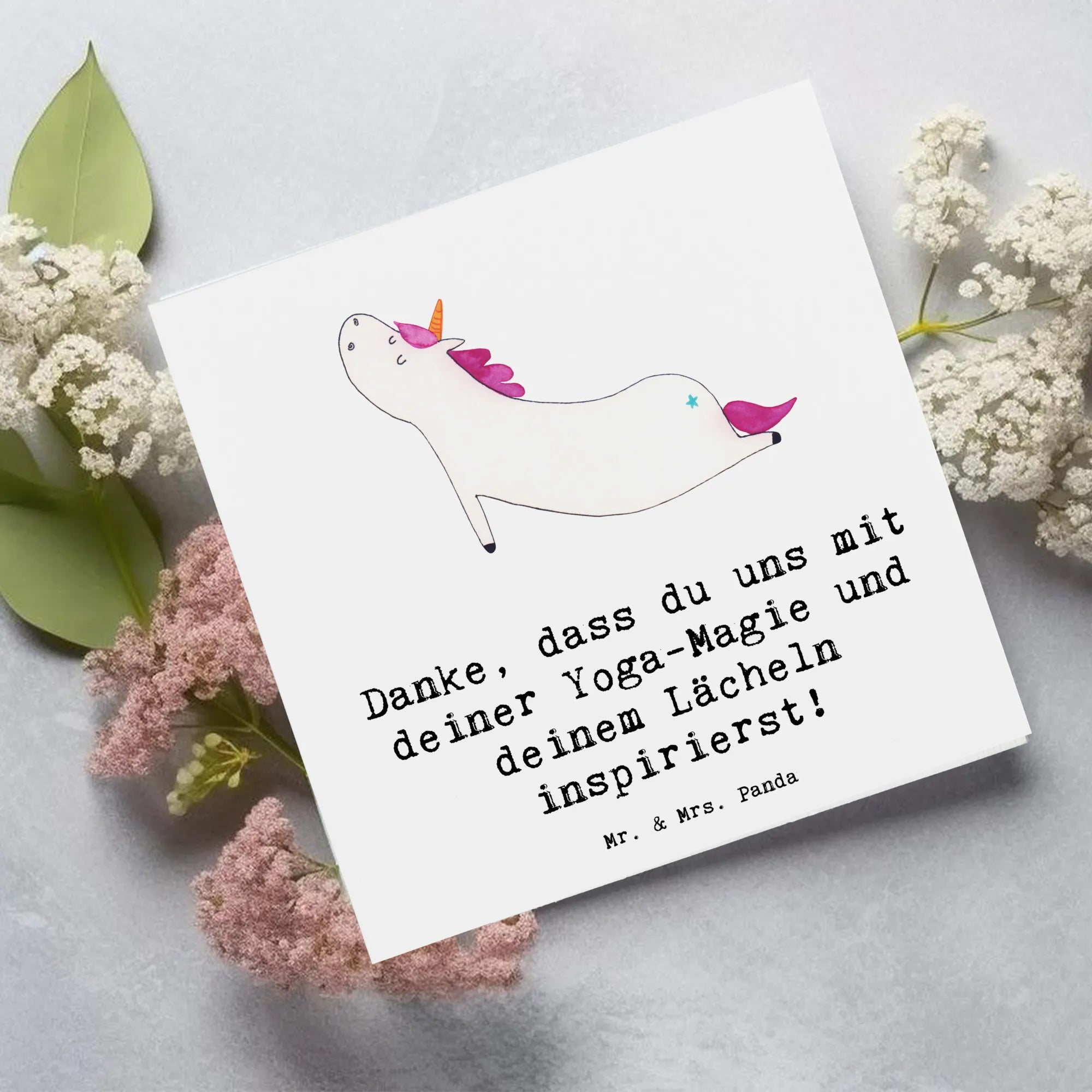 Das bezaubernde Motiv zeigt eine inspirierende Yoga-Szene, ergänzt durch den liebevollen Slogan: "Danke, dass du uns mit deiner Yoga-Magie und deinem Lächeln inspirierst!" Diese Karte ist ideal für verschiedene Anlässe, sei es als Dankeschön, Abschiedsgeschenk oder einfach um deiner Trainerin zu zeigen, wie sehr du ihre Unterstützung schätzt. Sie ist perfekt für Geburtstage, Jubiläen oder als besondere Geste der Anerkennung.