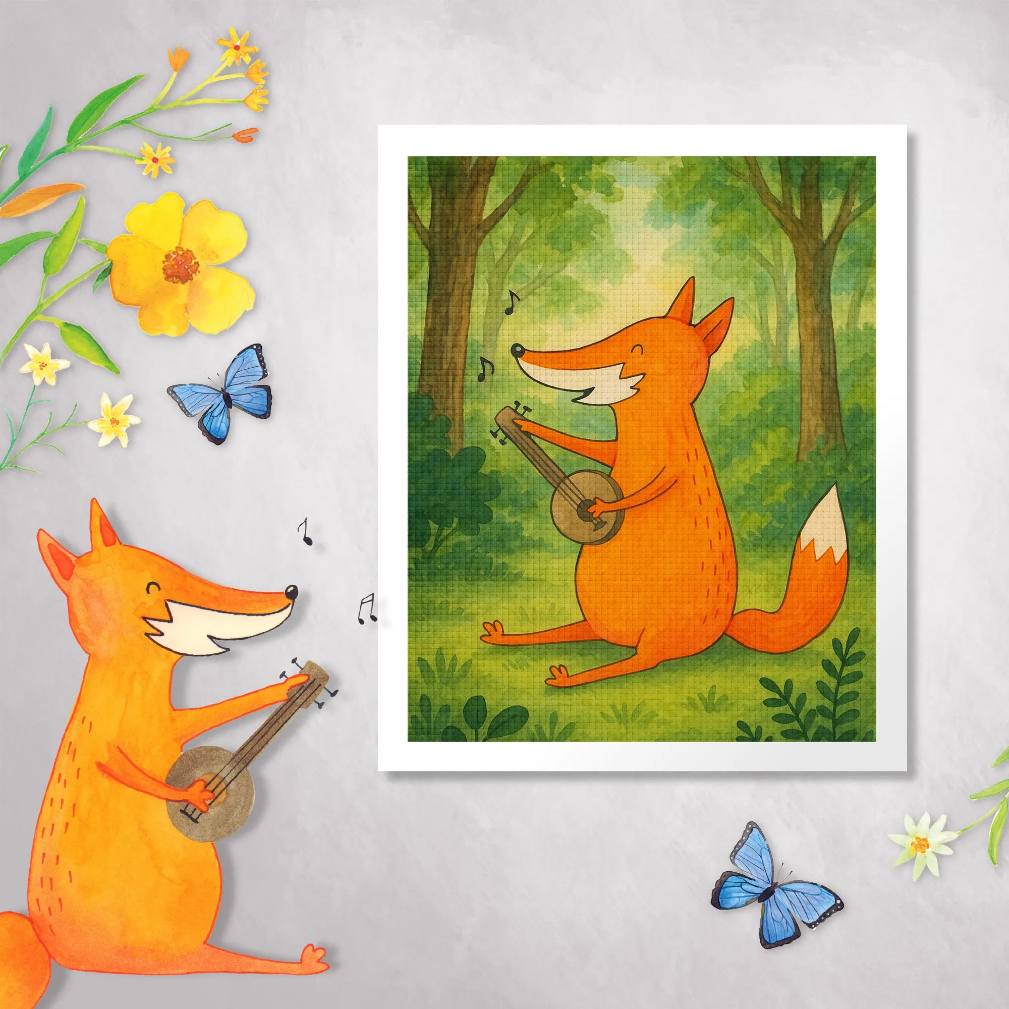 Fuchs mit Akustik Gitarre – Geschenk für Gitarrenspieler