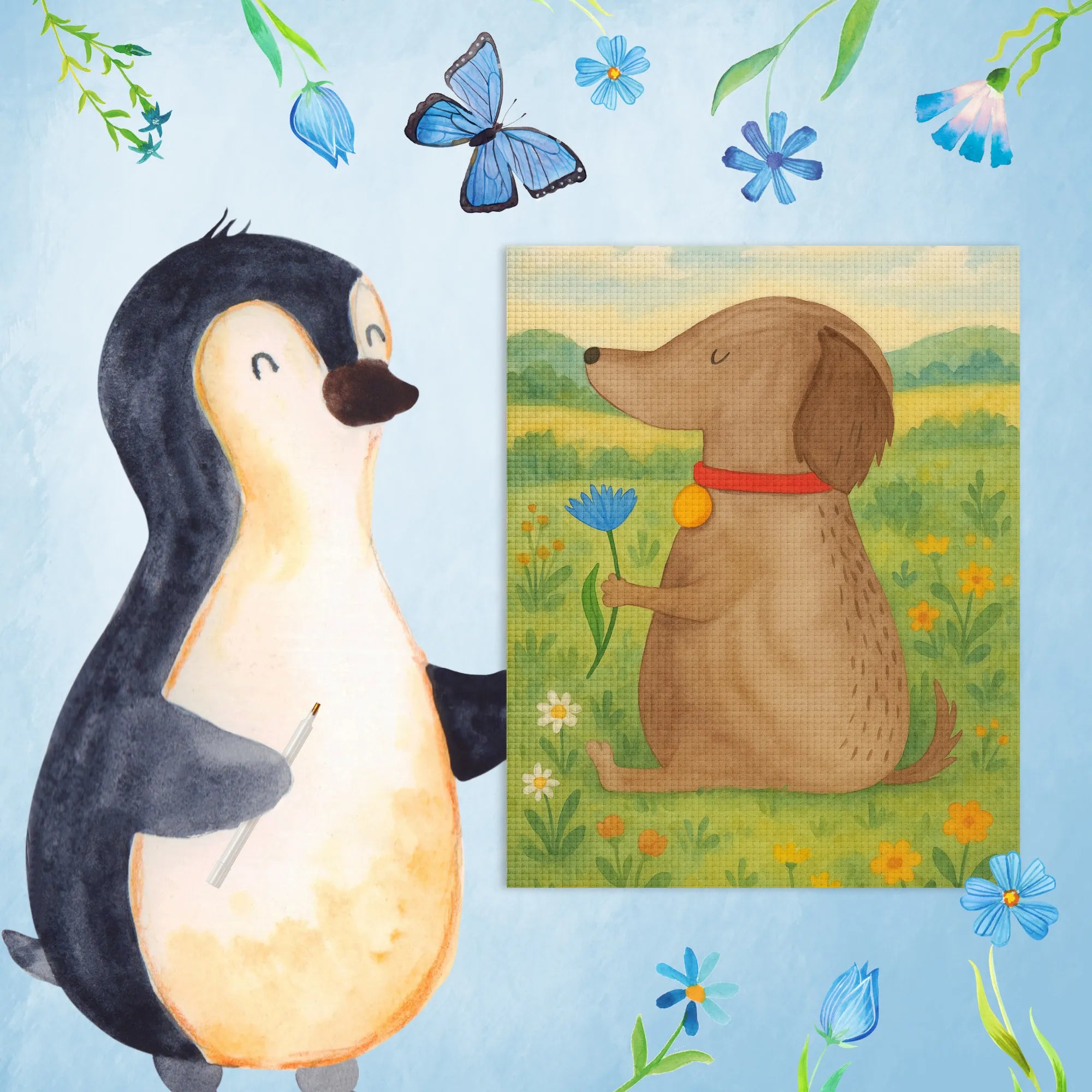 Diamond Painting Hund Blume Design - Ohne Rahmen