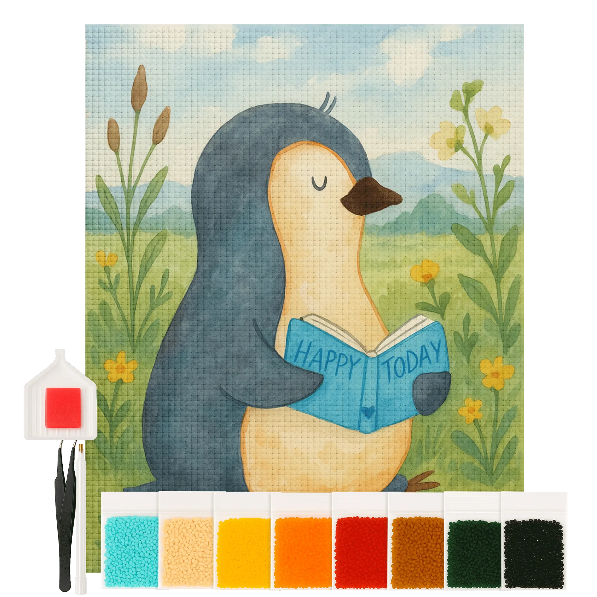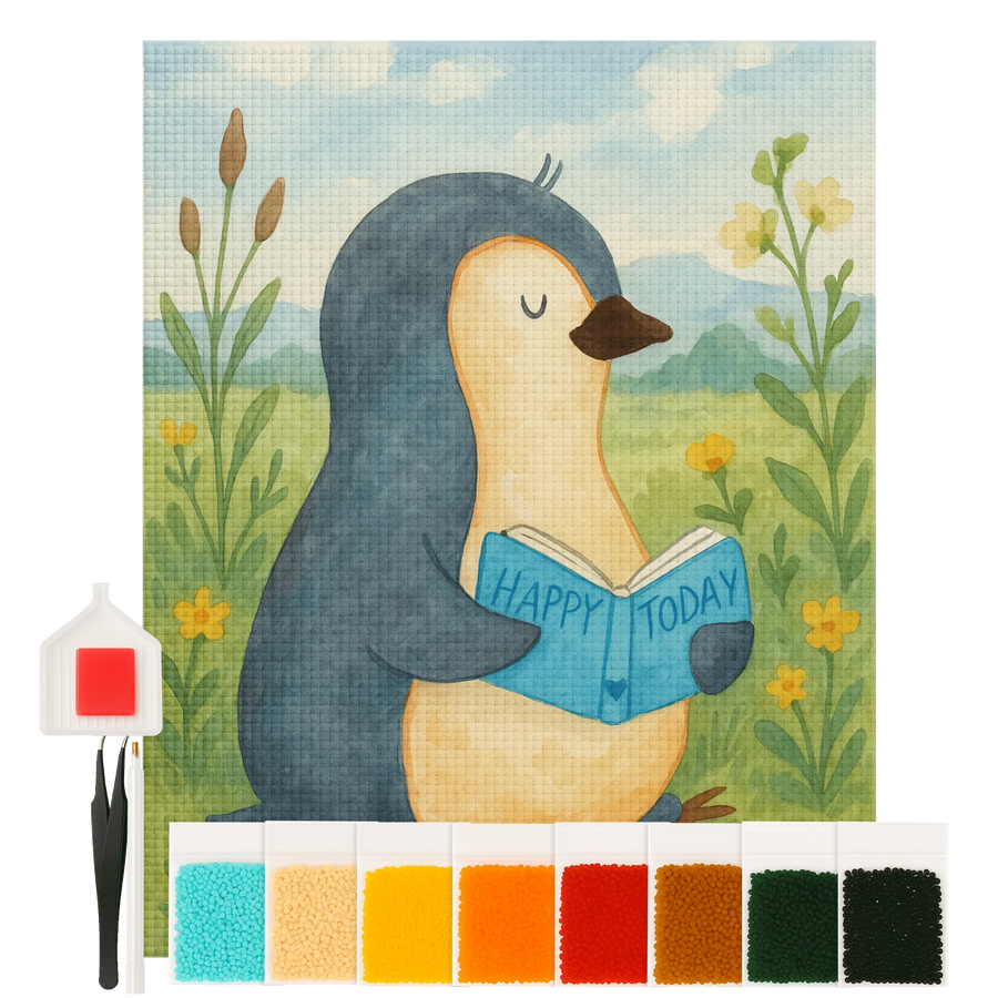 Entdecke ein zauberhaftes DIY-Erlebnis mit unserem Kristallbild „Pinguin Buch“ aus der Pinguin - Kollektion. Dieses liebevoll gezeichnete Motiv zeigt einen kleinen Bücherwurm-Pinguin, der ganz versunken in seine Geschichten ist. Perfekt für alle, die Lesen, Basteln und Entspannung miteinander verbinden möchten.
