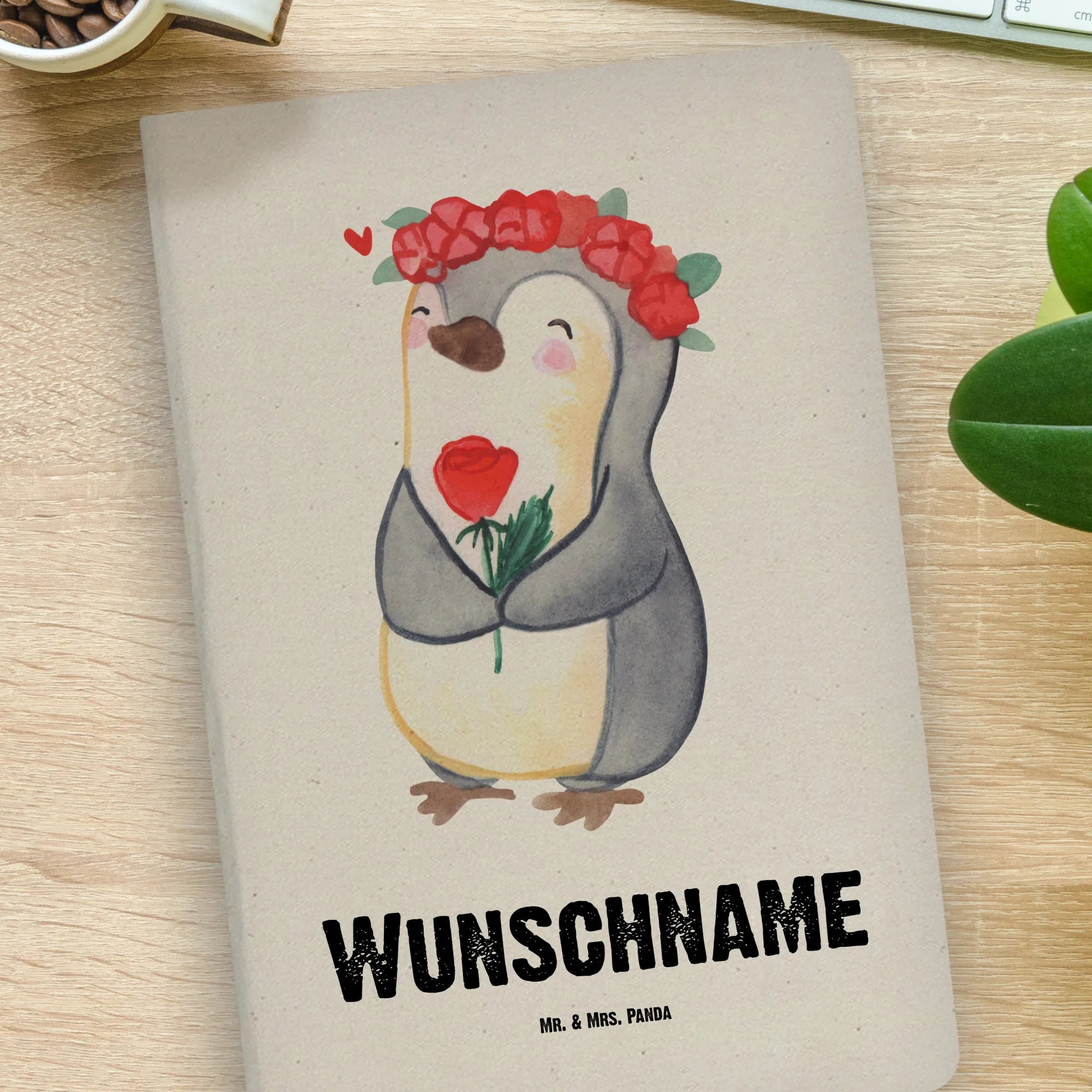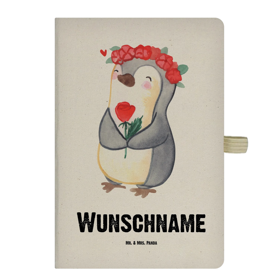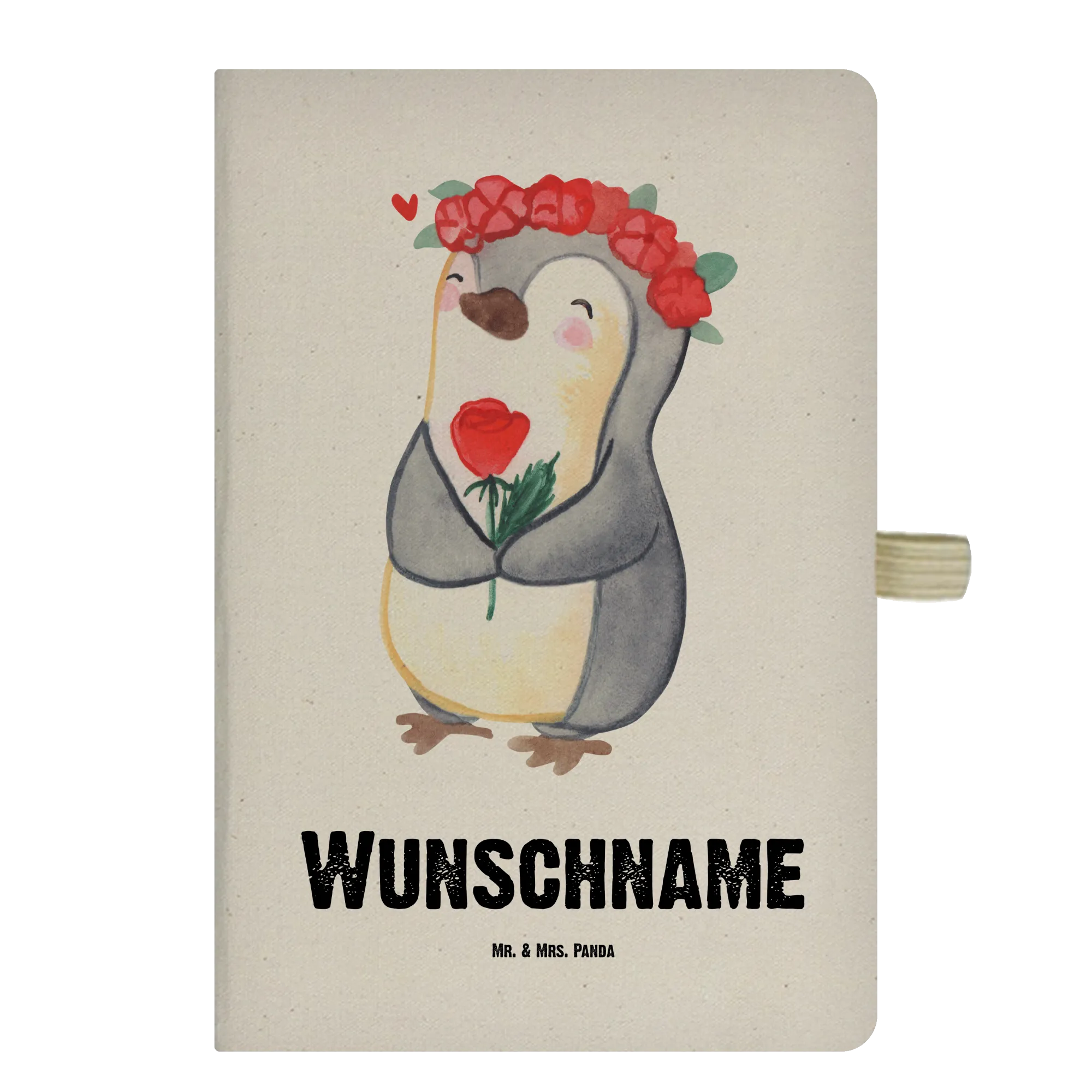 Es kombiniert edles Design mit einer persönlichen Note, denn Du kannst es mit dem Wunschnamen oder einem speziellen Text versehen lassen. Das Notizbuch zeigt eine liebevoll handgezeichnete Illustration von einem entzückenden Pinguin mit einem Blumenkranz und einer Rose. Die fröhlichen Aquarellfarben und die kleine Botschaft "Jungfrau-Power: Analytischer Geist, großes Herz."bringen nicht nur Freude ins Herz, sondern spiegeln auch die Eigenschaften der Jungfrau wider: Organisationstalent, Empathie und Zielstrebigkeit.