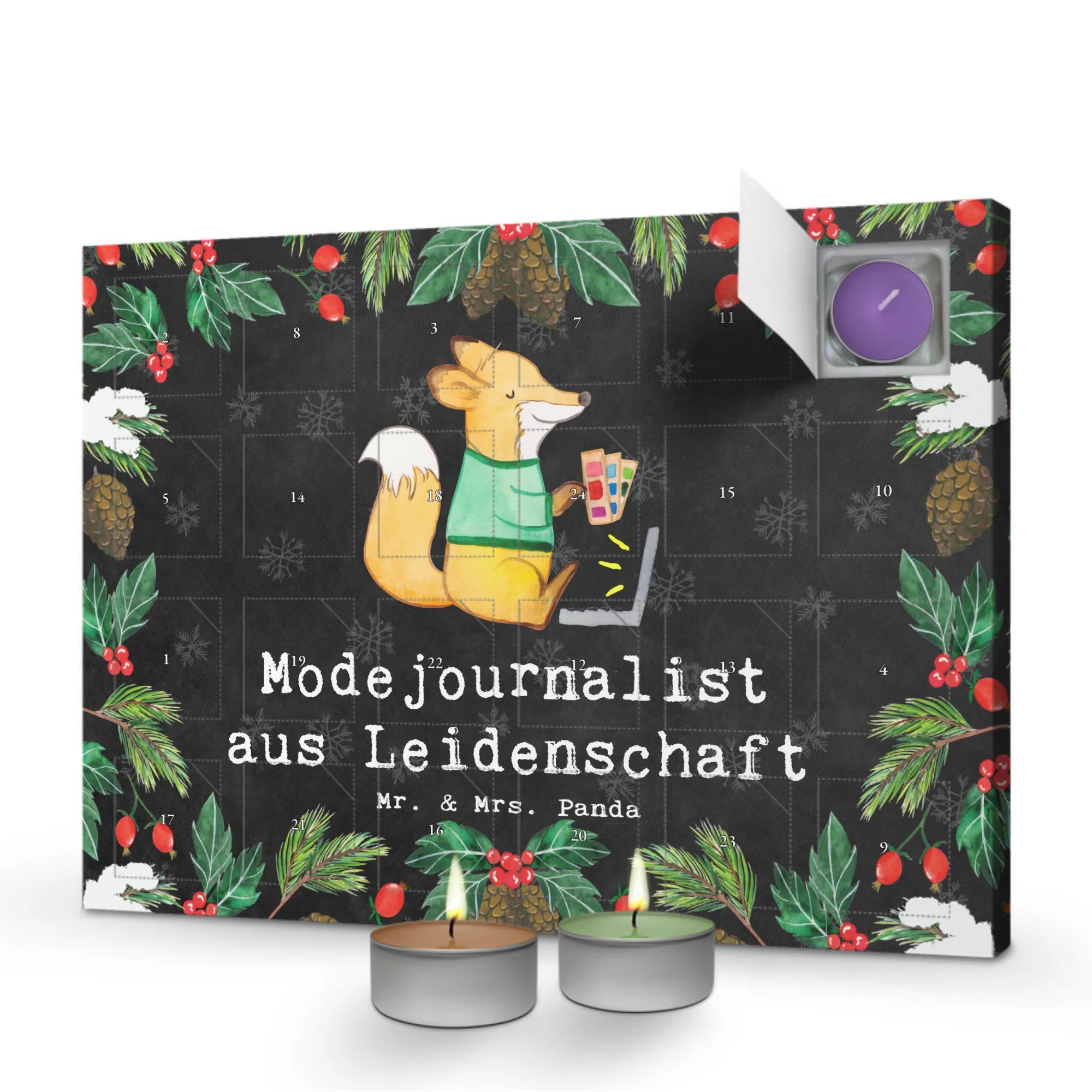 Der Duftkerzen Adventskalender "Modejournalist aus Leidenschaft" von Mr. & Mrs. Panda ist das perfekte Geschenk für alle, die in der Welt des Journalismus, insbesondere in der Modebranche, tätig sind oder eine Vorliebe dafür haben. Dieser wunderschöne Adventskalender bringt nicht nur festliche Stimmung, sondern auch eine Prise Kreativität und Inspiration direkt in den Alltag.